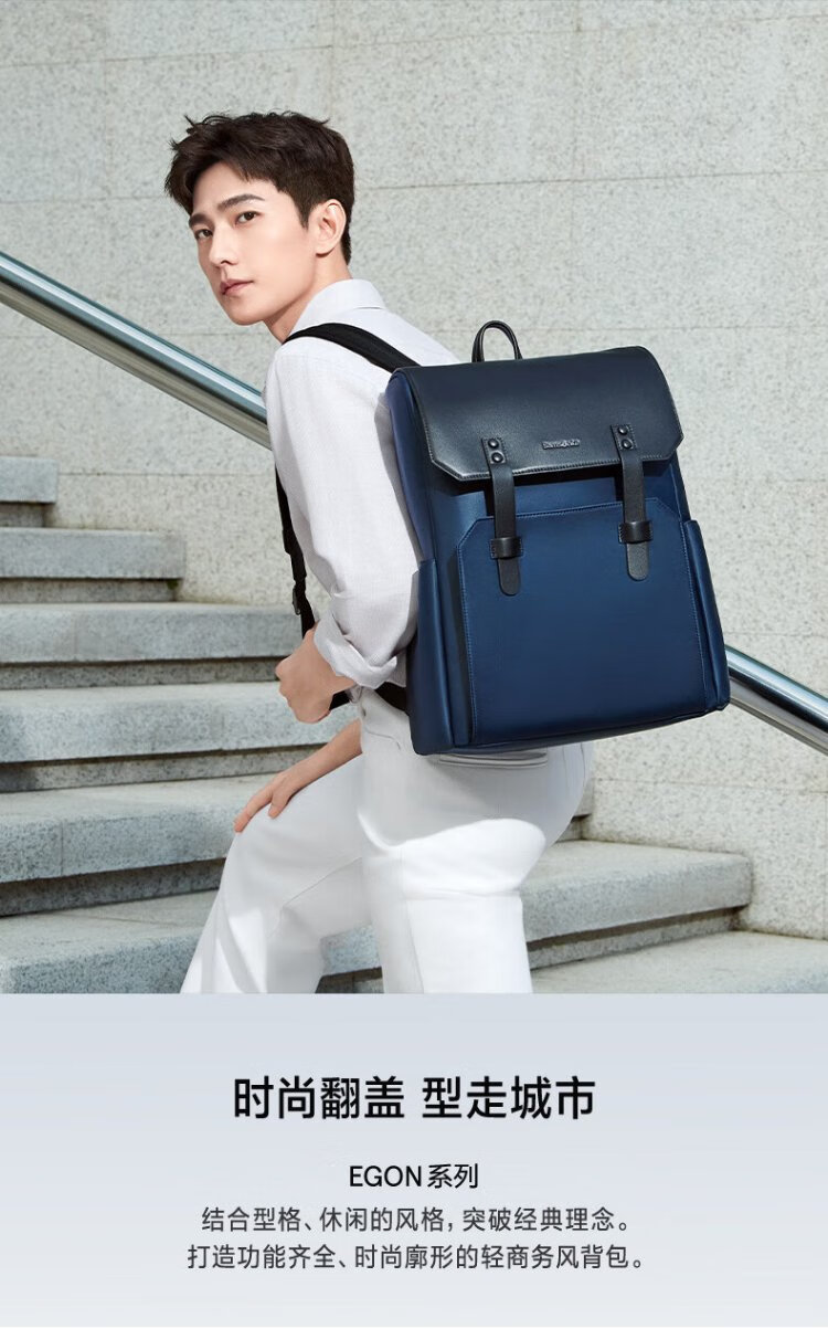 新秀丽(Samsonite)双肩包电脑包15.6英寸男女牛皮革背包大容量出差旅行包NV0*003