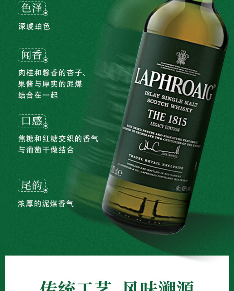 拉弗格(Laphroaig)1815传承纪念版 苏格兰艾雷岛威士忌 700ml 48度 进口洋酒
