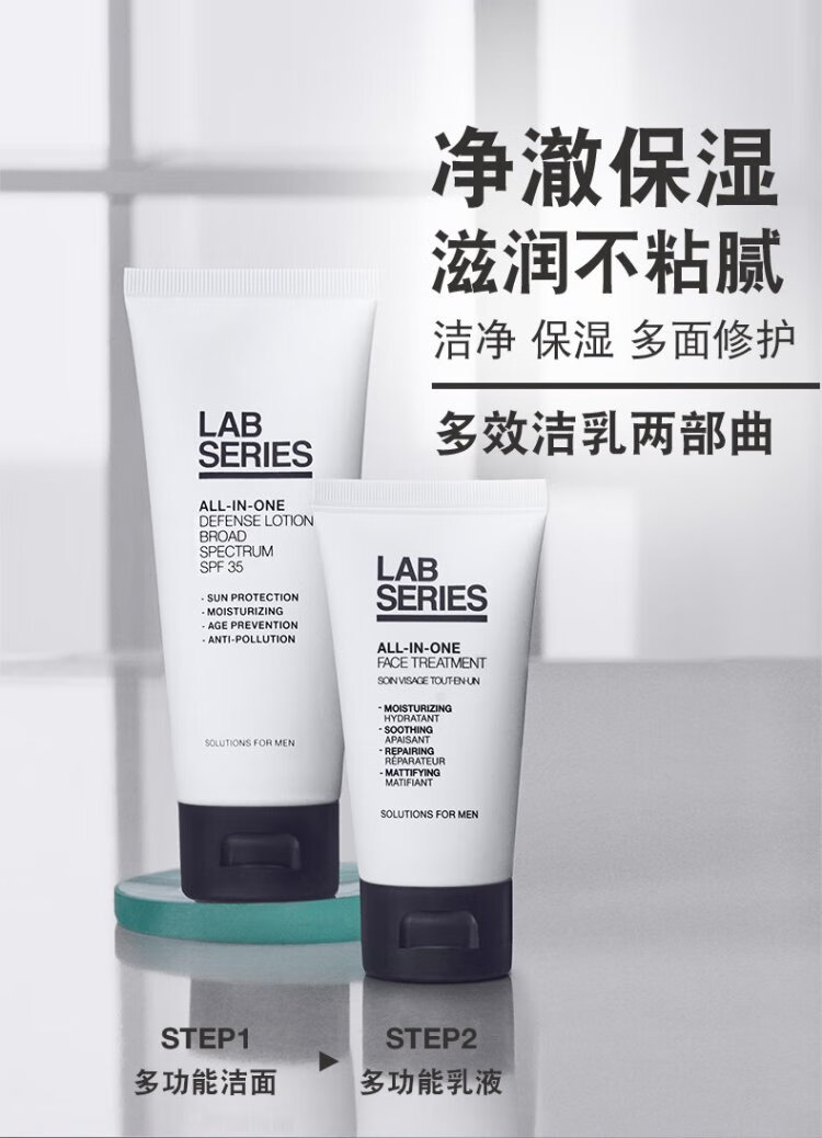 朗仕多效洁乳两部曲(洗面奶+乳)保湿男士套装护肤礼盒生日礼物送男友