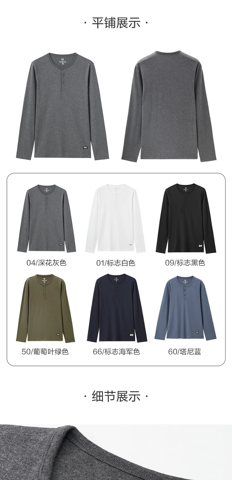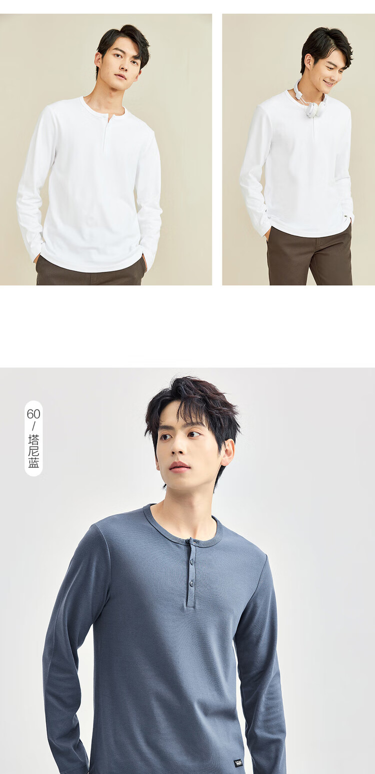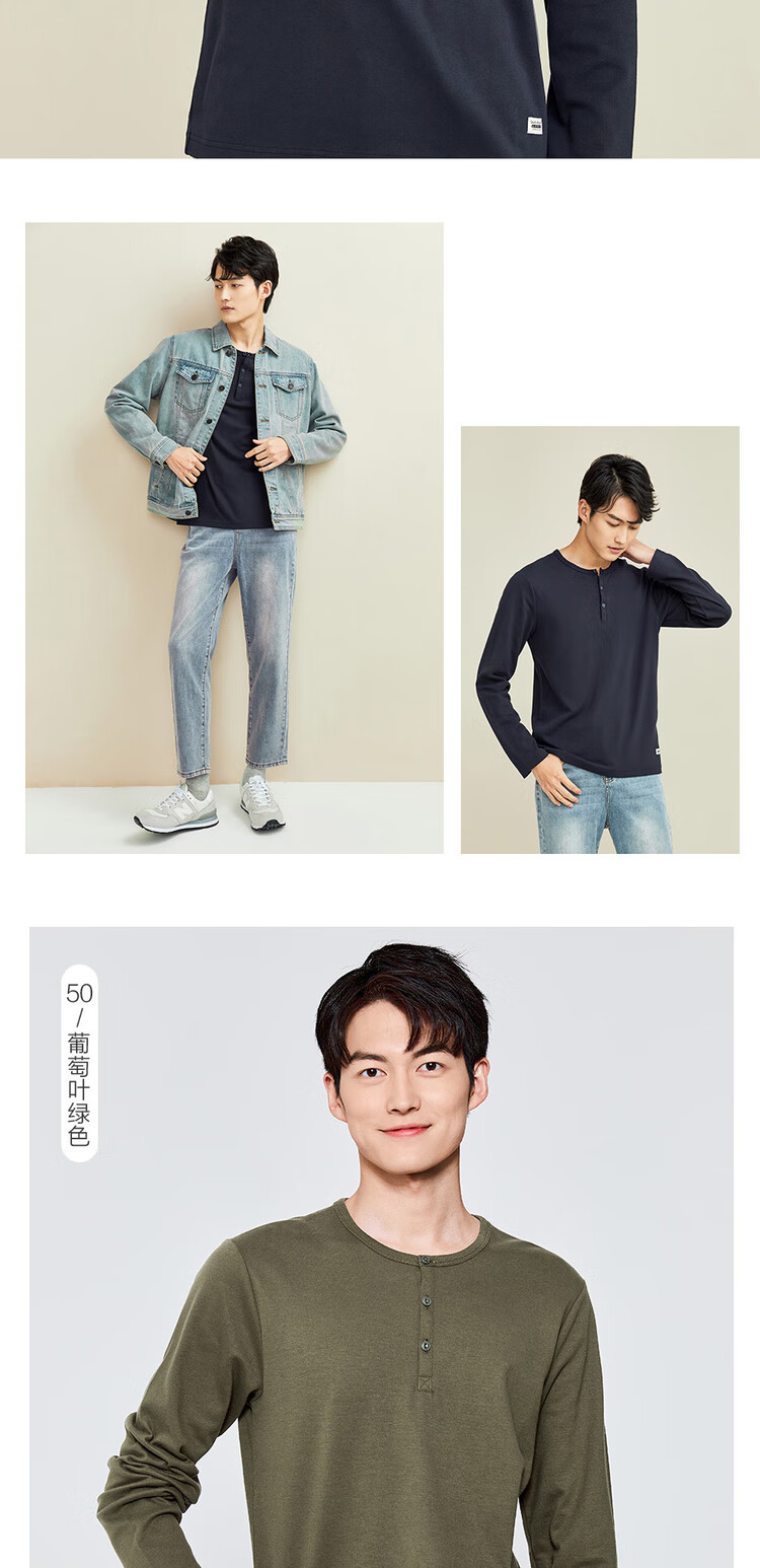 Camiseta Giordano, camiseta henley informal de color sólido para hombre, camiseta de manga larga cepillada de algodón puro grueso para hombre 01022803