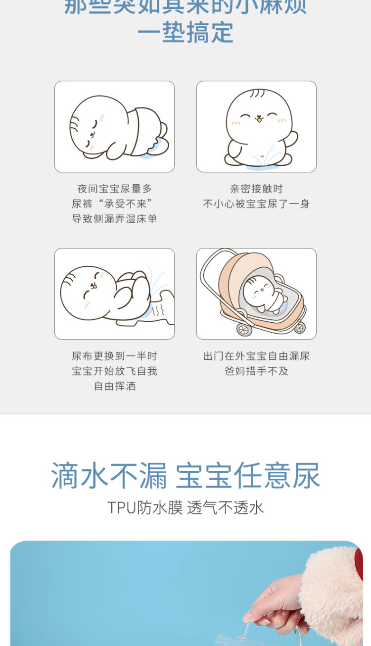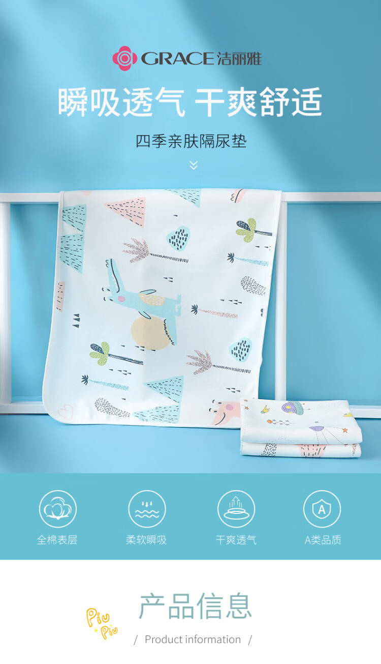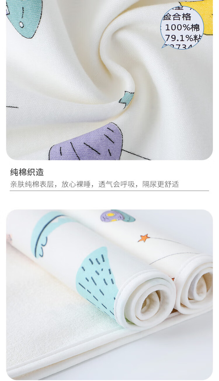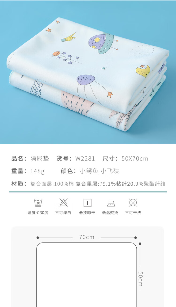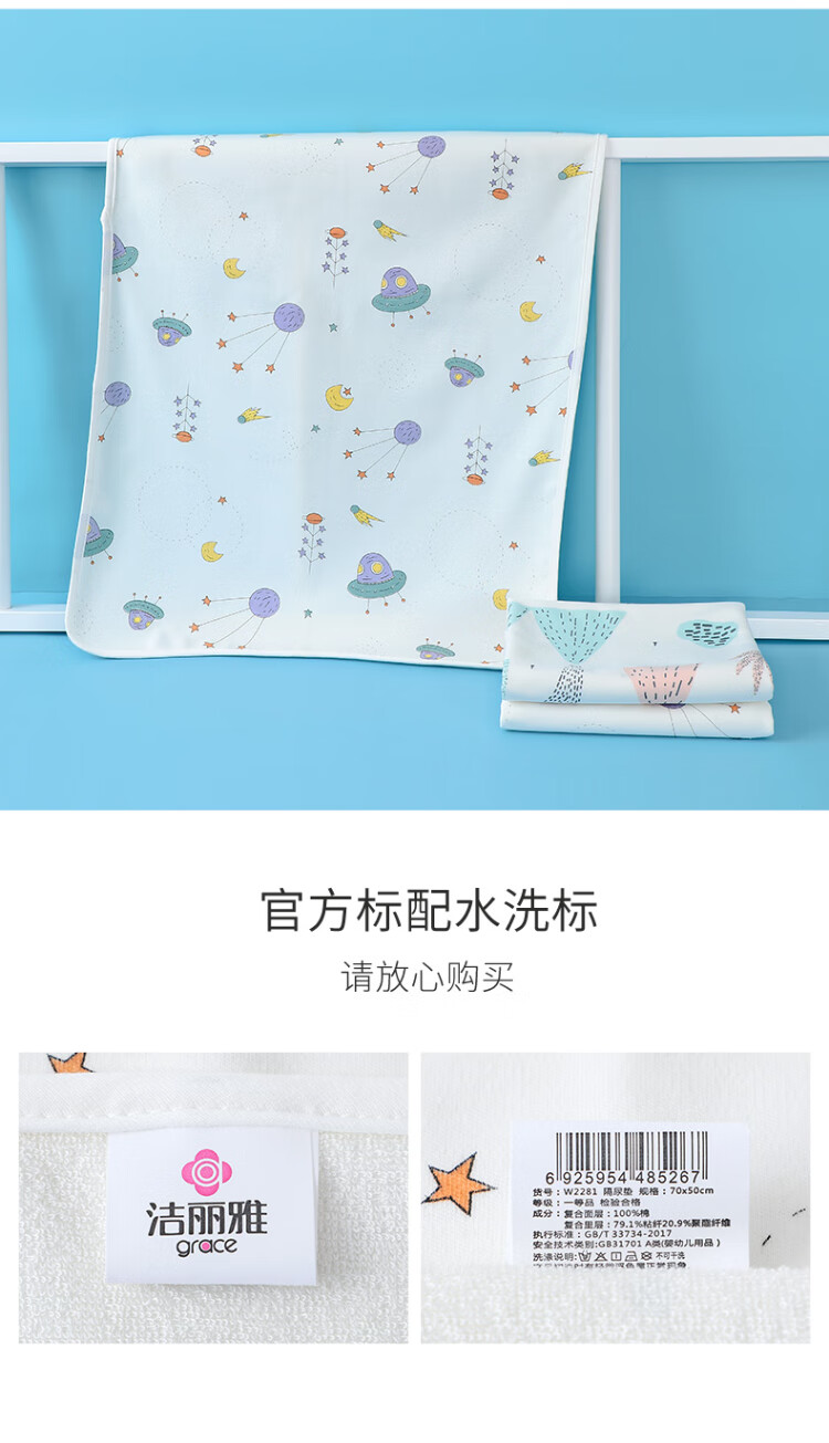 洁丽雅(Grace)婴儿纯棉隔尿垫可洗防水宝宝用品姨妈防漏垫卡通飞碟大号70*50cm