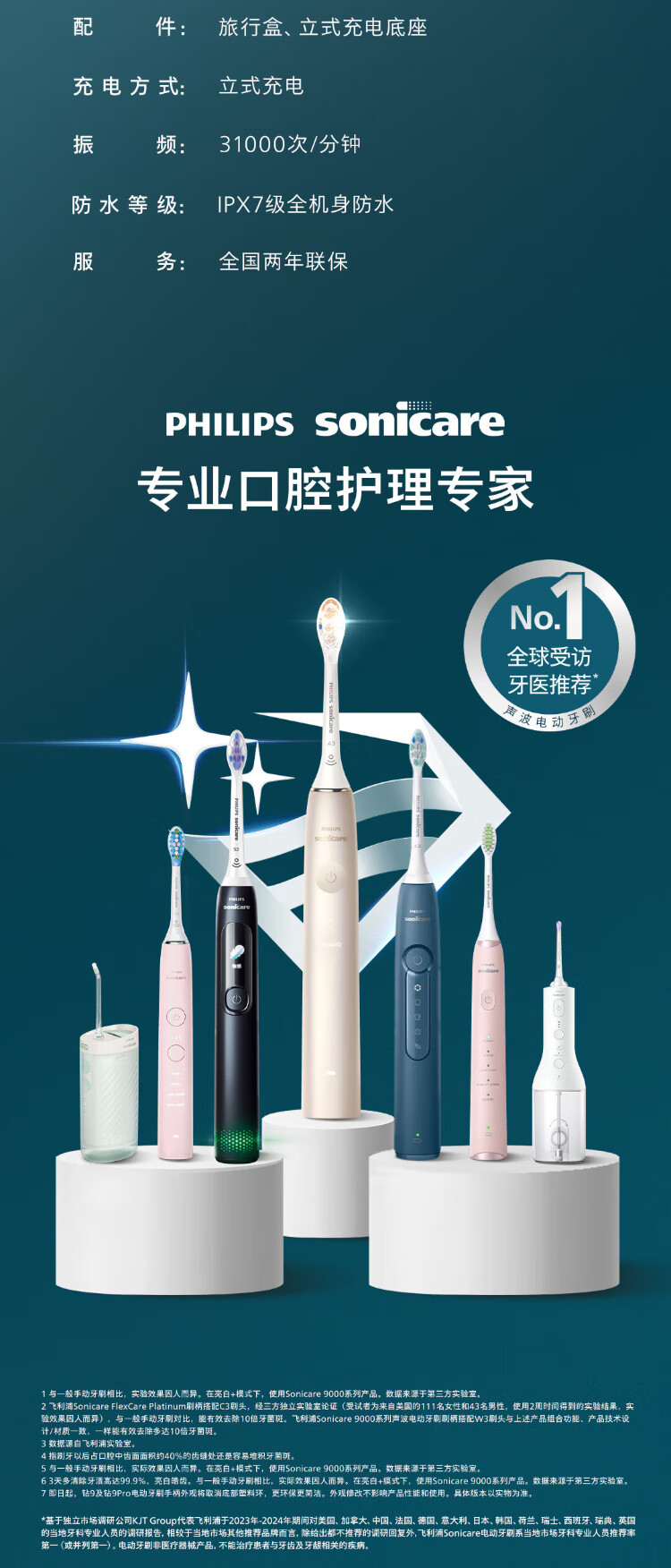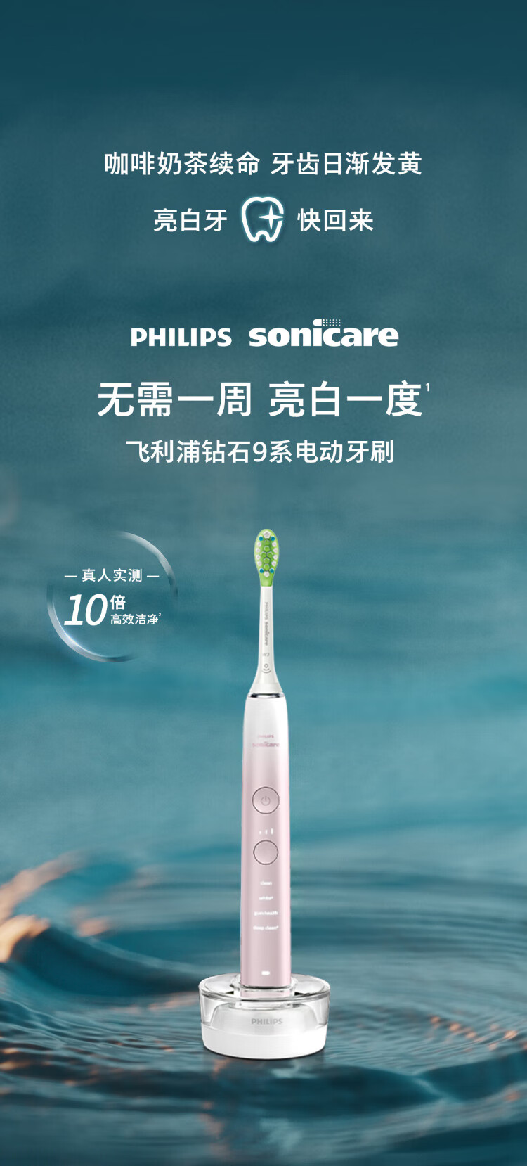 飞利浦(PHILIPS)【肖战推荐】电动牙刷钻石9系 生日礼物 圣诞礼物 情侣款送男生女友 去除99.9%牙渍HX9911/68粉色