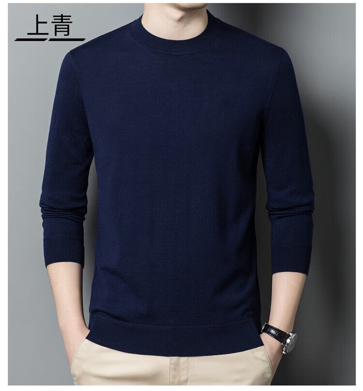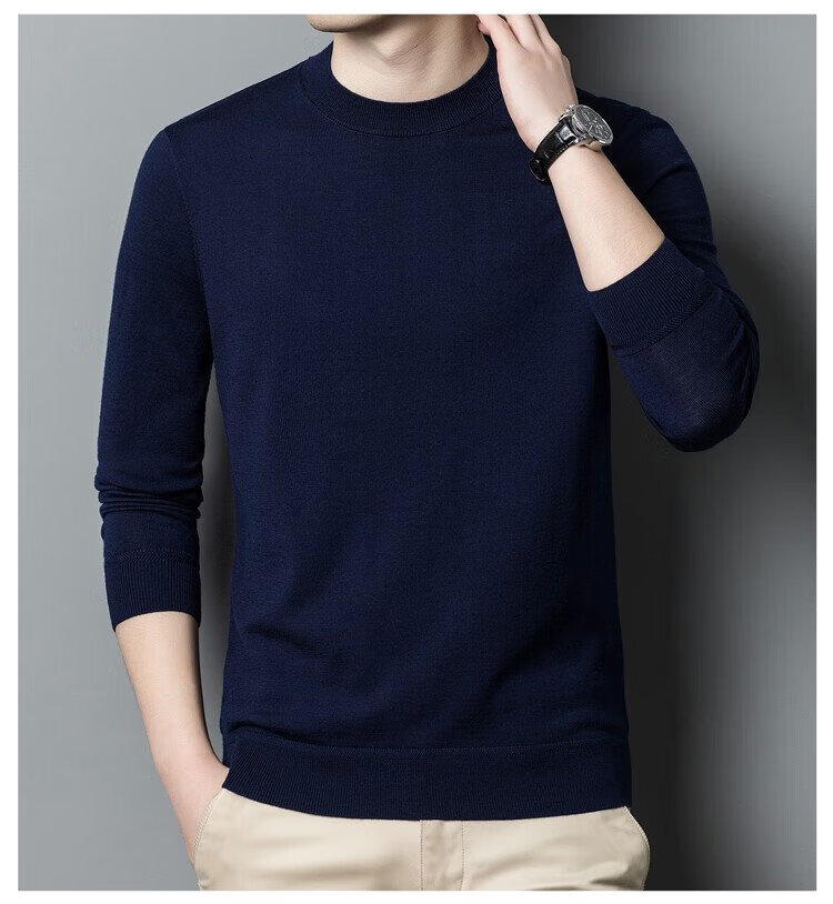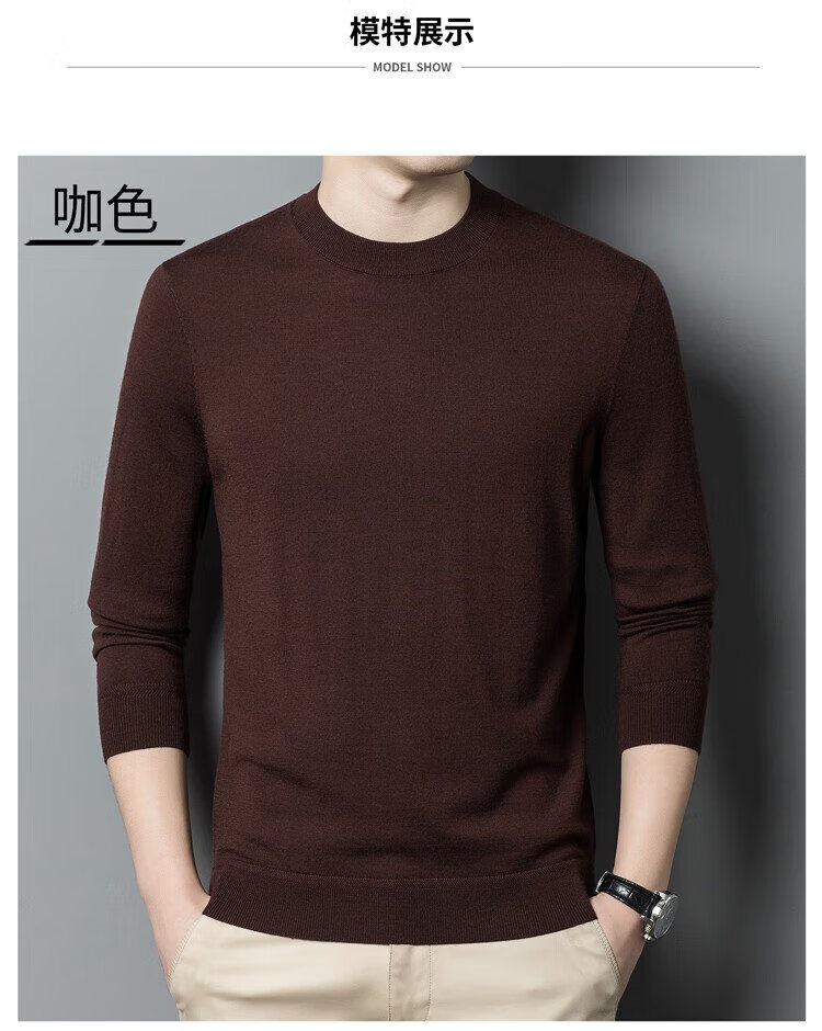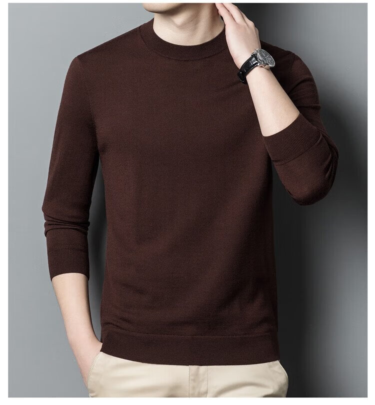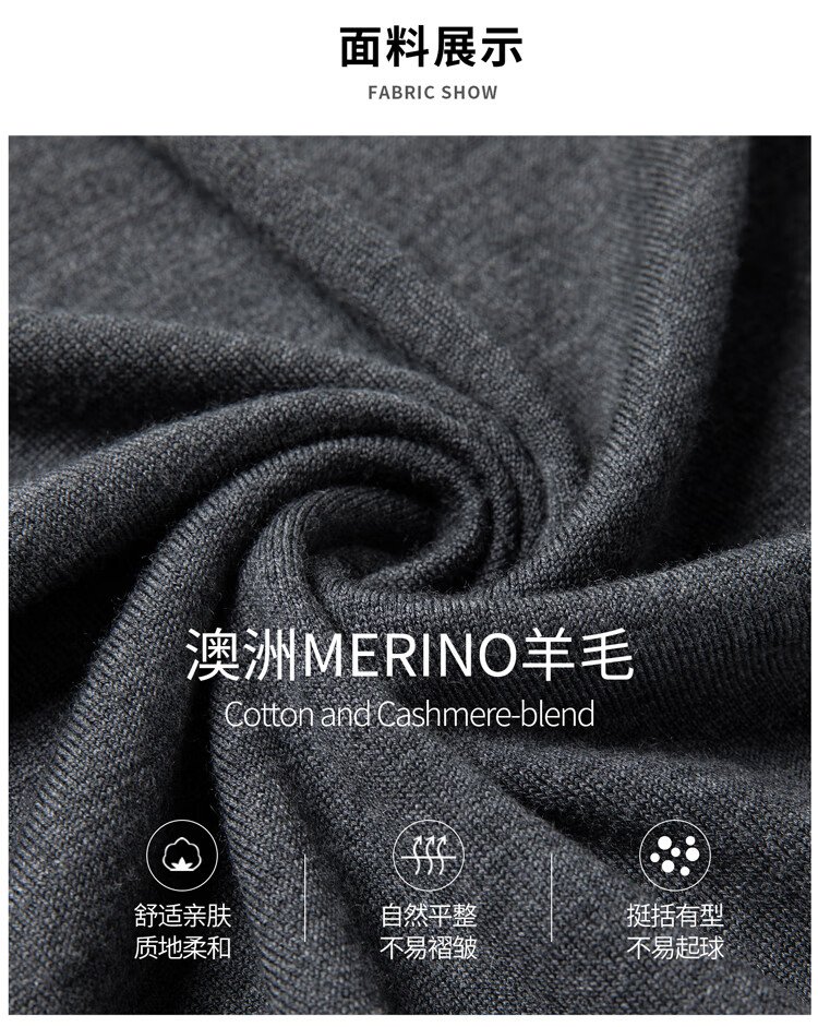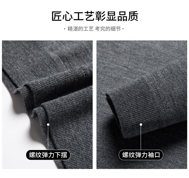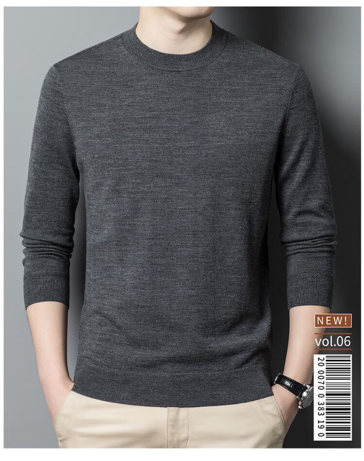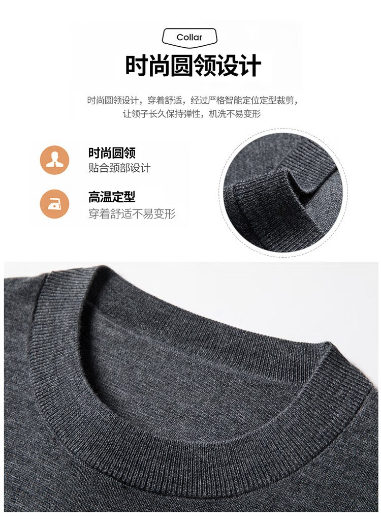恒源祥100%精纺羊毛衫男可机洗 秋冬套头薄款毛衣男士圆领针织衫商务休闲纯色全羊毛衣服 20007001 黑灰 175