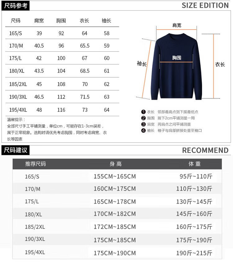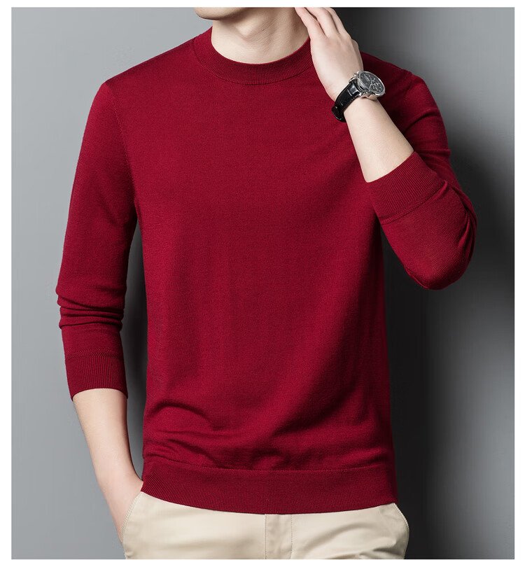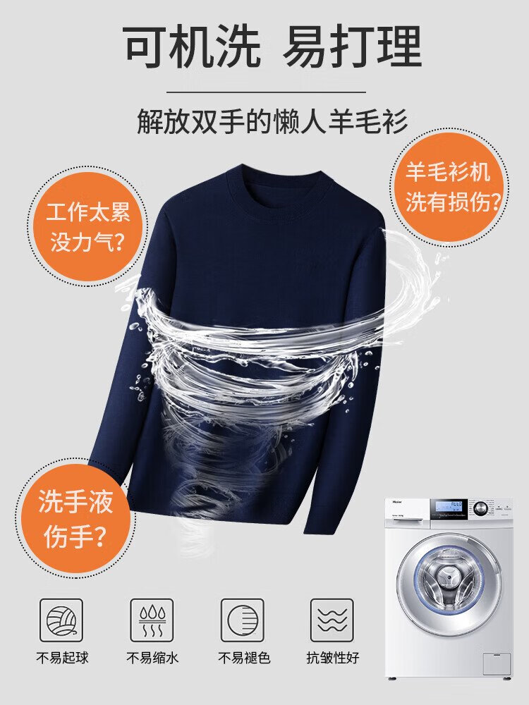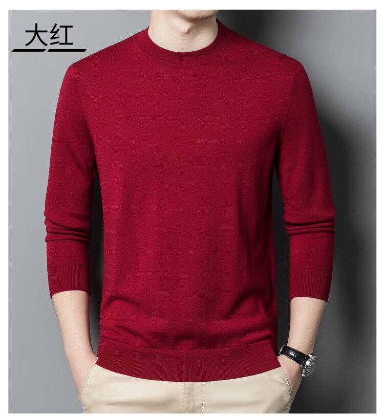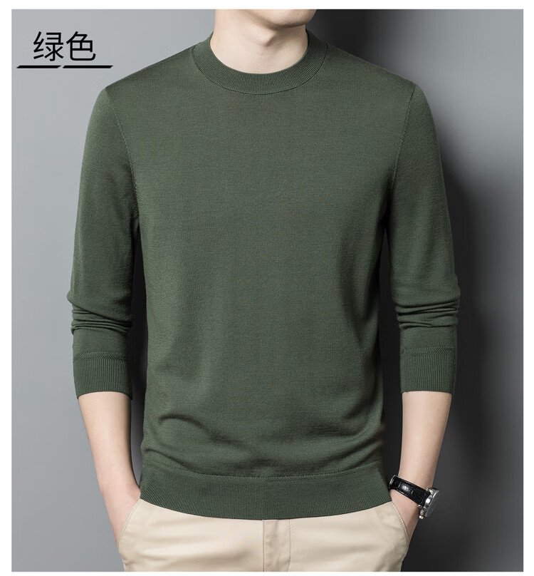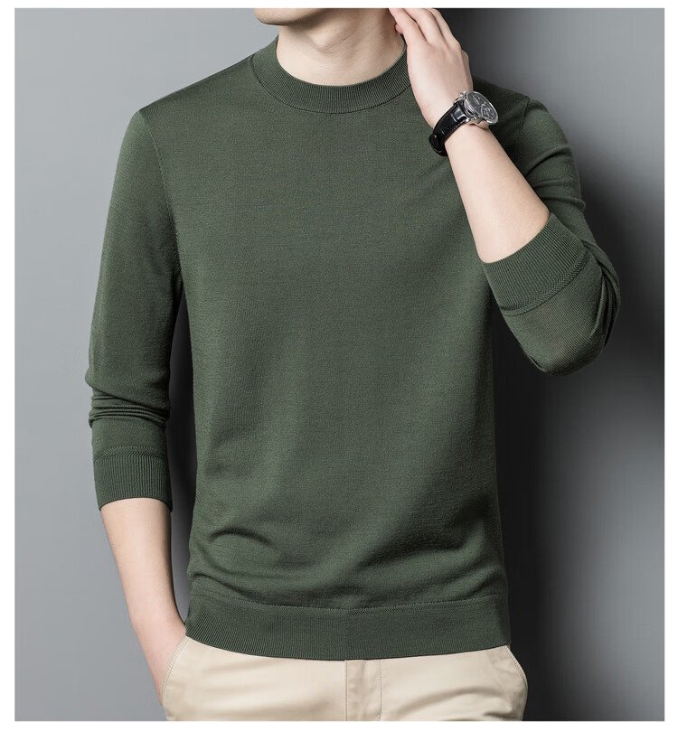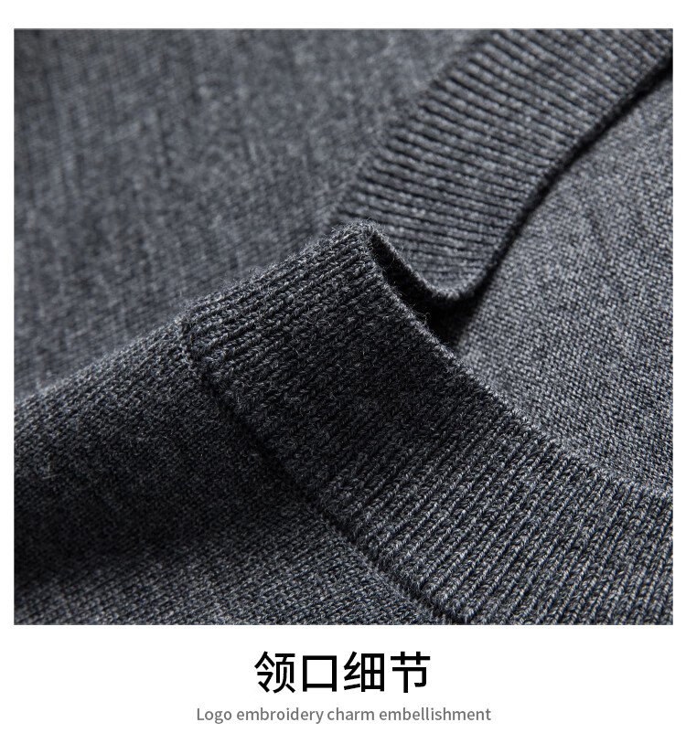 恒源祥100%精纺羊毛衫男可机洗 秋冬套头薄款毛衣男士圆领针织衫商务休闲纯色全羊毛衣服 20007001 黑灰 175