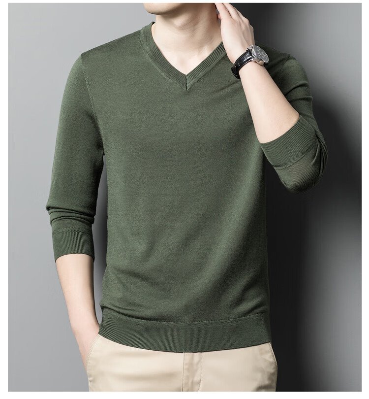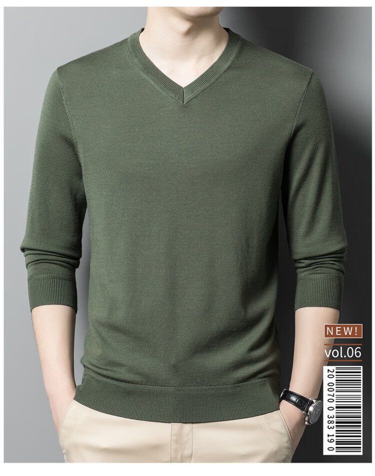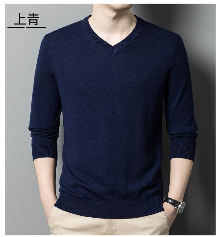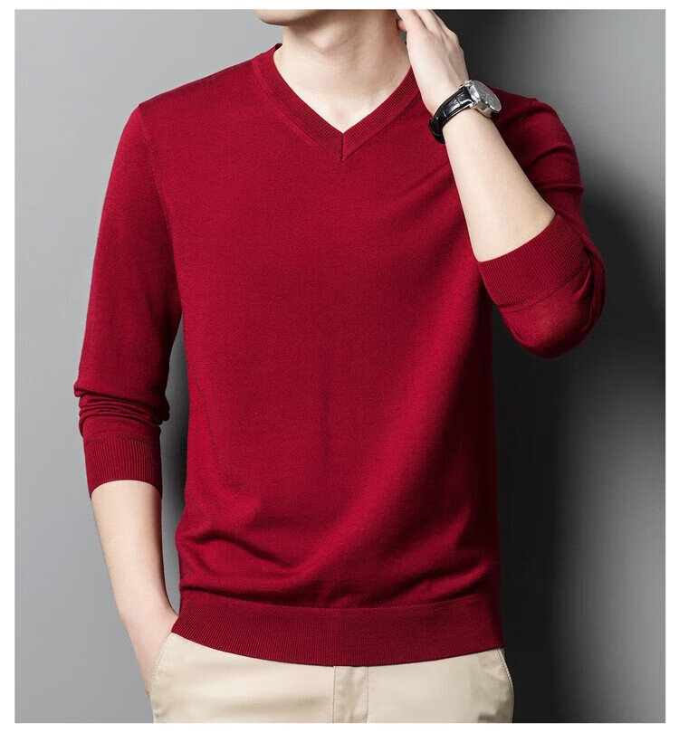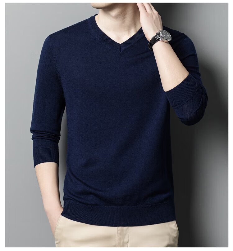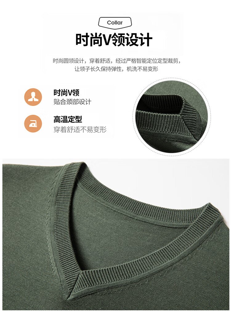 恒源祥100%精纺羊毛衫男可机洗 秋冬套头薄款毛衣男士V领针织衫商务休闲纯色全羊毛衣服 20007003 黑色 175