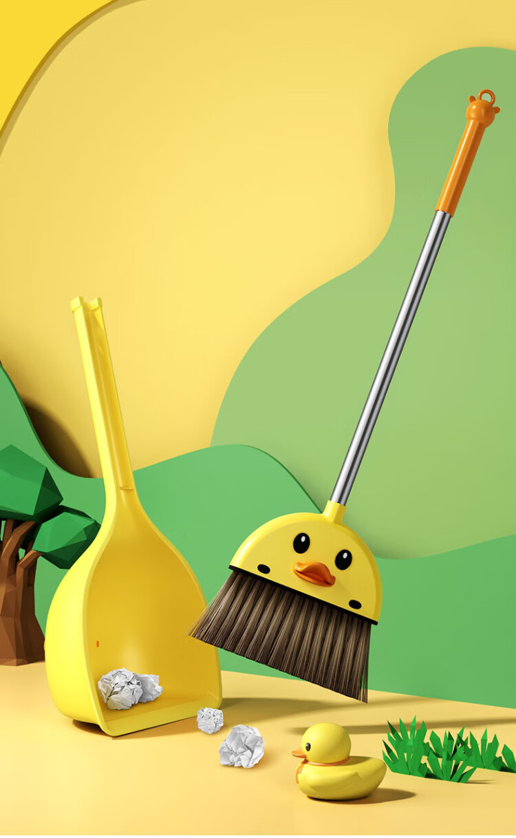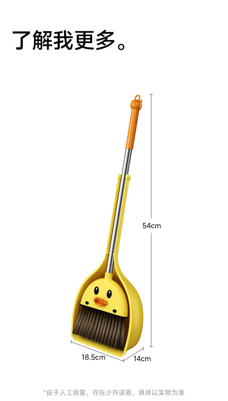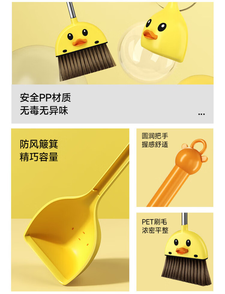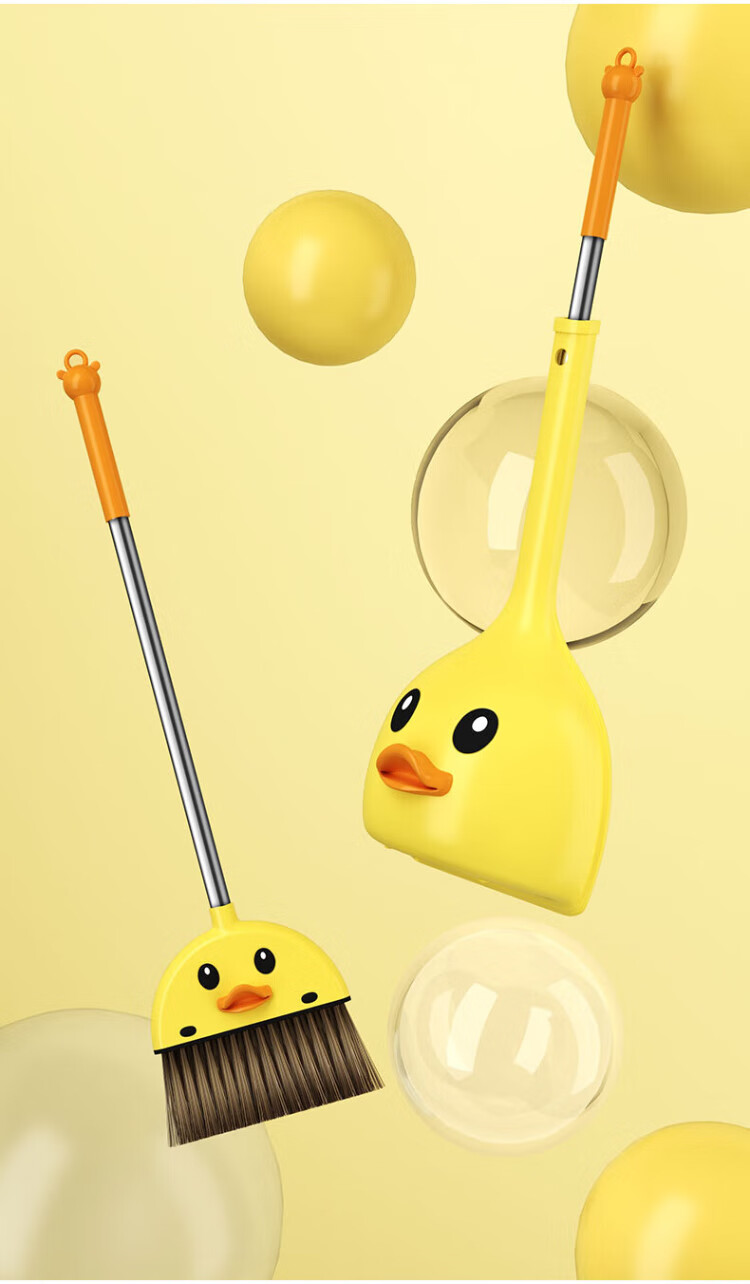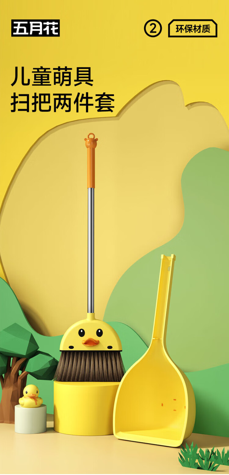 五月花扫把簸箕两件套小黄鸭儿童迷你宝宝家务清洁玩具过家家扫地扫帚