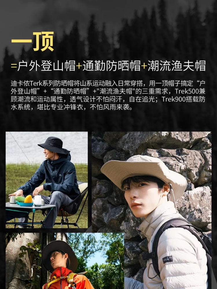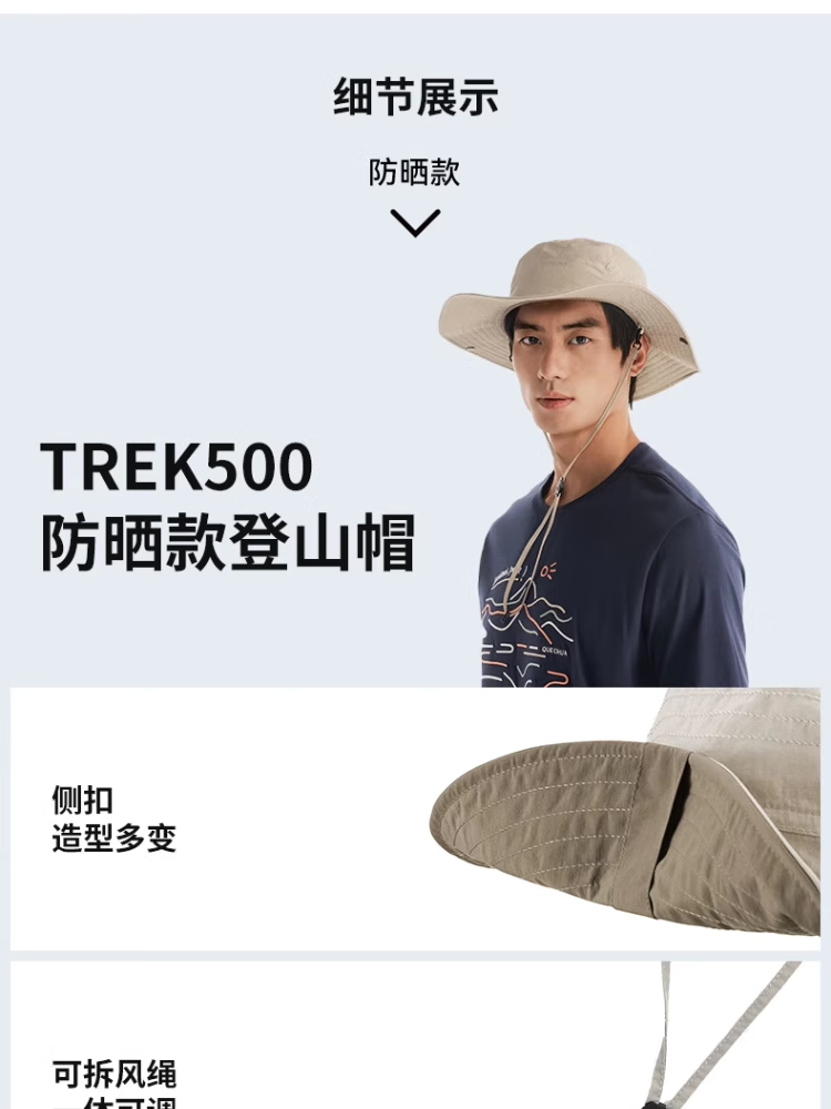 迪卡侬TREK500渔夫帽户外旅行登山徒步防晒防紫外线遮阳透气-2022181