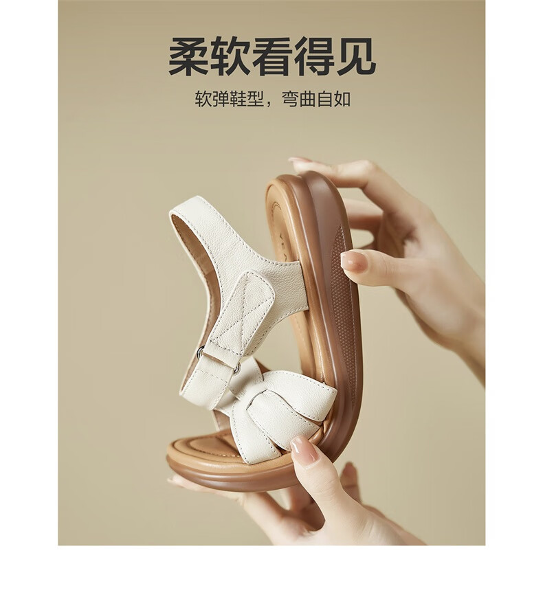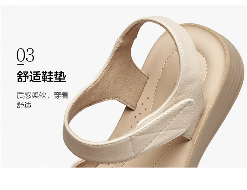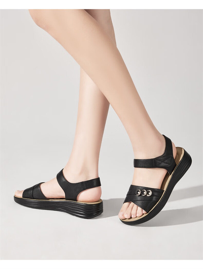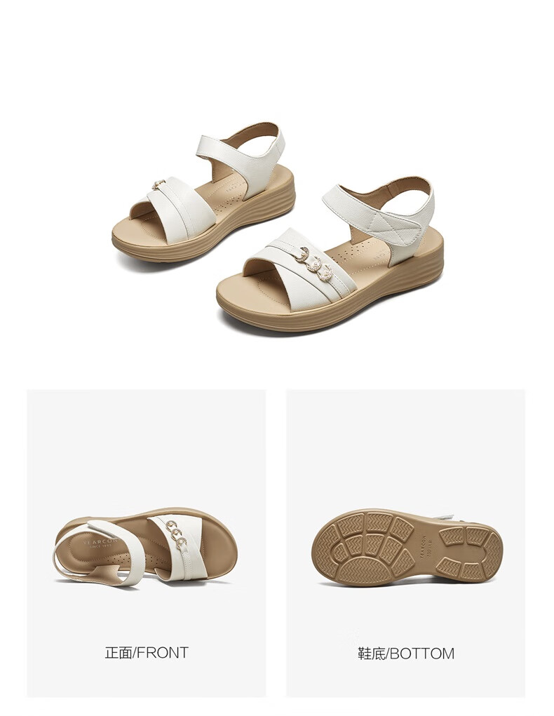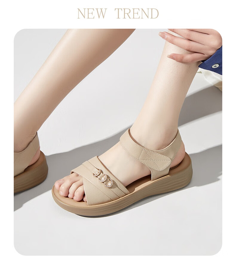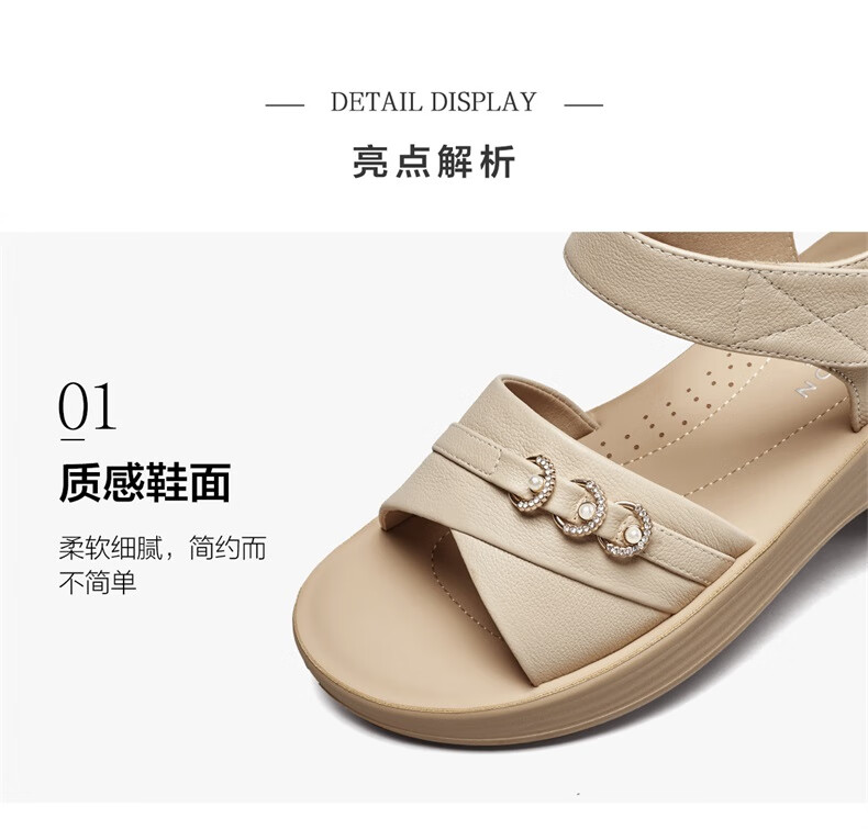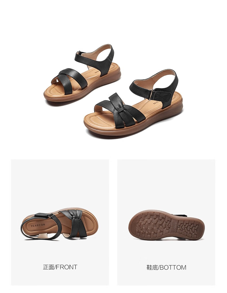 Yierkan Leather Shoes Women's Soft Sole Wedge Flat Shoes Middle-aged Mom Velcro Leather Sandals 11001W Apricot 38