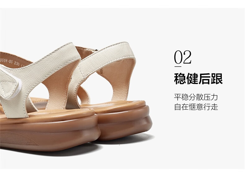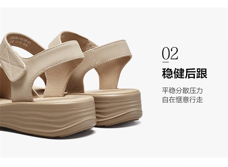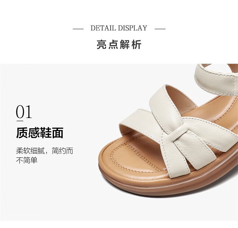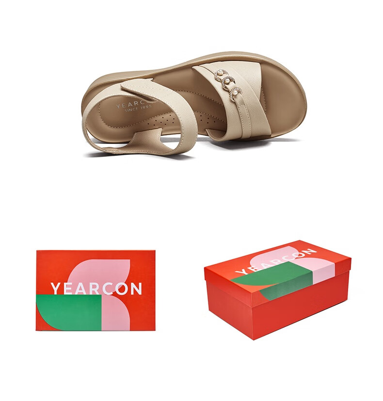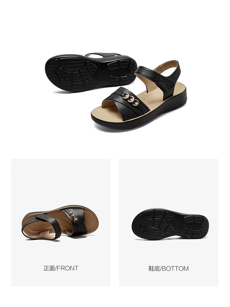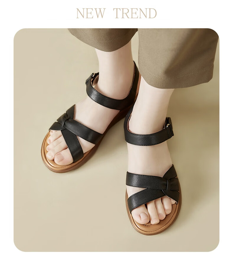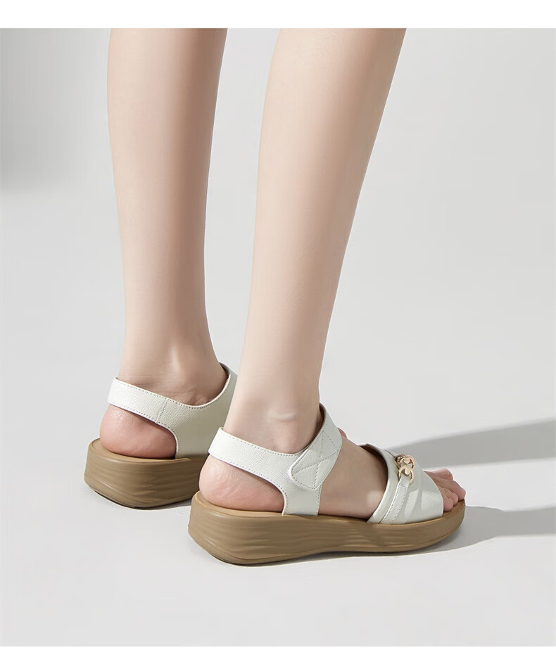 Yierkan Leather Shoes Women's Soft Sole Wedge Flat Shoes Middle-aged Mom Velcro Leather Sandals 11001W Apricot 38