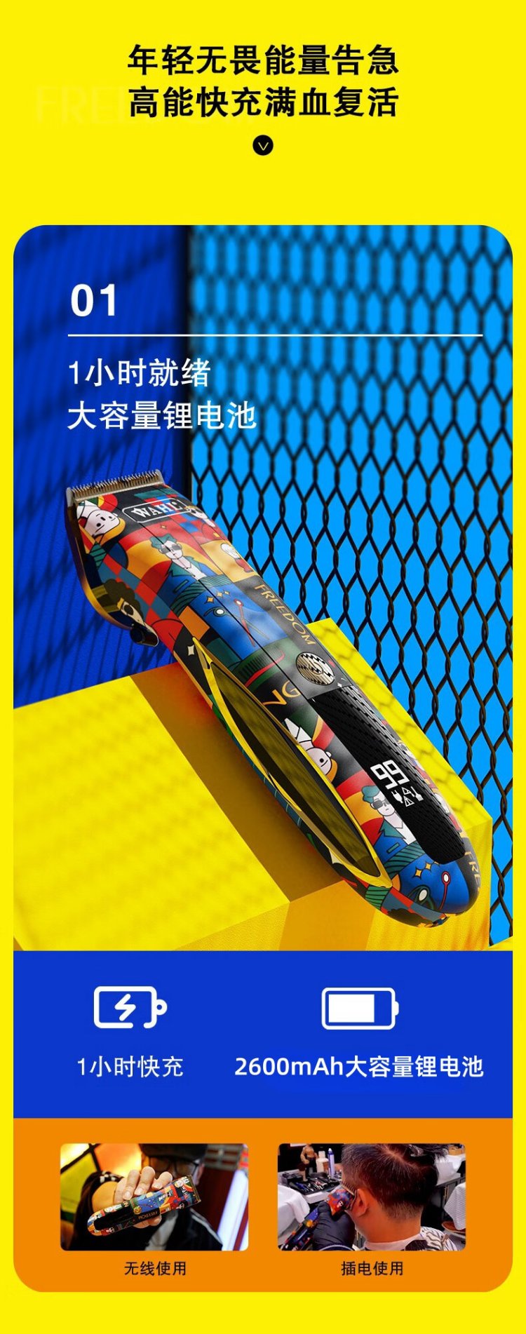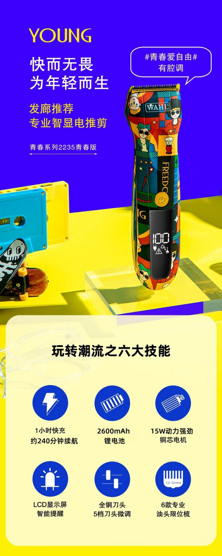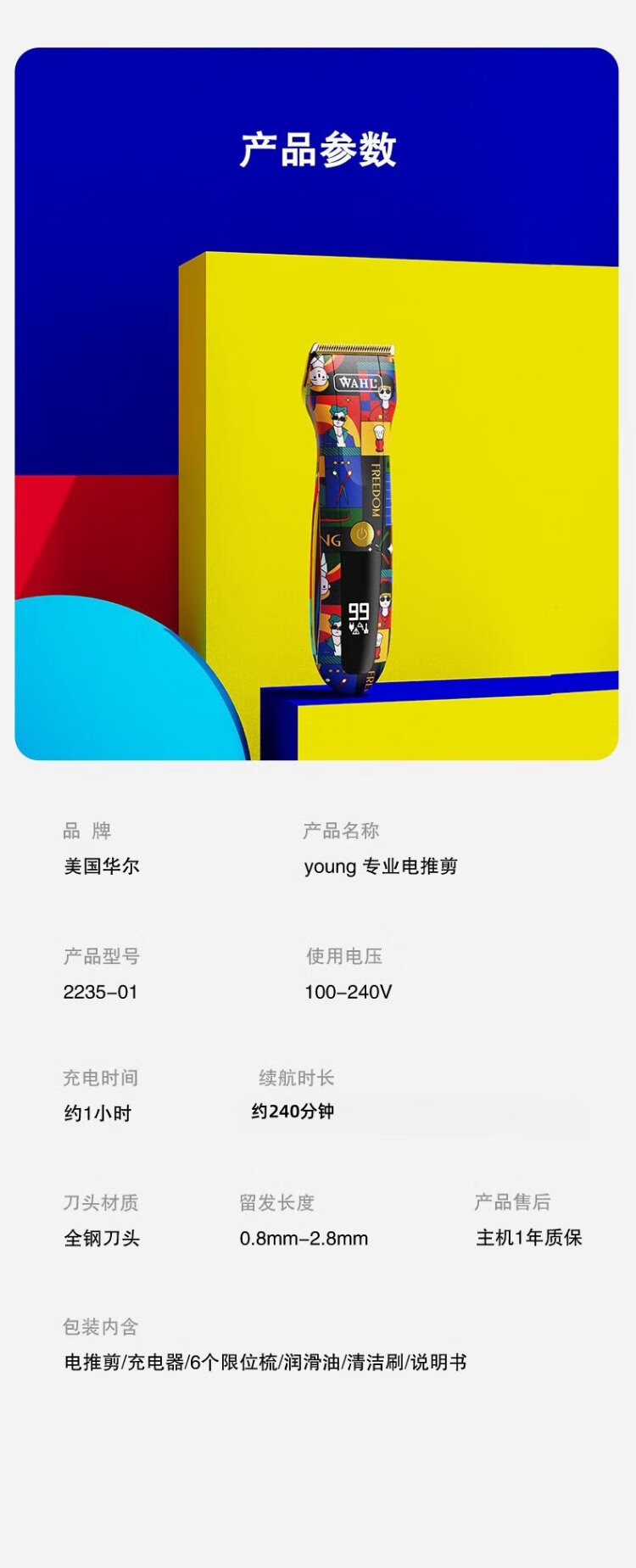 WAHL Haarschneidemaschine, elektrische Haarschneidemaschine für den Friseursalon zu Hause, allgemeine Rasur, Illustration, Mode-Styling, wiederaufladbare Haarschneidemaschine 2235-01