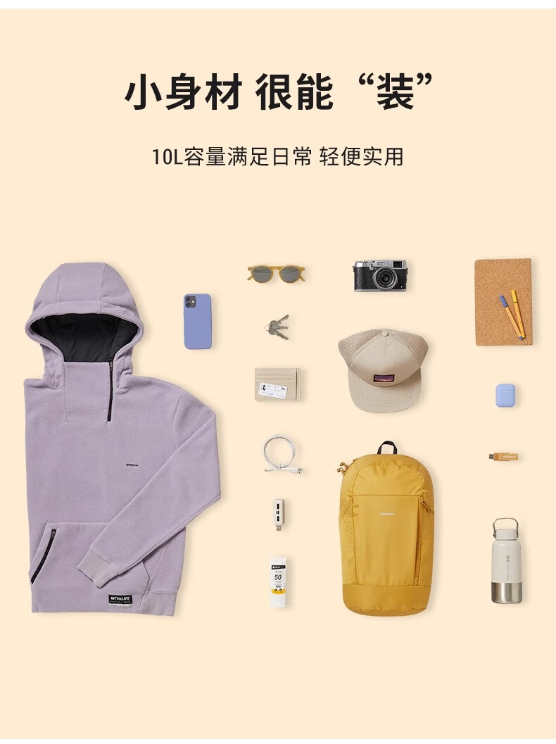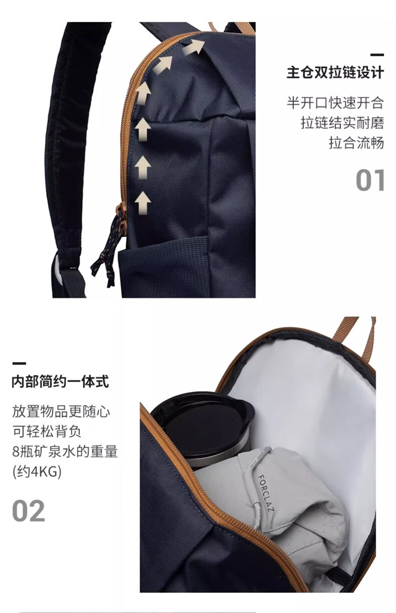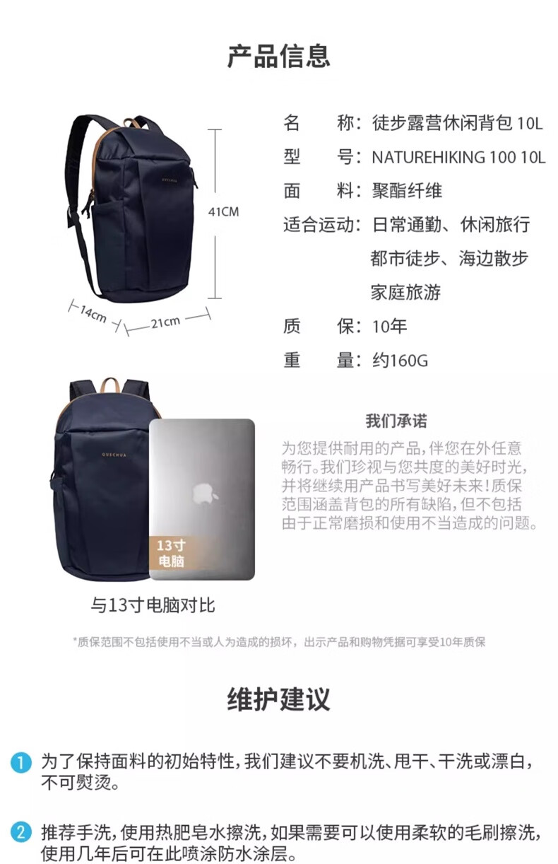 迪卡侬双肩背包NH120户外出游登山包徒步背包旅行儿童小书包10L-4529058