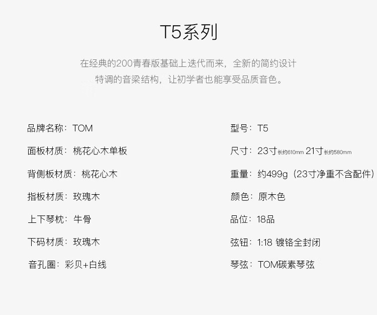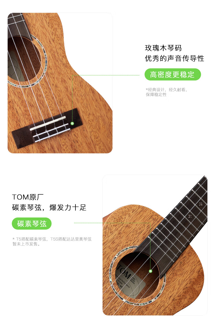 Tom Ukulele adult children beginner 26-inch mahogany veneer T5SE electric box classic version small guitar