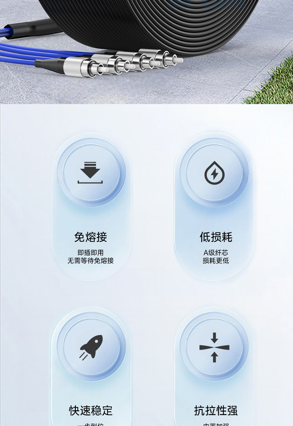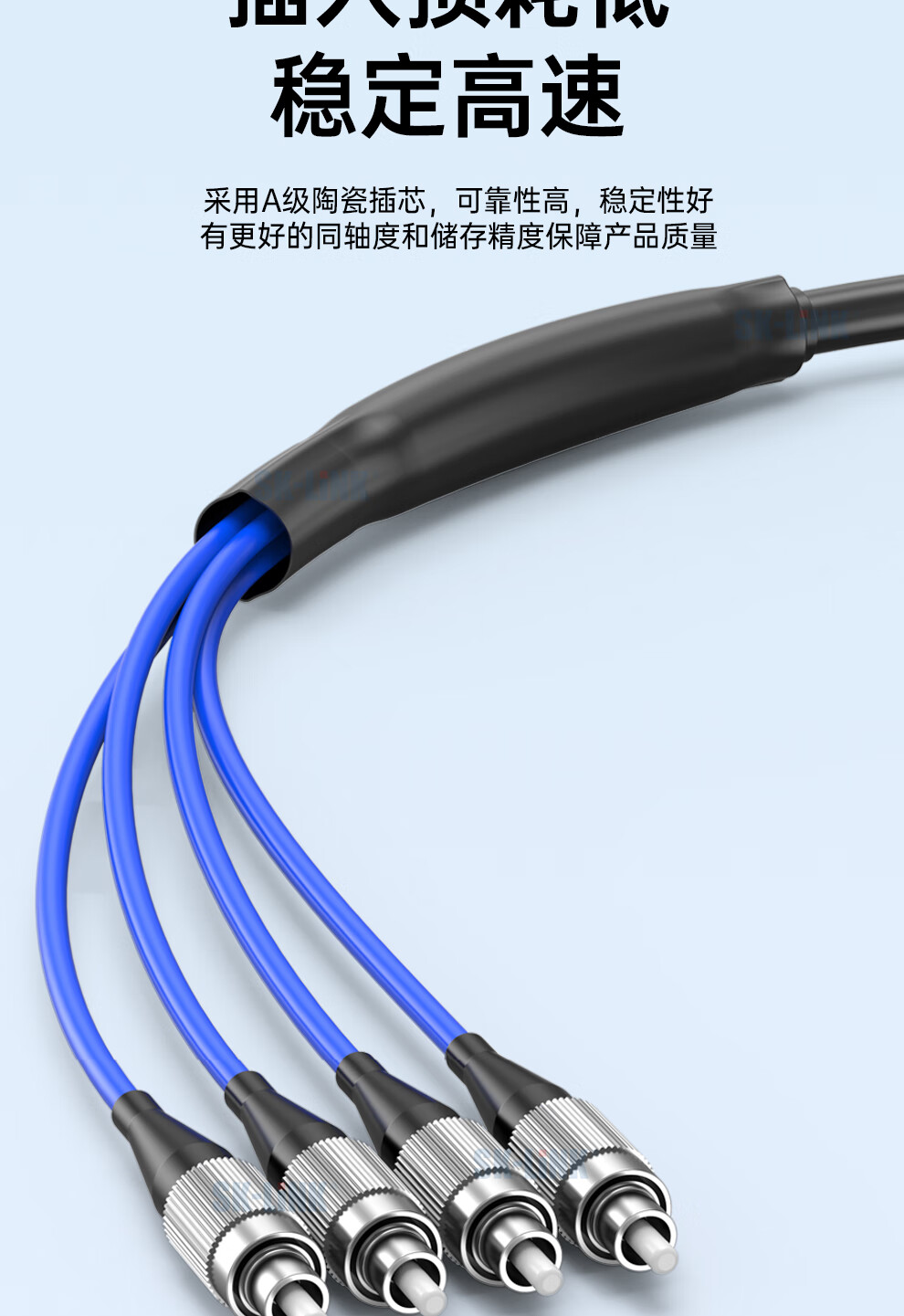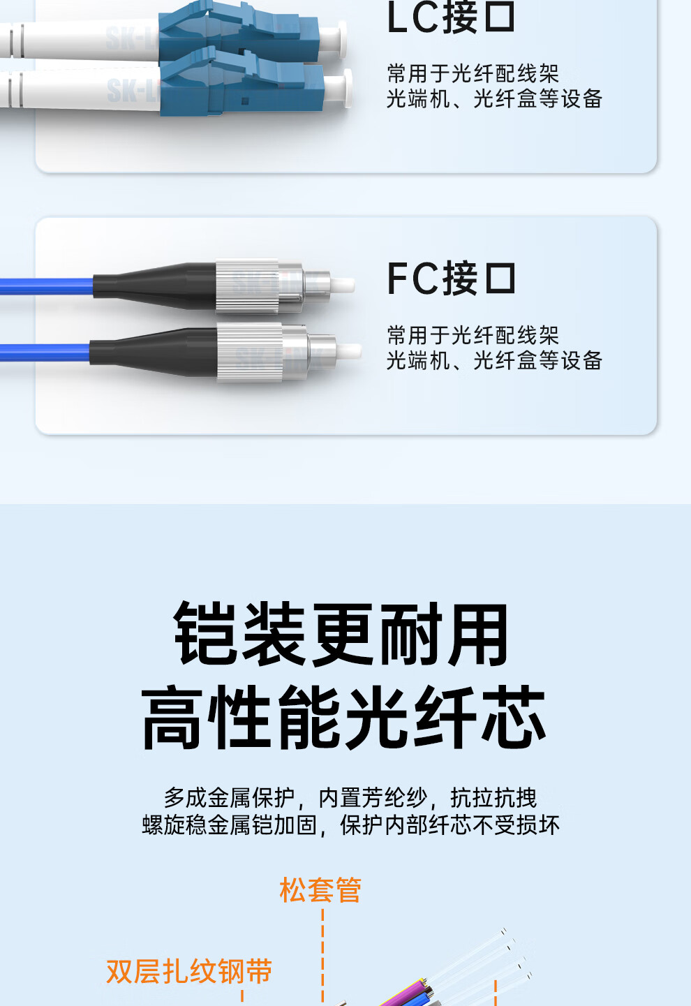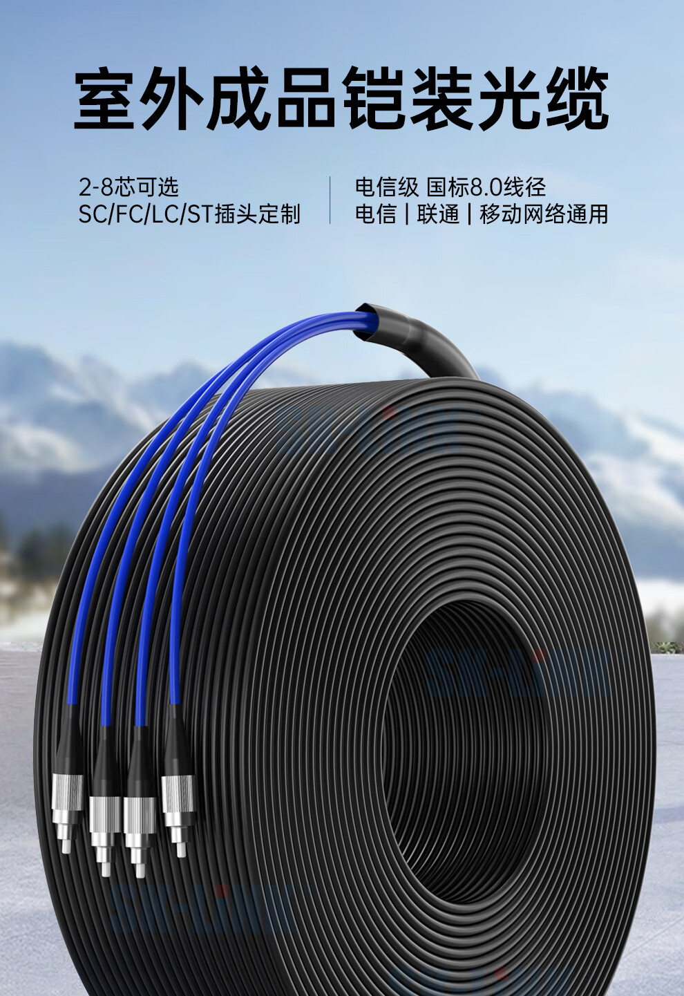 SK-LINK 室外单模铠装成品光缆4芯光纤线四芯光纤跳线免熔接户外架空50米FC接头GYXTW-4B-50M(FC)