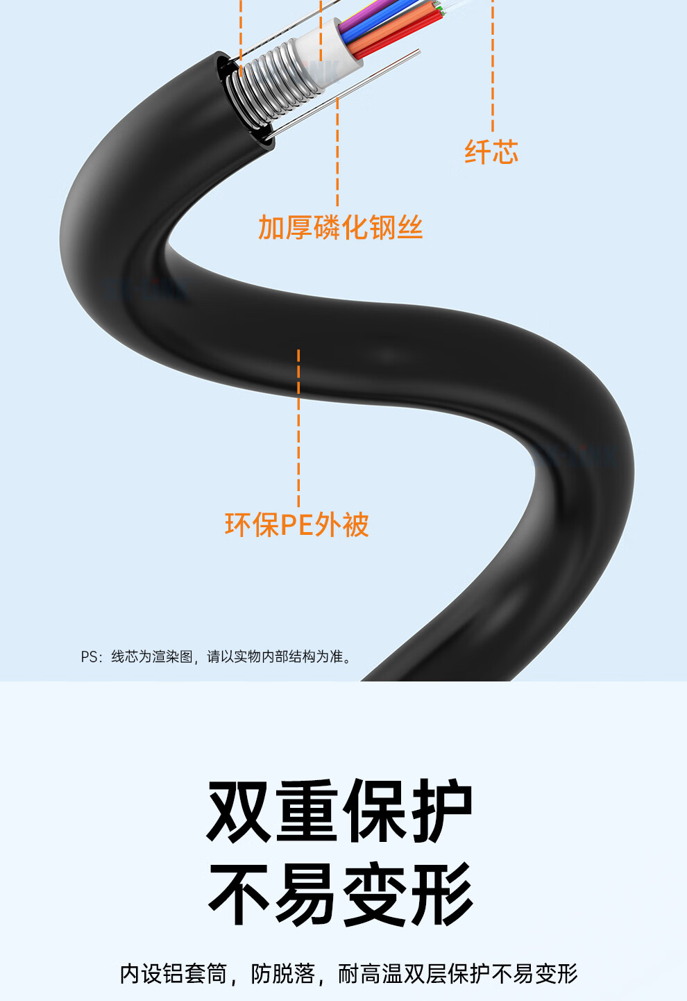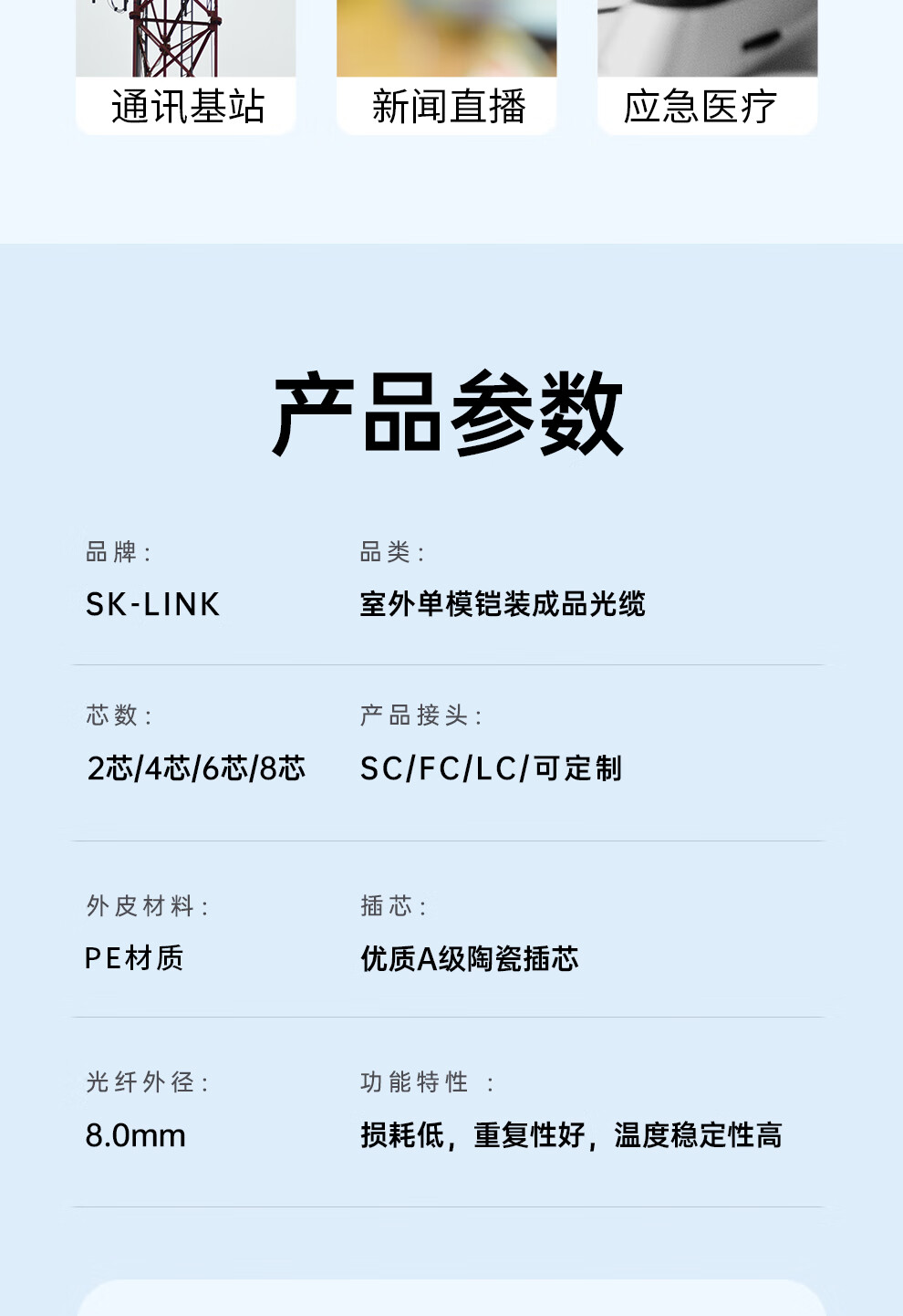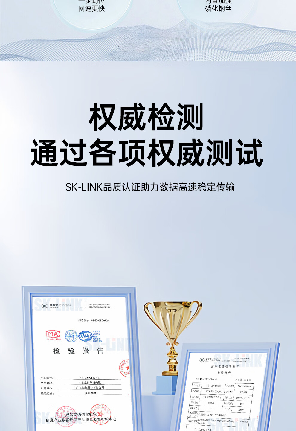 SK-LINK 室外单模铠装成品光缆4芯光纤线四芯光纤跳线免熔接户外架空50米FC接头GYXTW-4B-50M(FC)