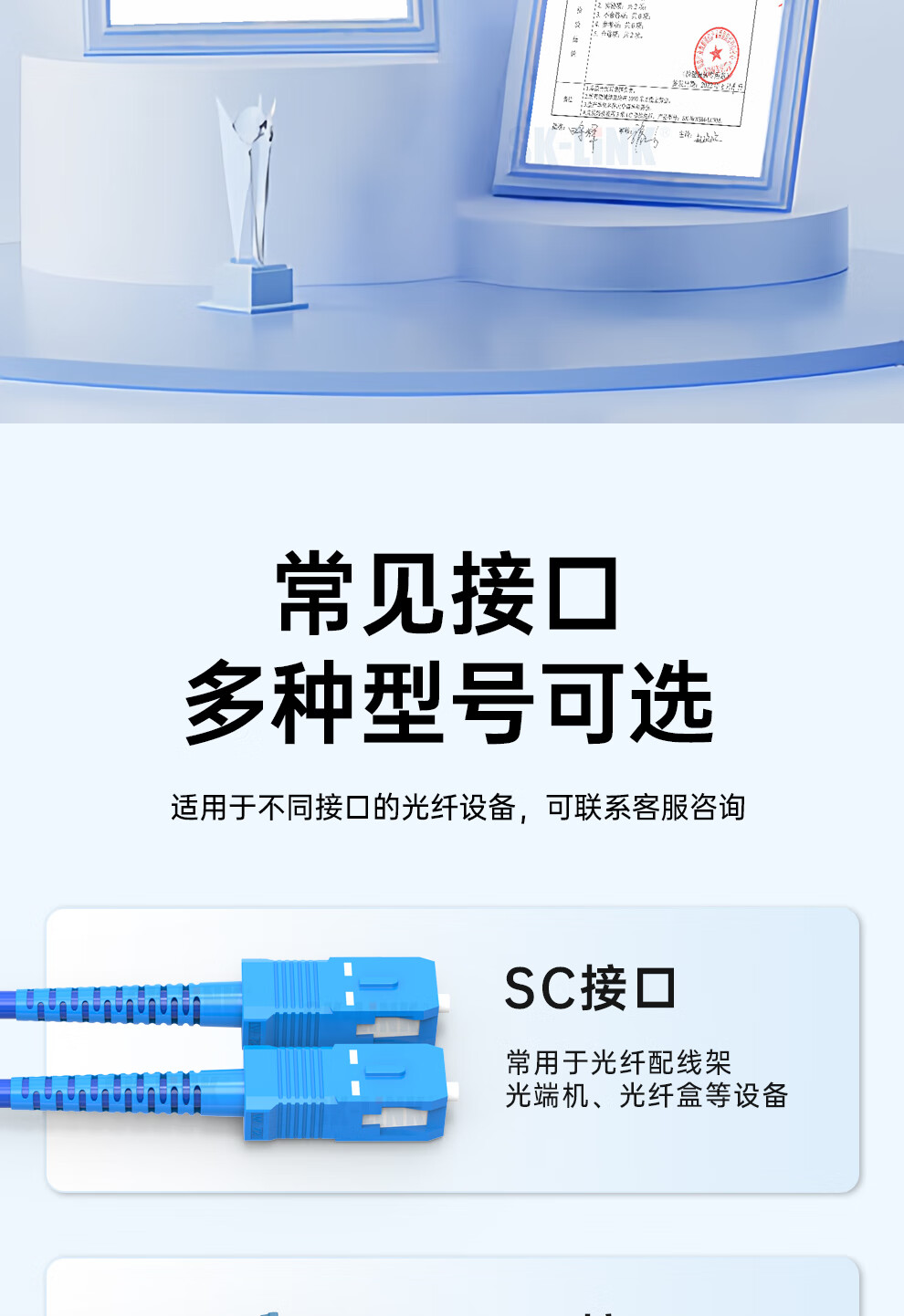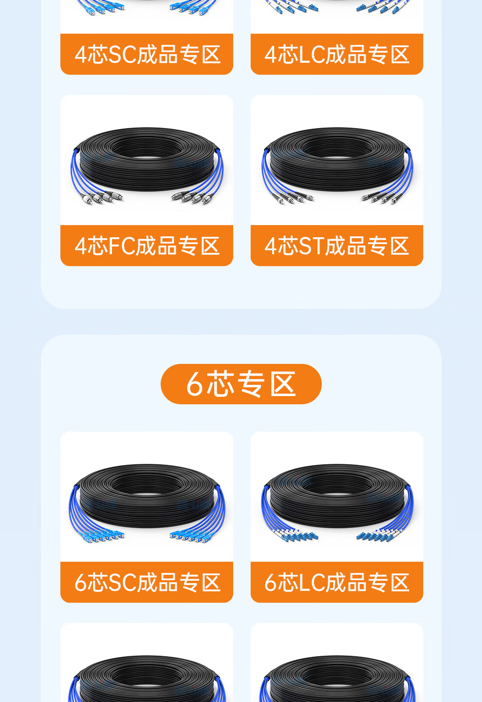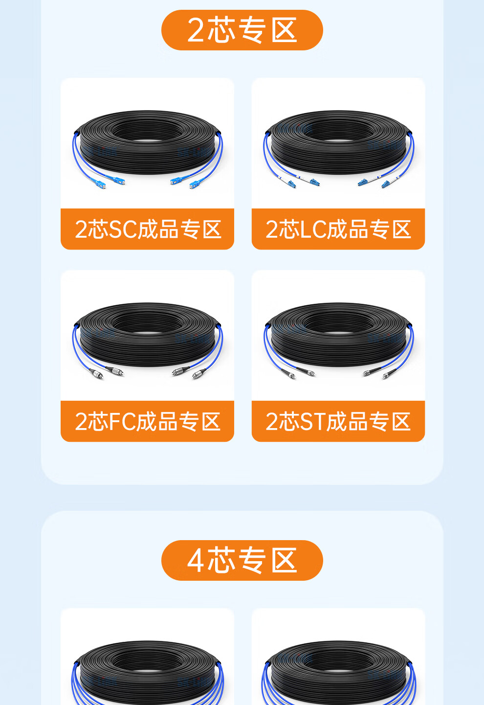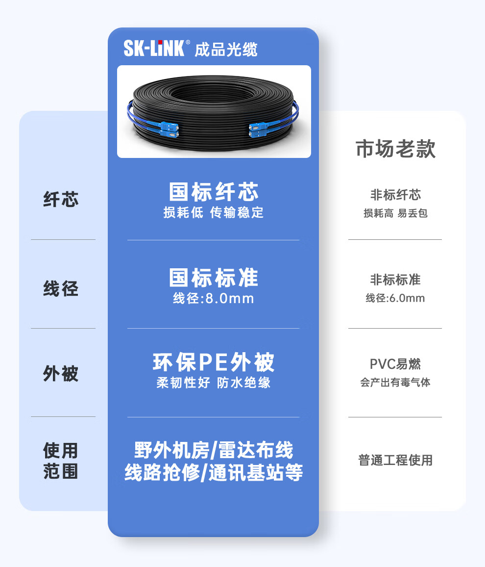 SK-LINK 室外单模铠装成品光缆4芯光纤线四芯光纤跳线免熔接户外架空50米FC接头GYXTW-4B-50M(FC)