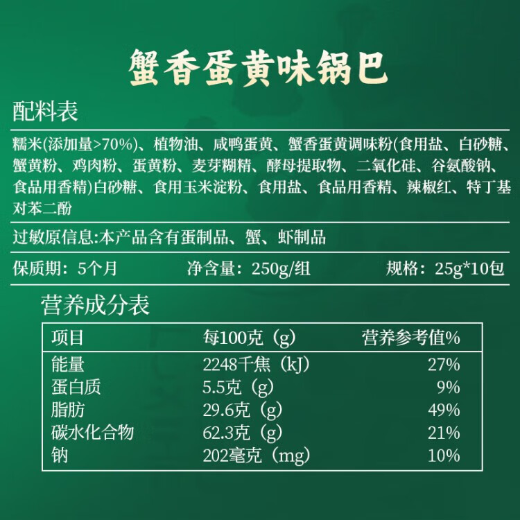 泸溪河 蟹香蛋黄味锅巴 250g(10包) 糯米锅巴膨化饼干桃酥糕点心零食