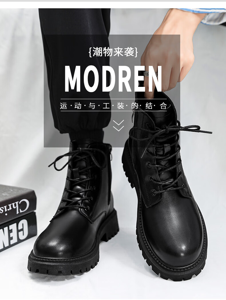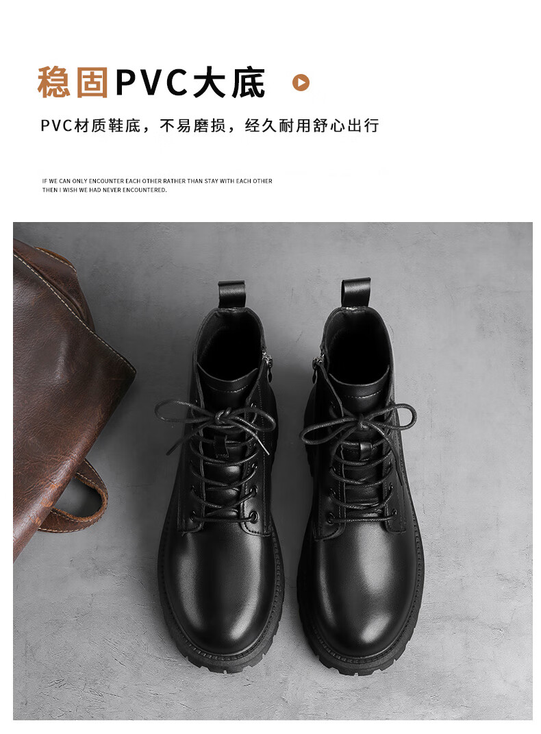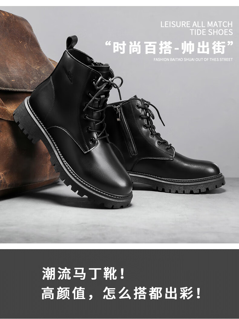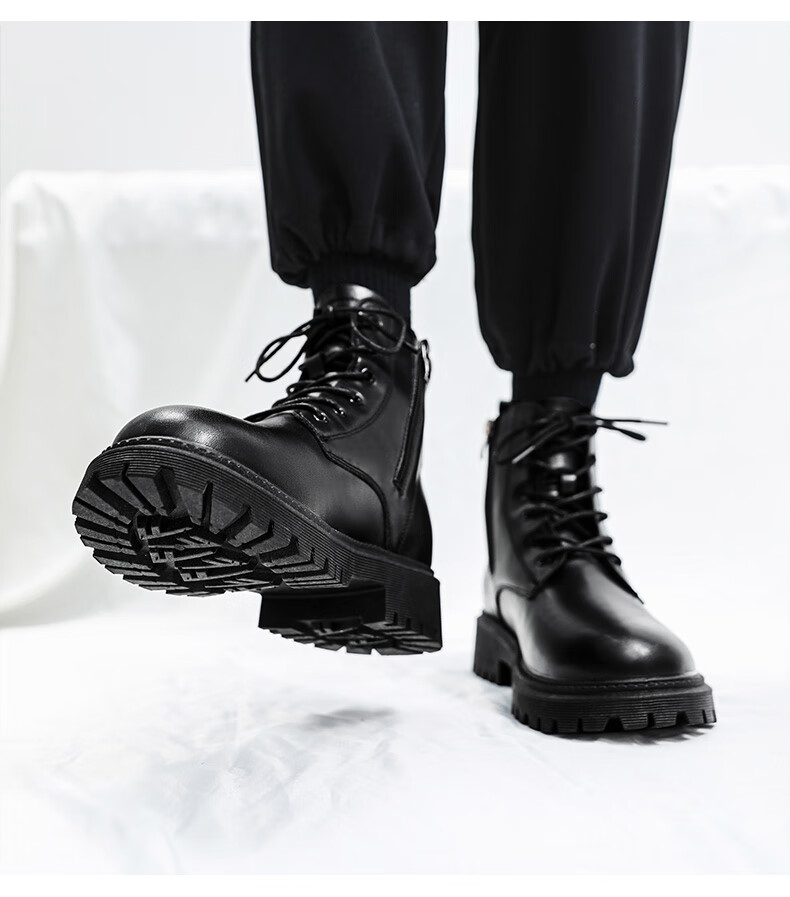 Retirez les bottes officielles Martin bottes pour hommes automne en cuir imperméable à semelle épaisse bottes de travail rehaussantes bottes noires hommes noir 43