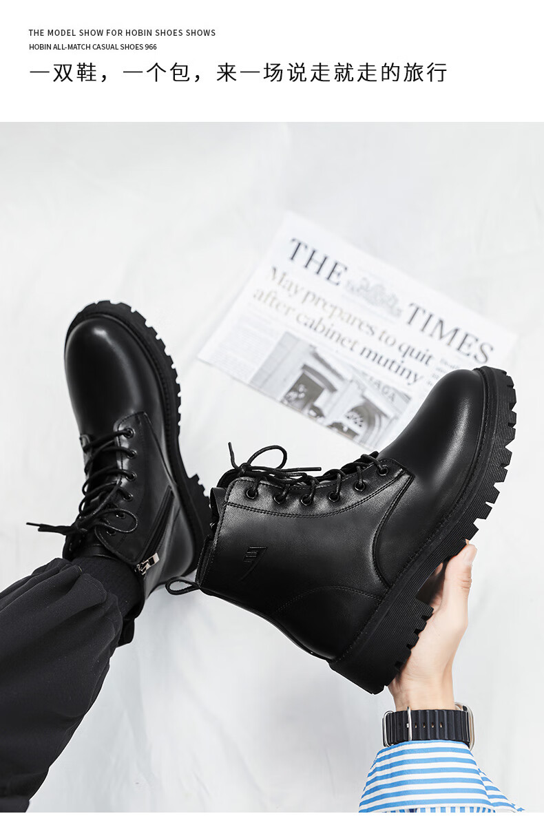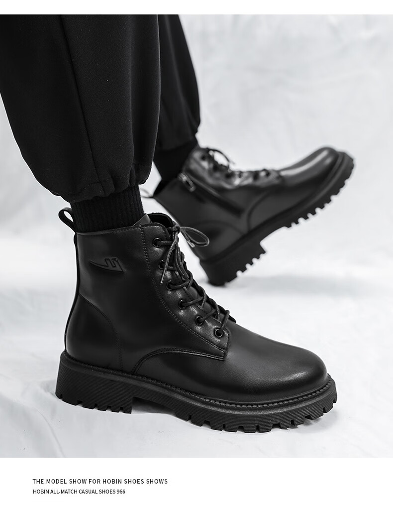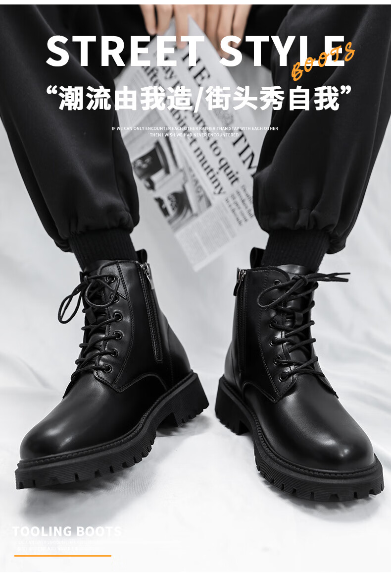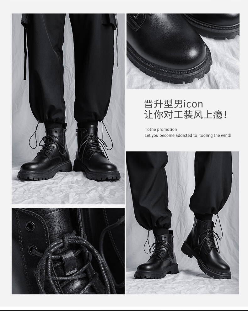 Retirez les bottes officielles Martin bottes pour hommes automne en cuir imperméable à semelle épaisse bottes de travail rehaussantes bottes noires hommes noir 43