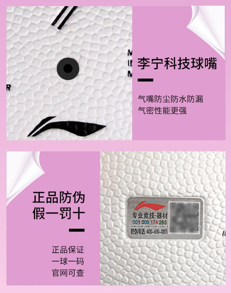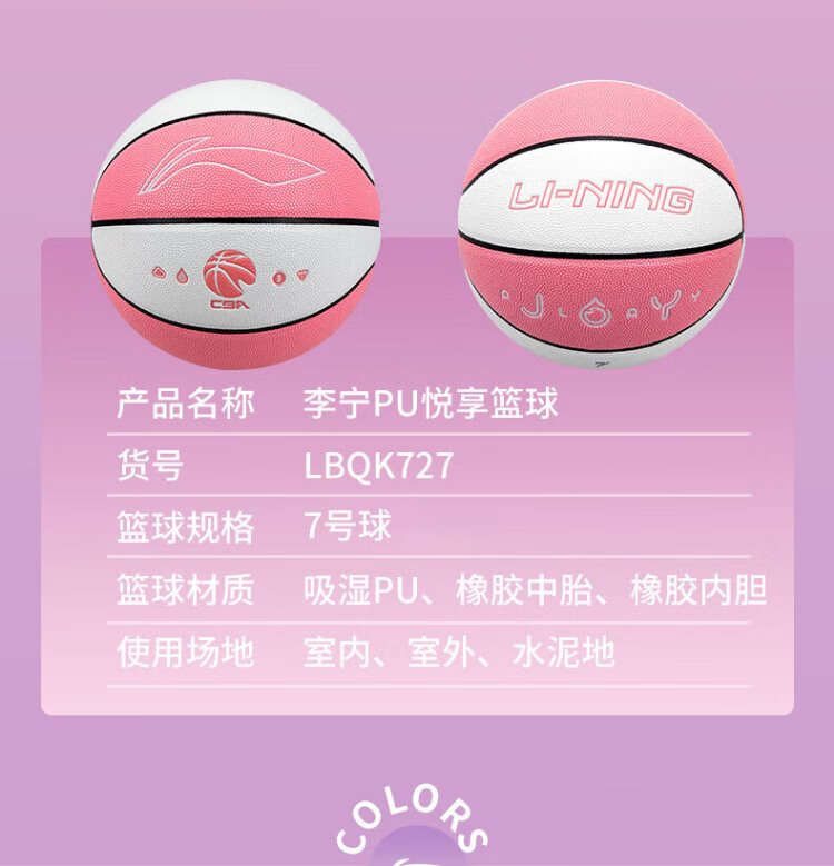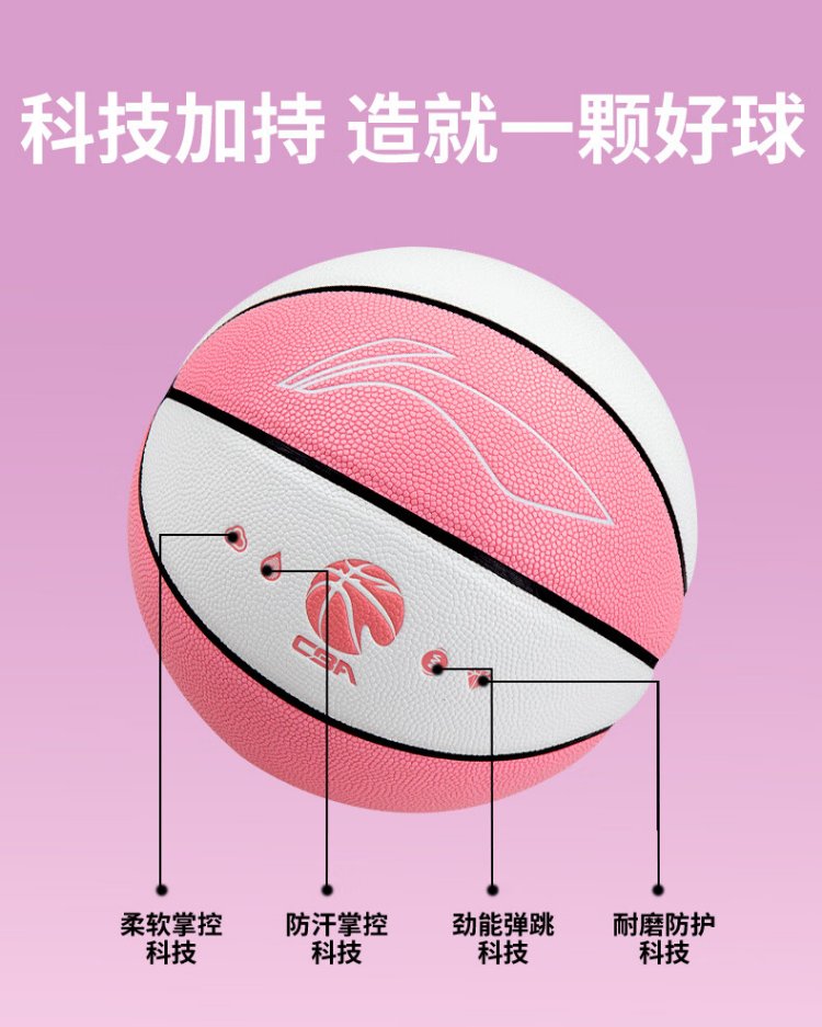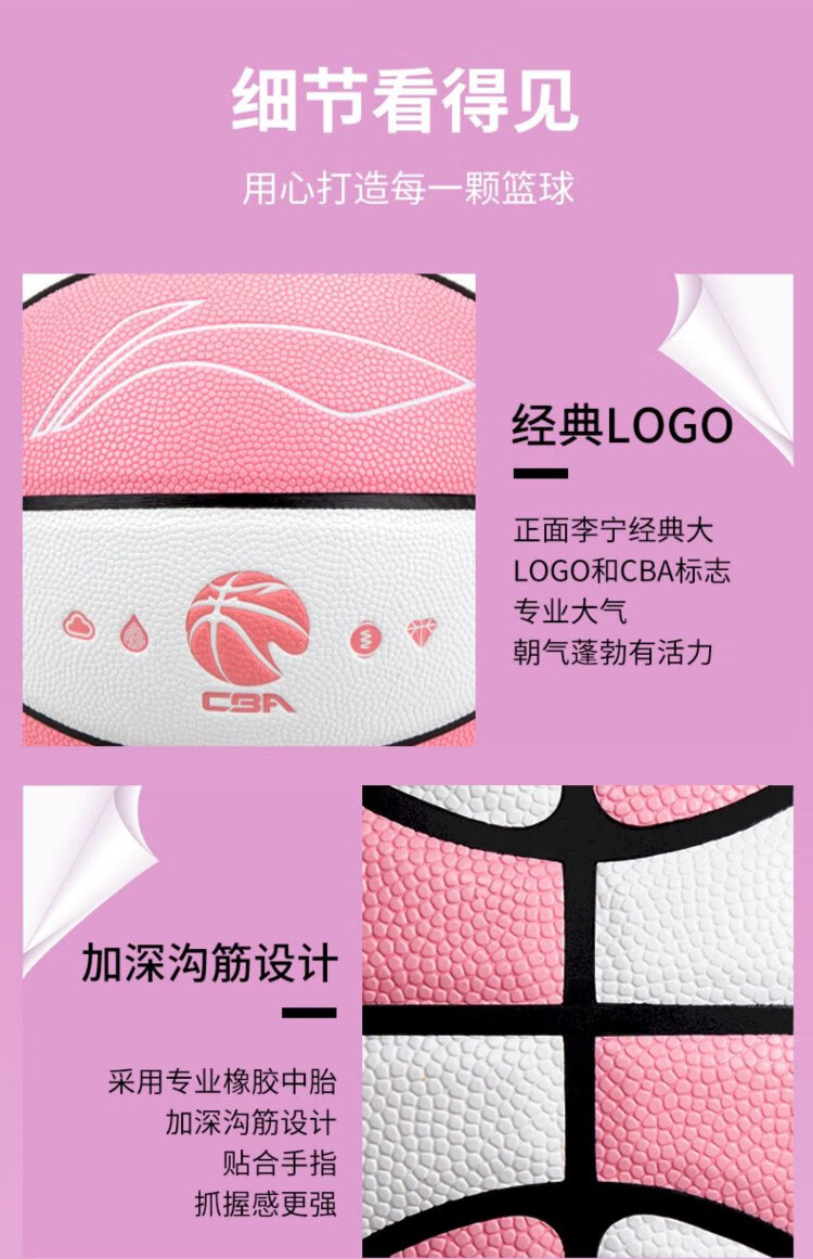 李宁篮球CBA联赛悦享耐磨吸湿PU室内外儿童成人比赛7号LBQK727-2