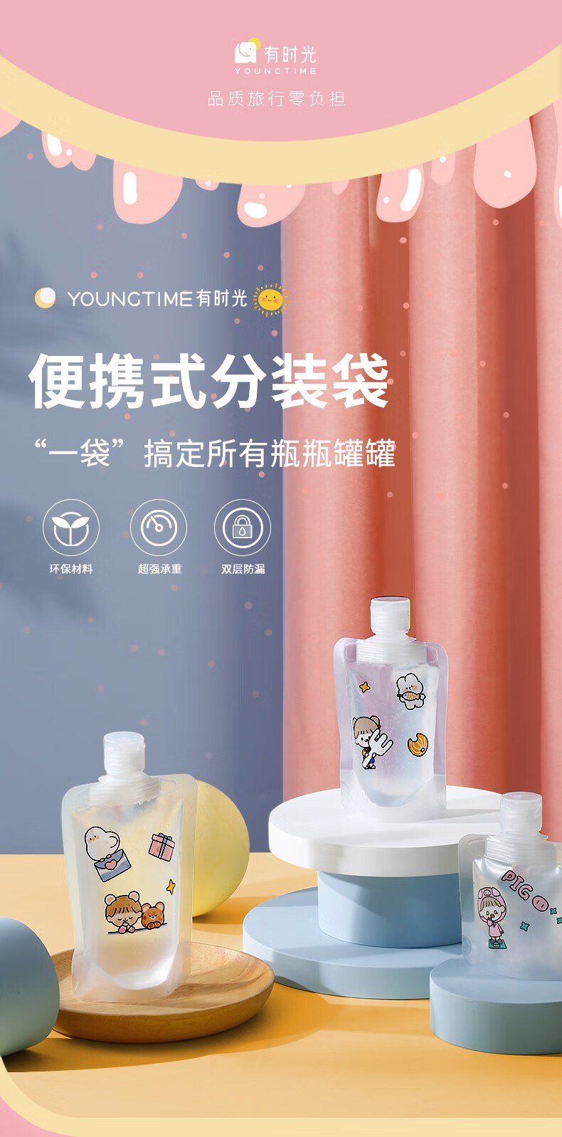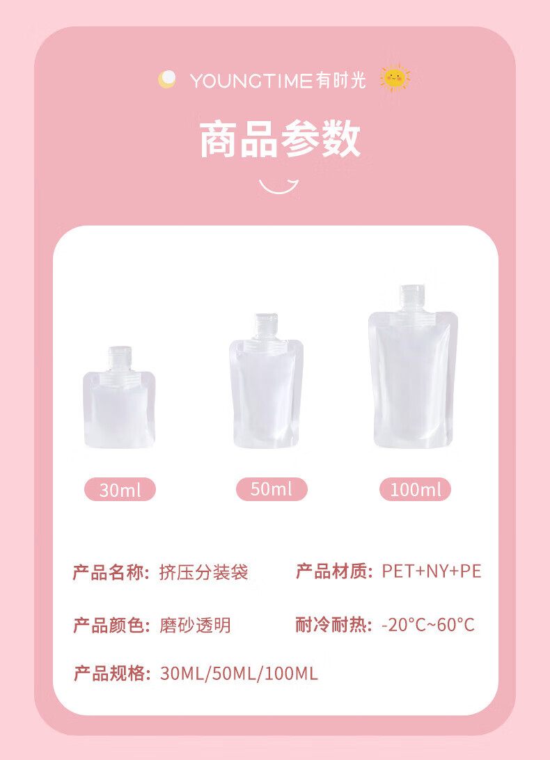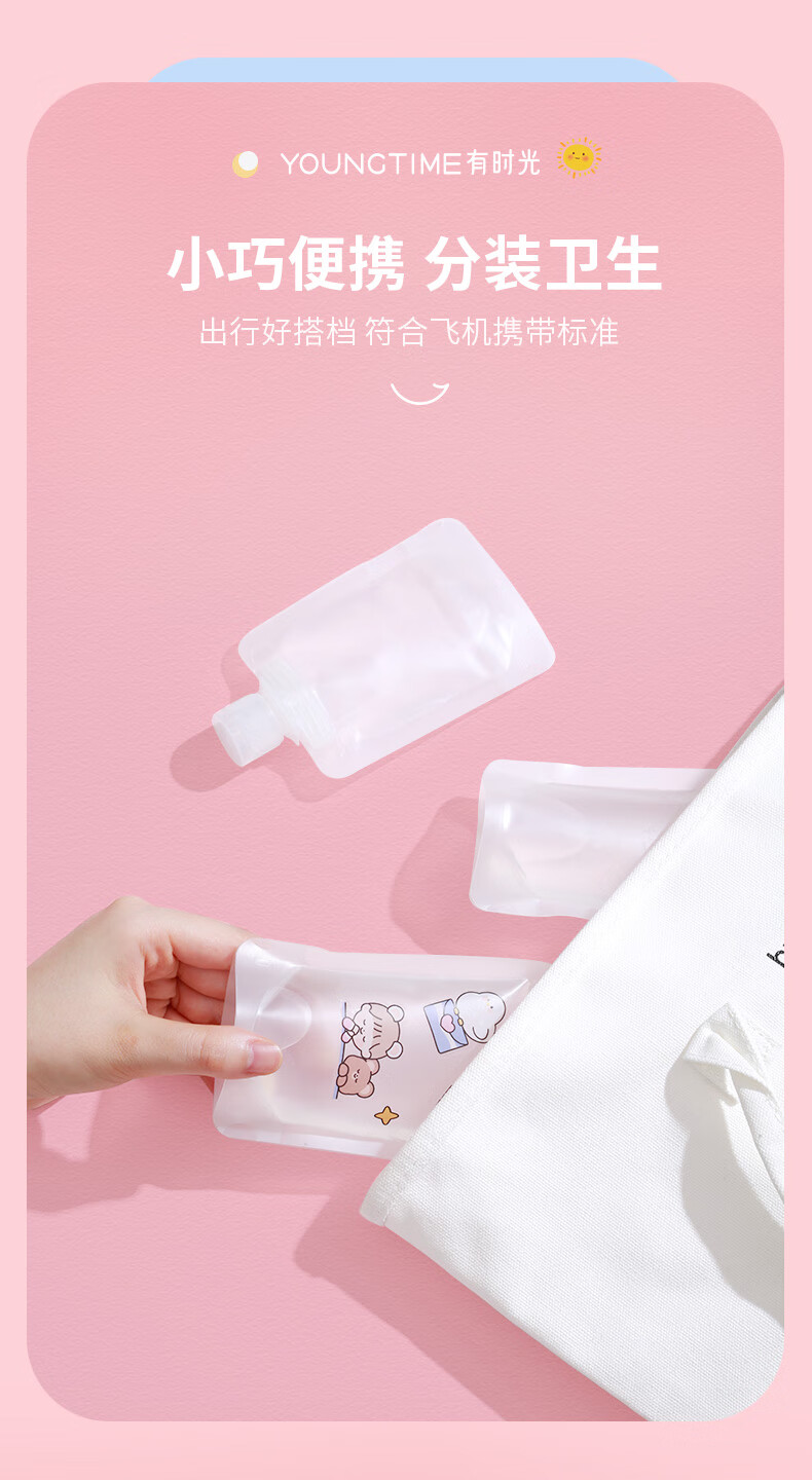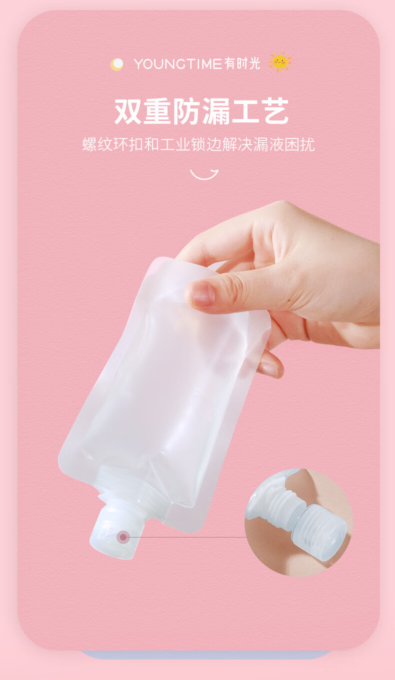 Time refilling bottle repacking bag travel size lotion skin care products shampoo essential water disposable small bottles 50ml 5 pieces