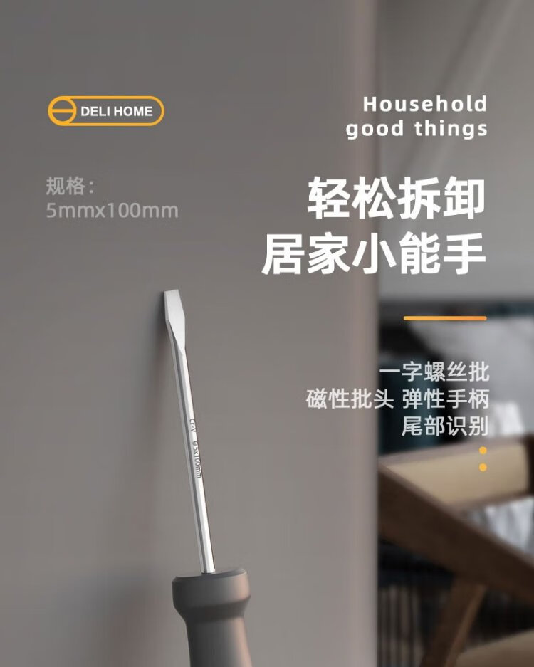 得力(deli)三把装 螺丝批套装一字工业级强磁螺丝批工具超硬改锥小起子大全 一字螺丝批 HT1105C