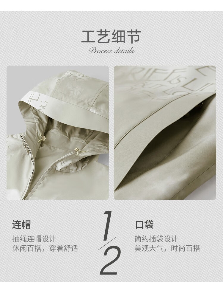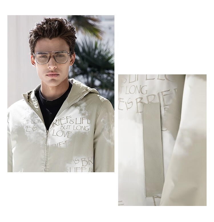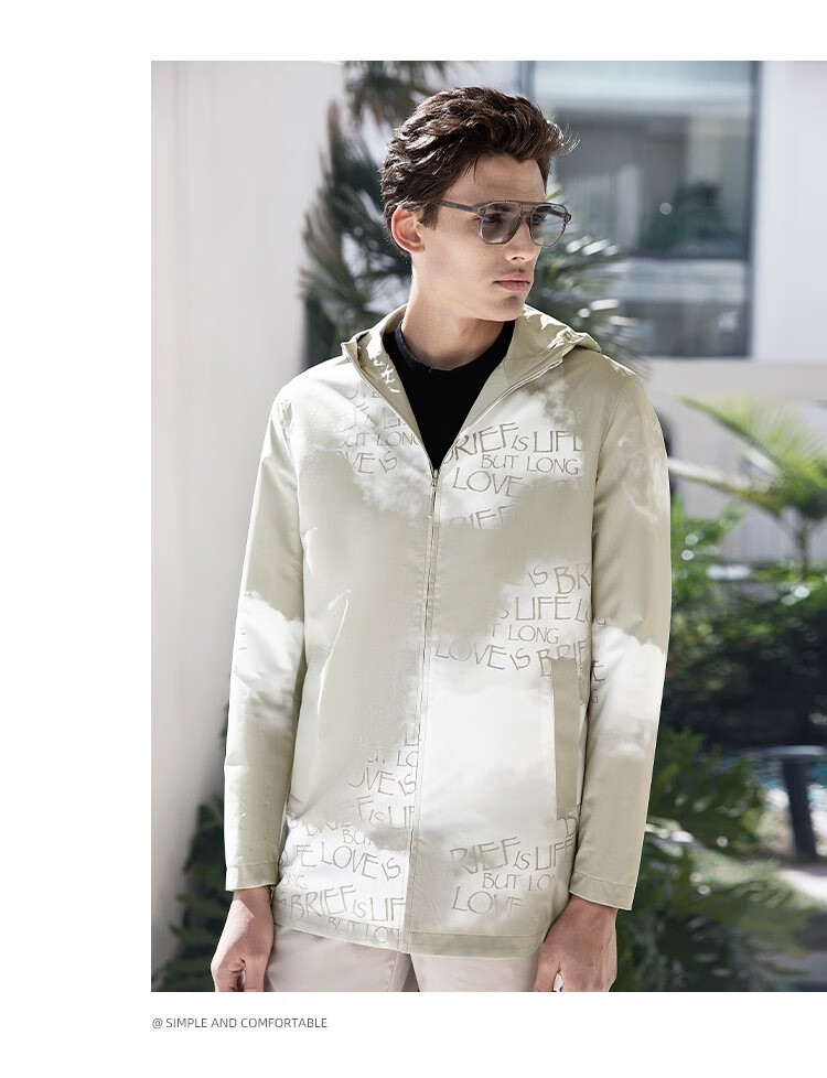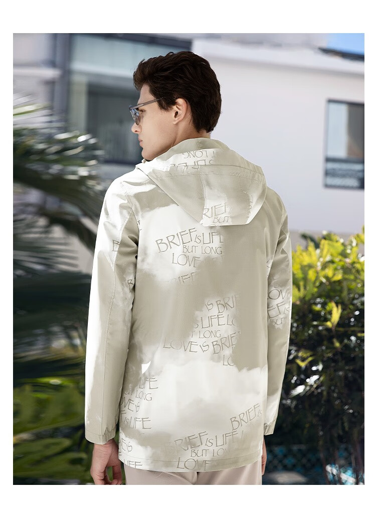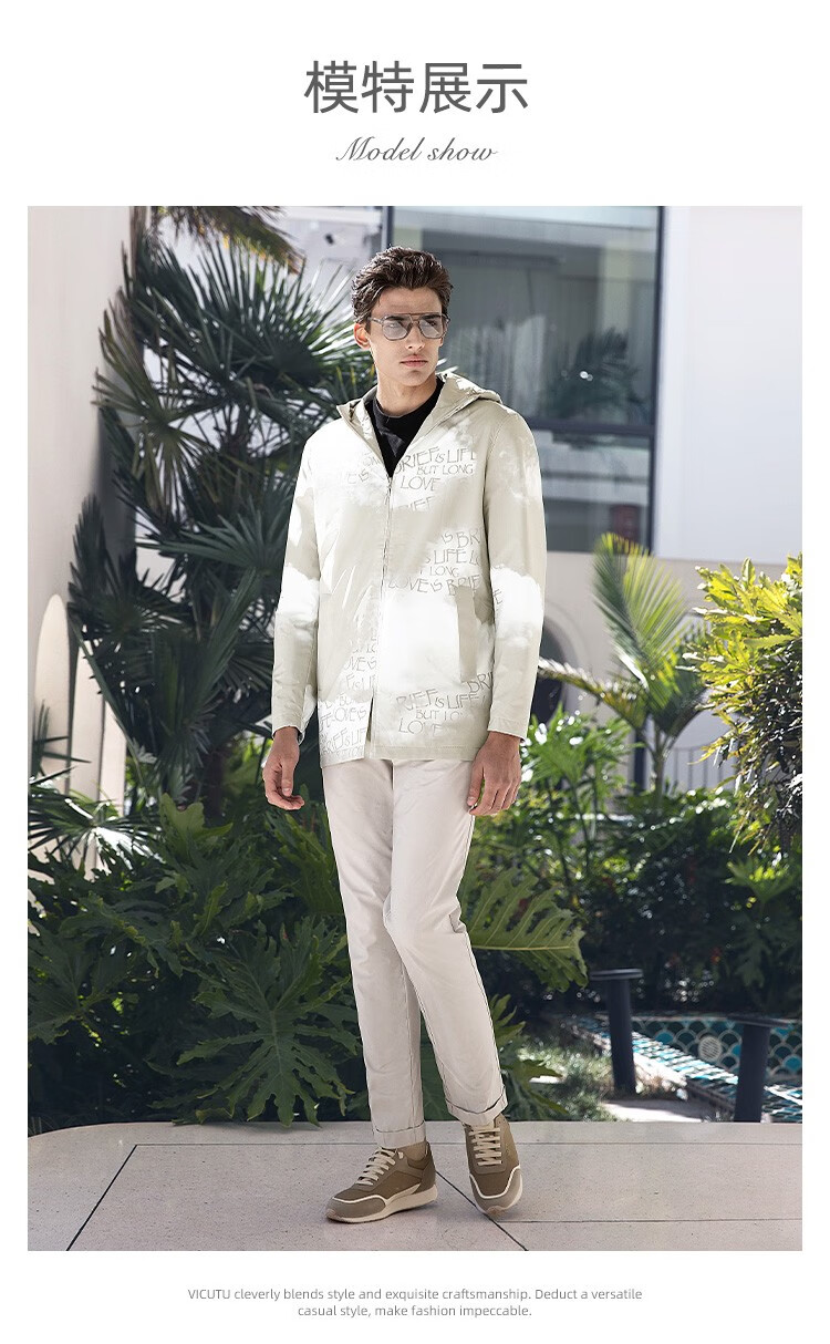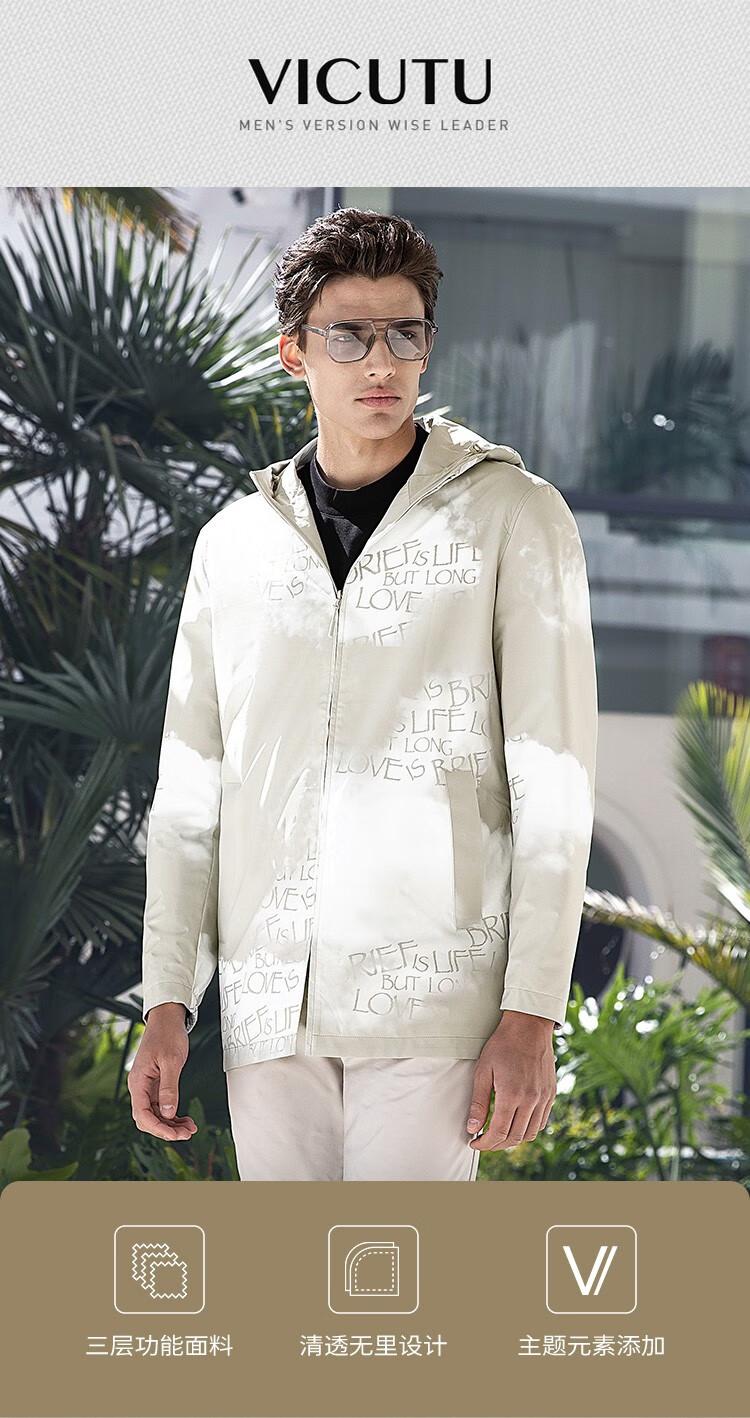 威可多(VICUTU)男士风衣潮流休闲连帽外套VRS21142931 灰绿色 175/92A