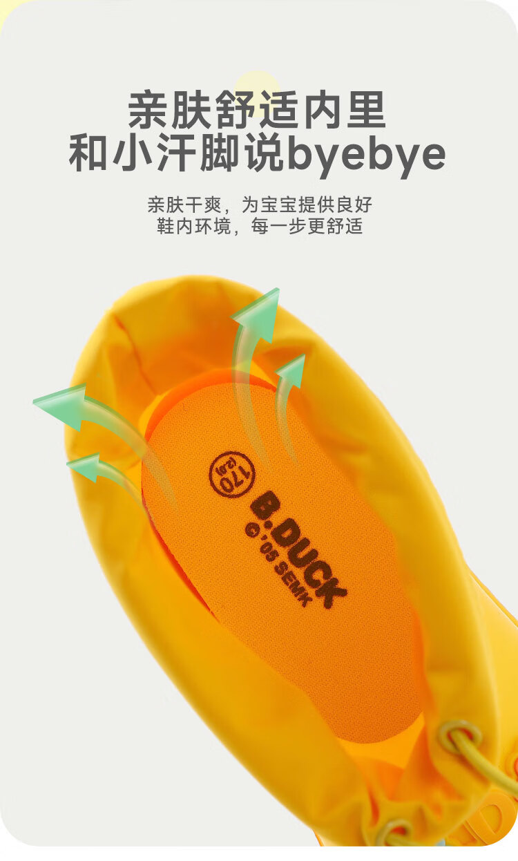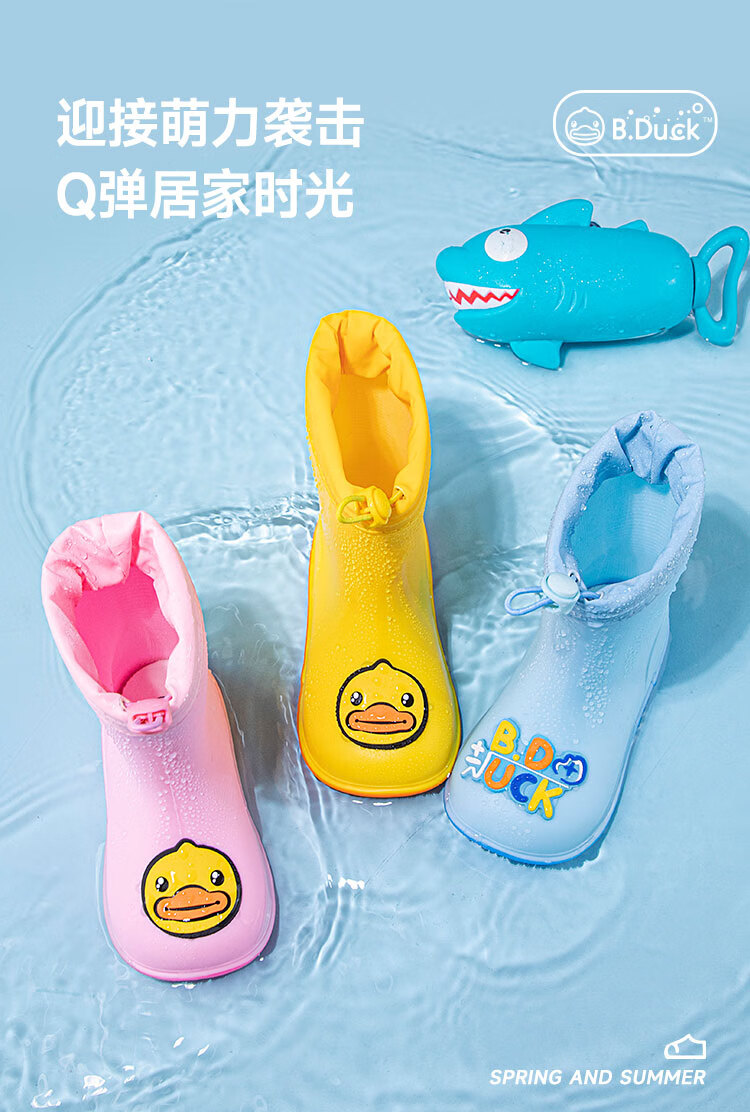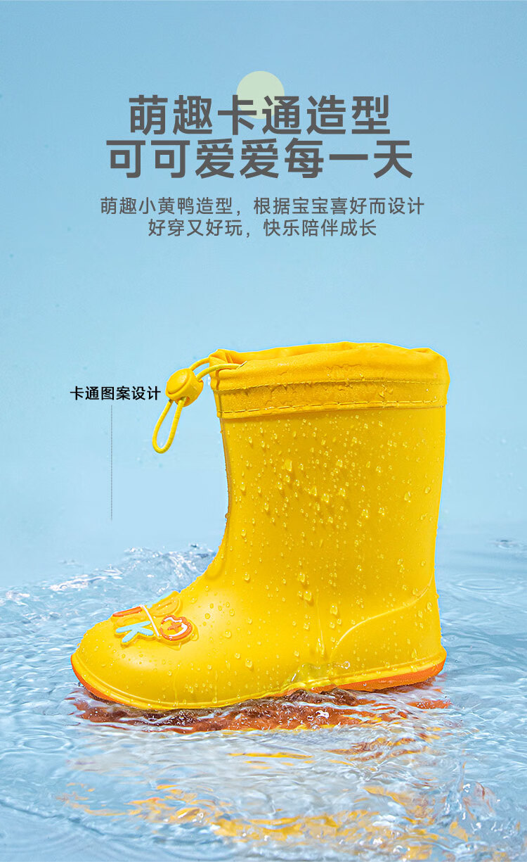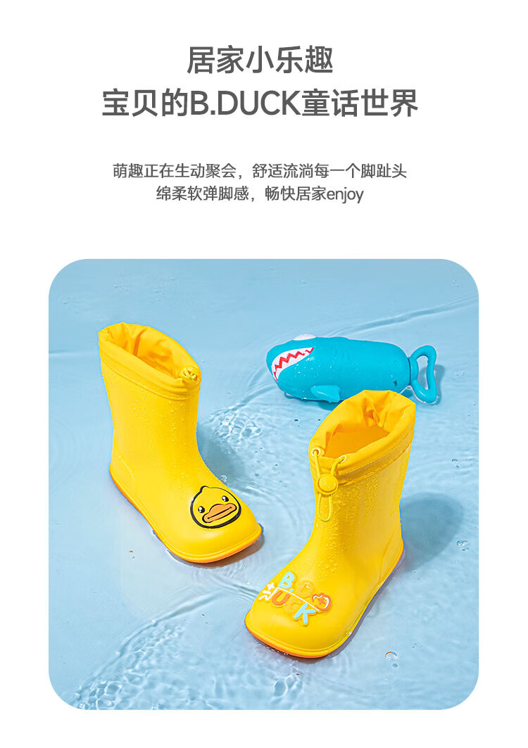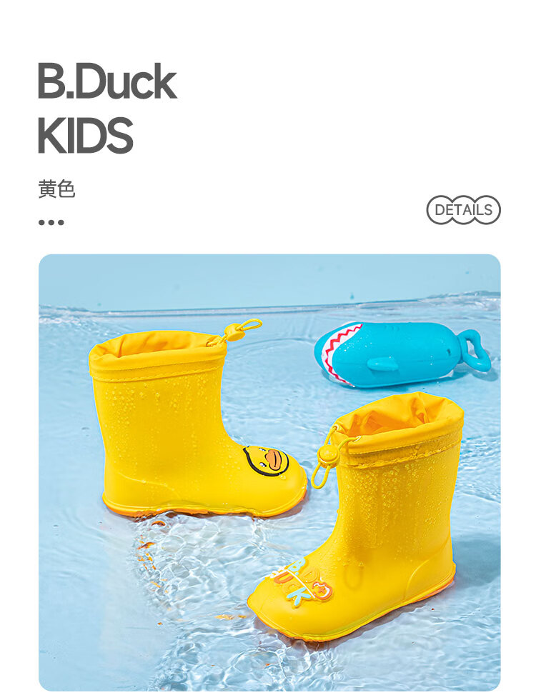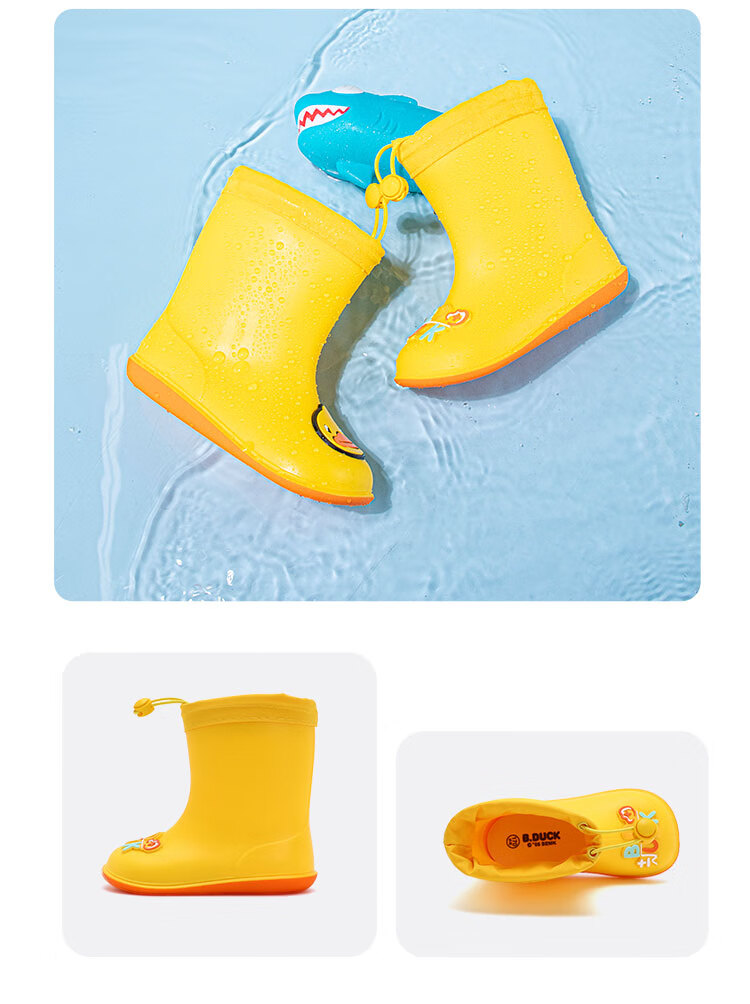 B.Duck小黄鸭童鞋儿童四季雨靴男童女童宝宝束脚筒靴雨鞋5911黄色20