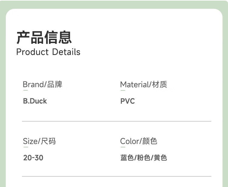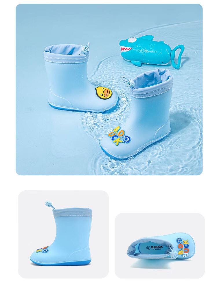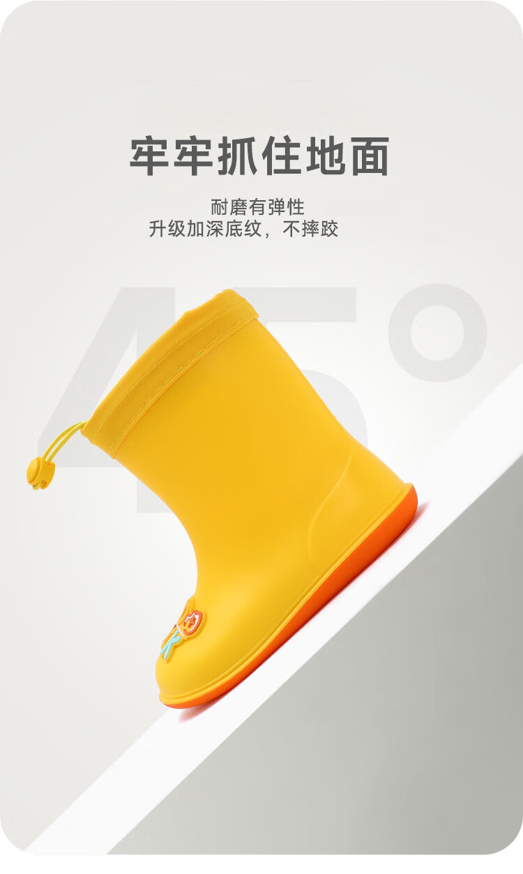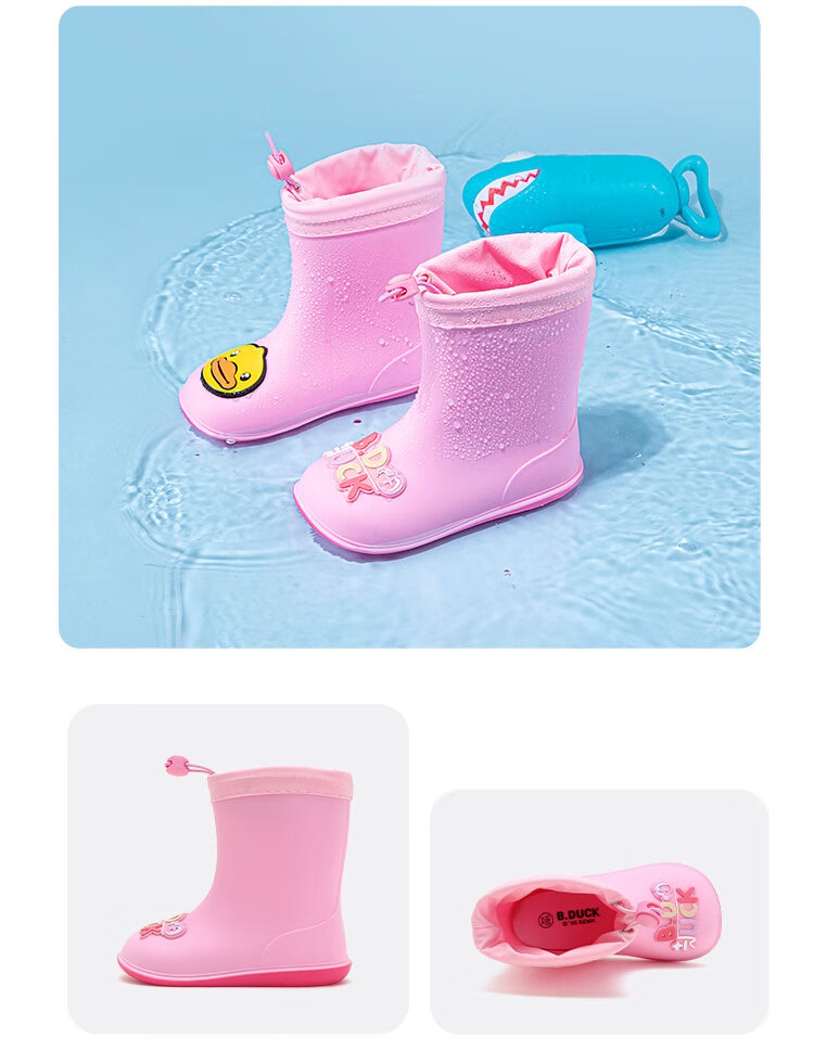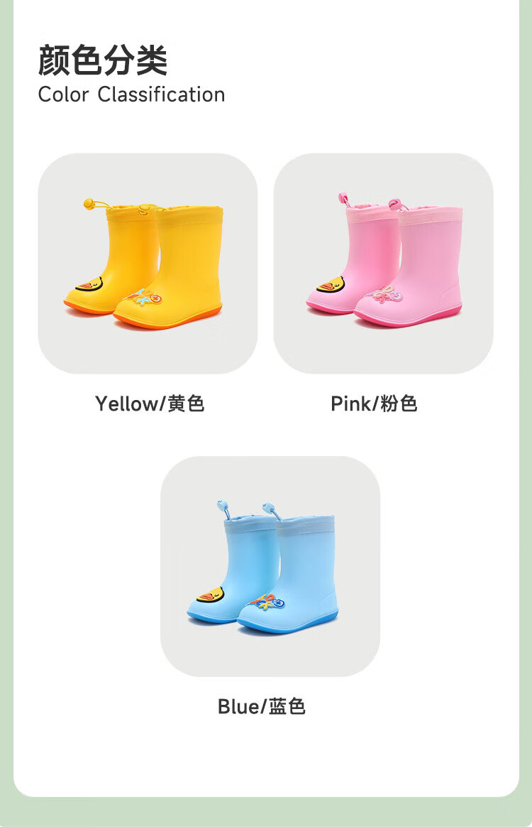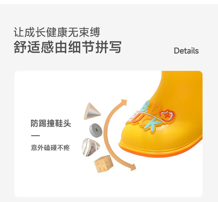 B.Duck小黄鸭童鞋儿童四季雨靴男童女童宝宝束脚筒靴雨鞋5911黄色20