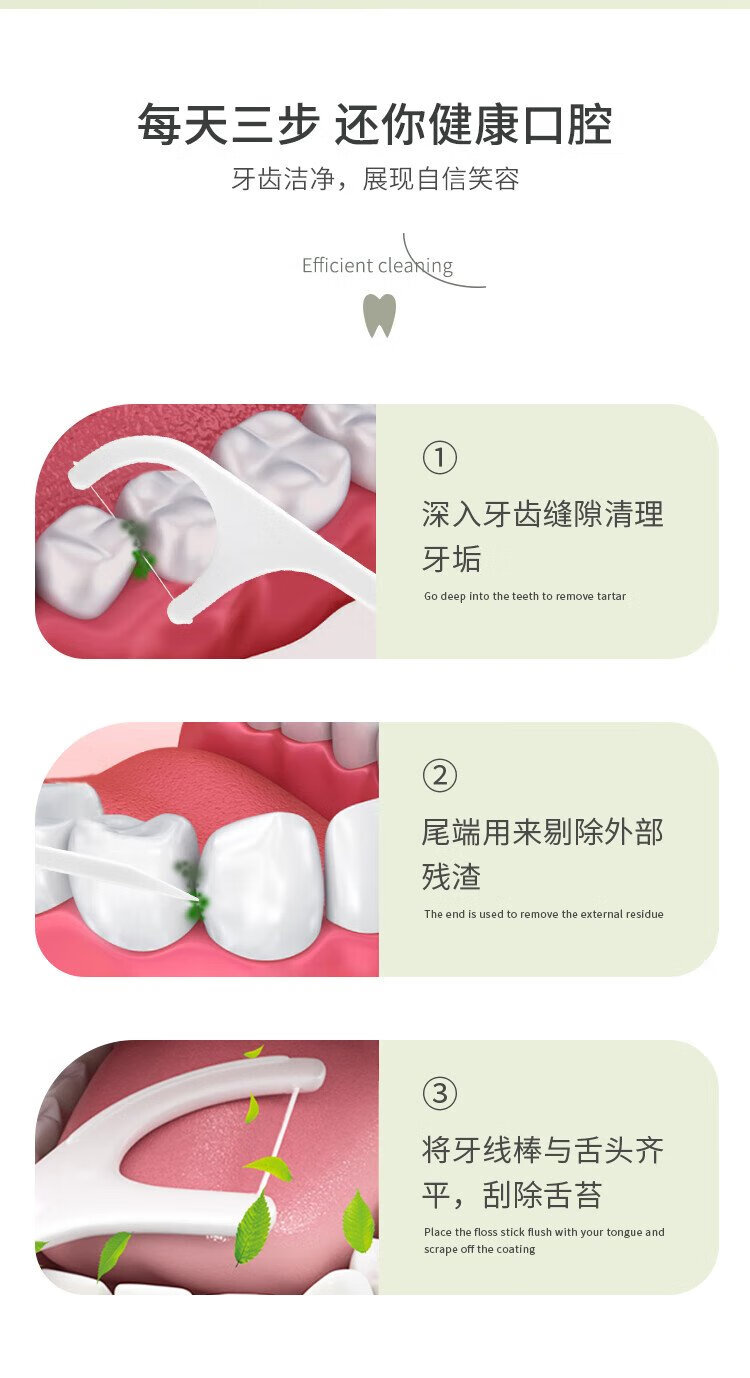 Зубная нить Hai's Heinola «один к трем», 100 шт. * 5 пакетиков для чистки межзубных промежутков с сильной силой вытягивания для глубокой чистки.