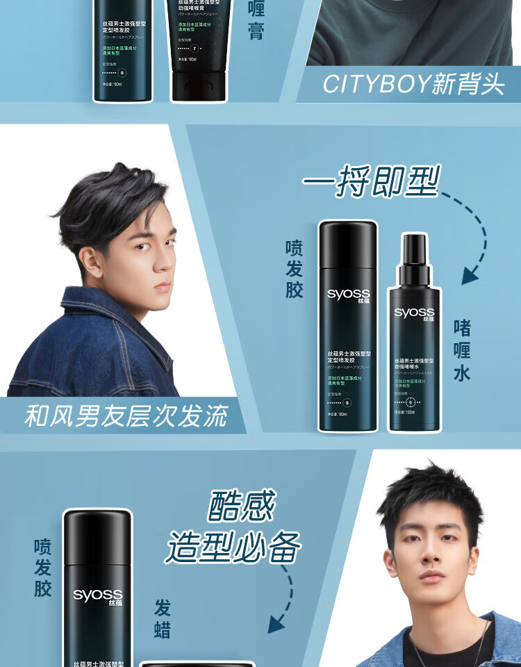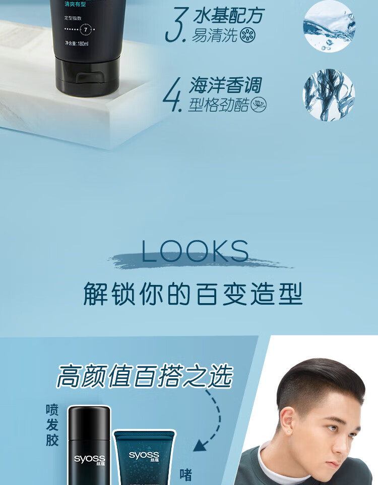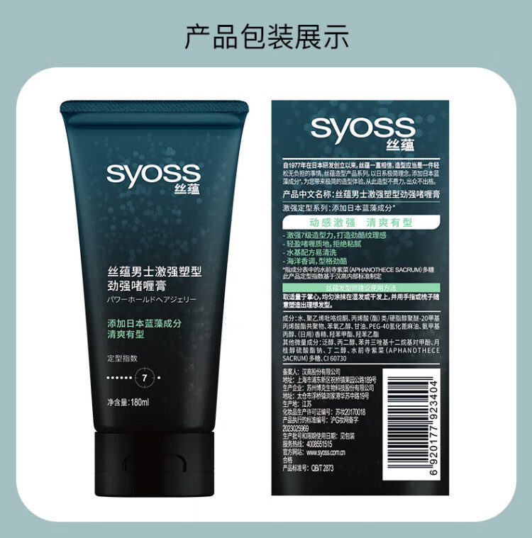 丝蕴(syoss)男士激强塑型劲强啫喱膏180ml*2