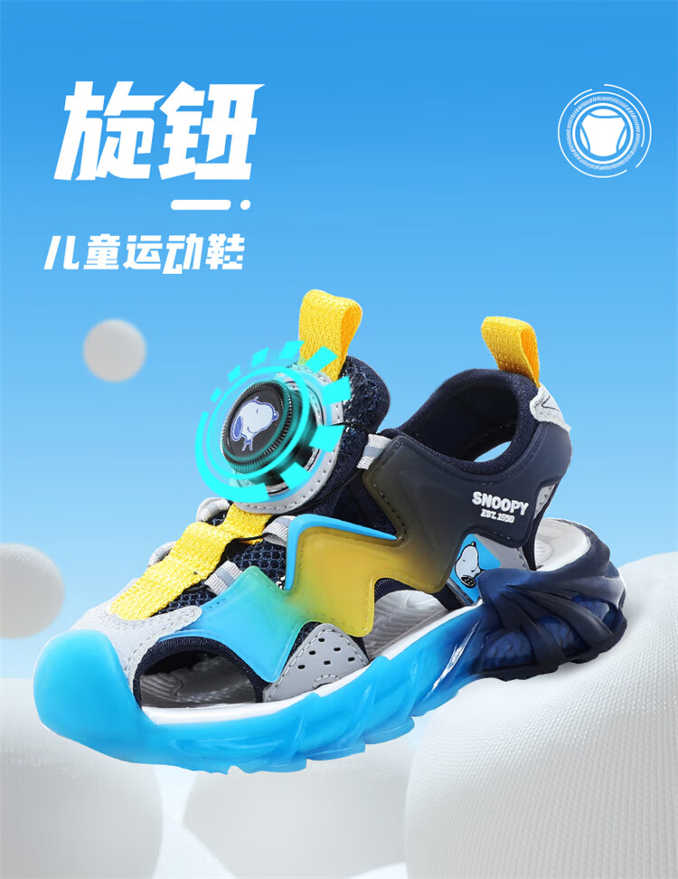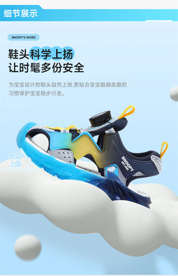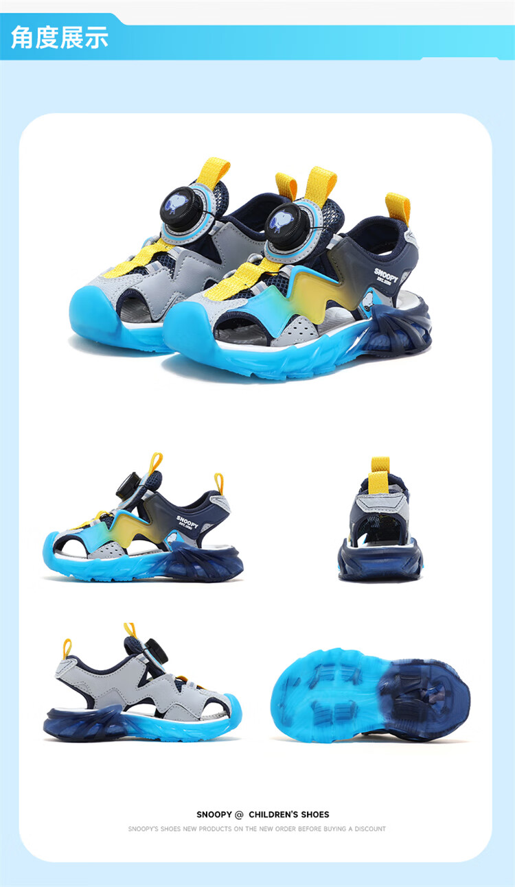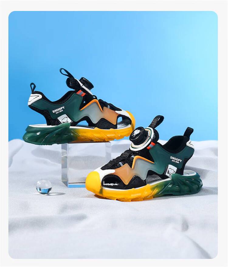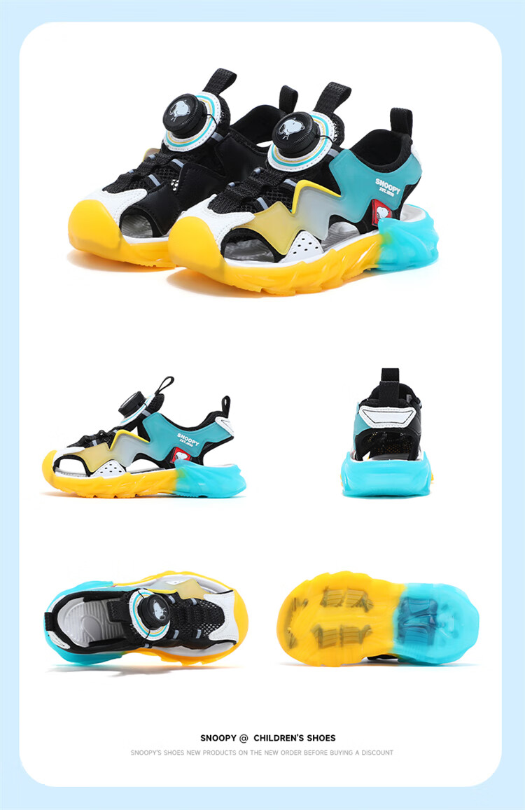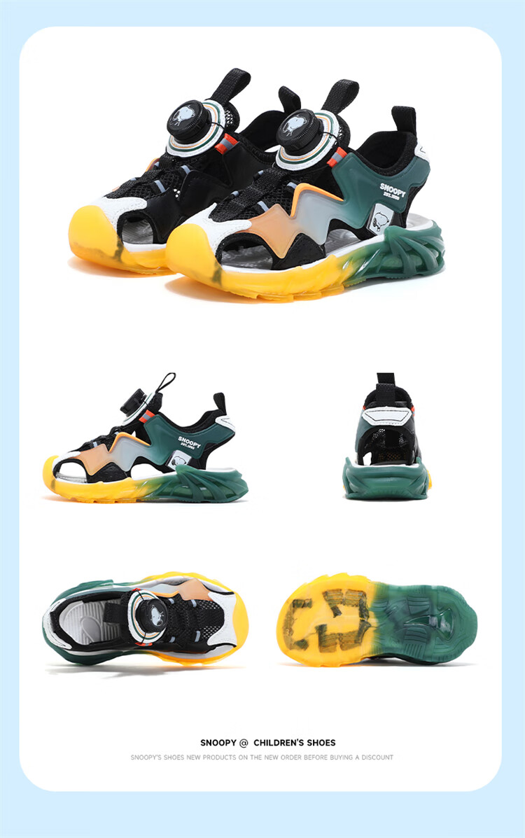 SNOOPY史努比童鞋男童包头凉鞋夏季男孩儿童轻便沙滩鞋潮3937黑绿34