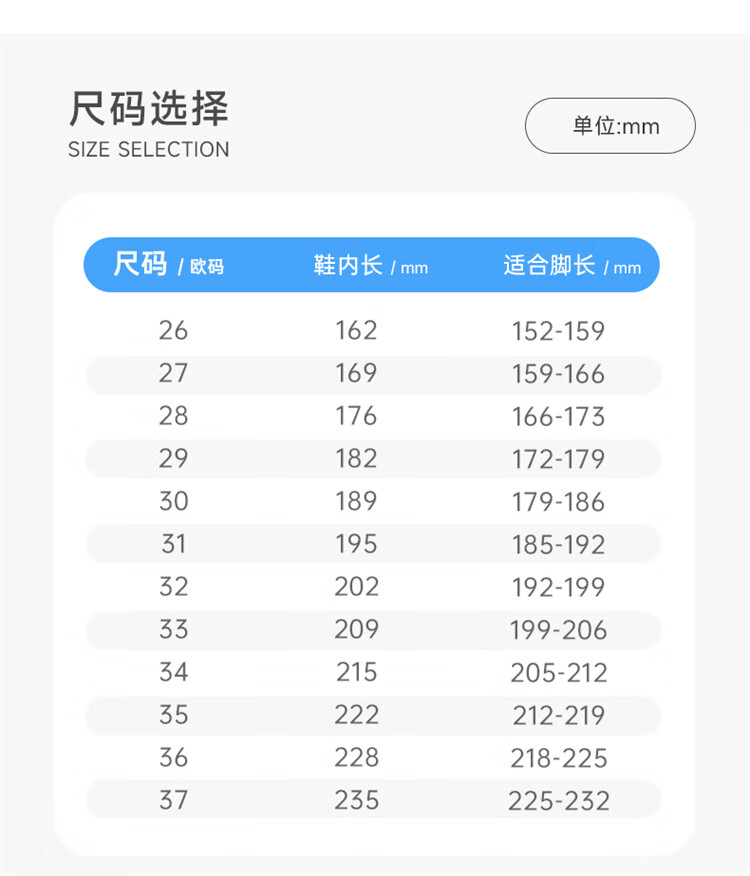 China (cm) 36 - 37 38 - 39 40 - 42 43 - 44 45 - 47