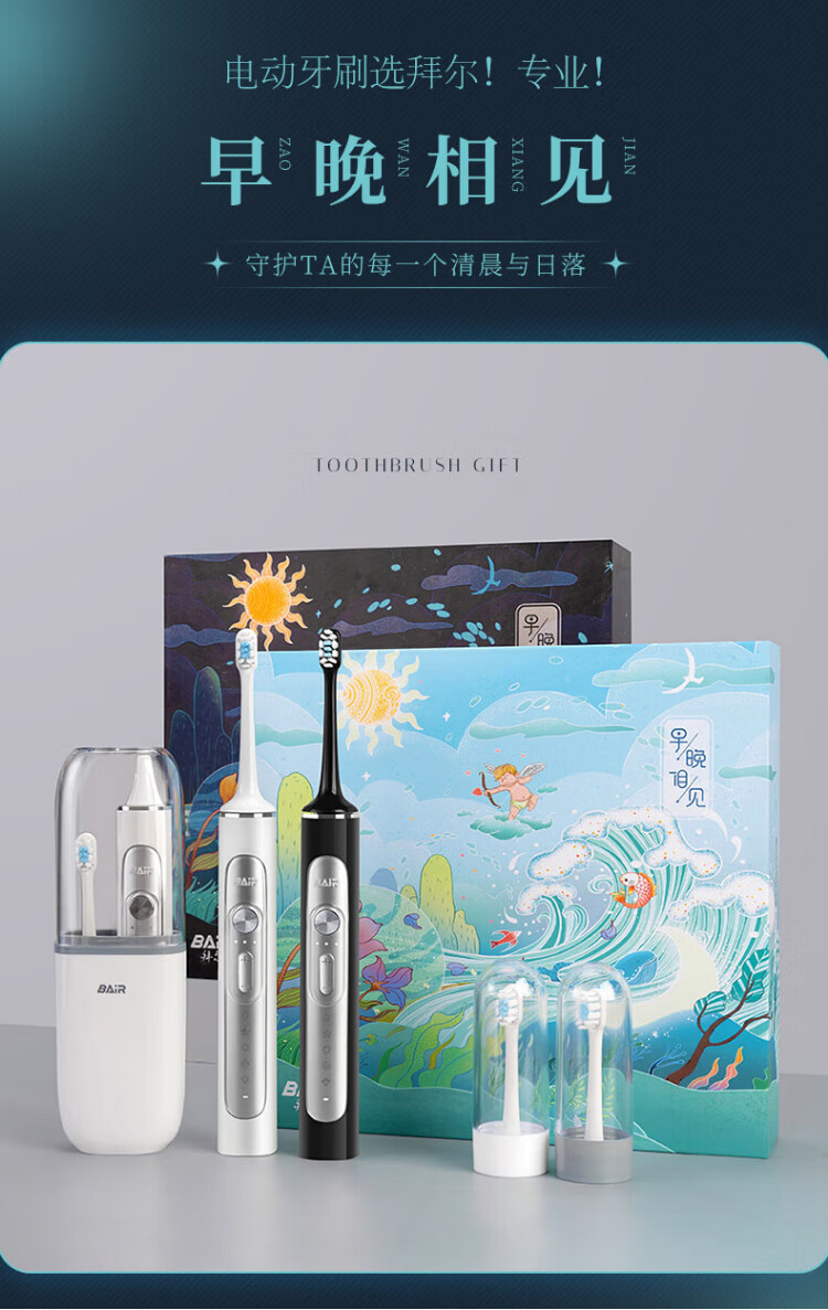 拜尔G2/G201高端旗舰机 电动牙刷成人智能震动充电个人护理电动自动牙刷声波男送女朋友礼盒装 真爱粉