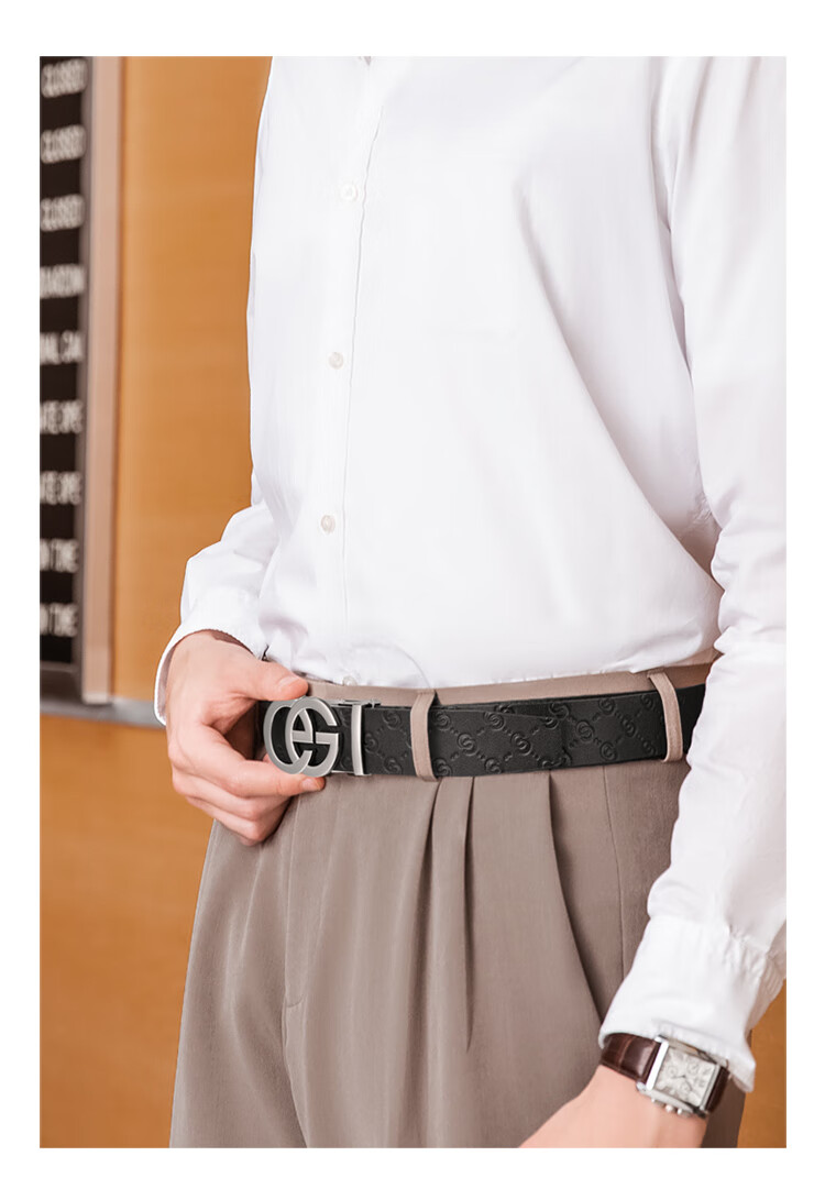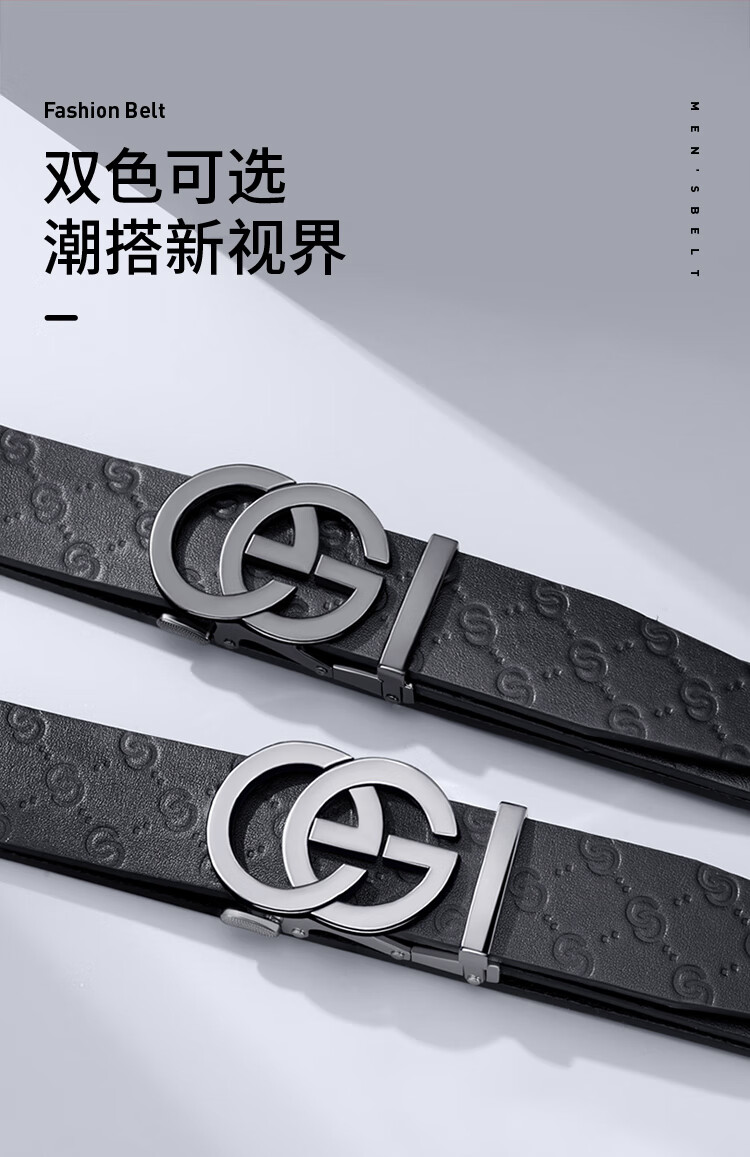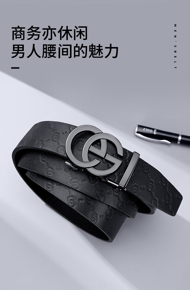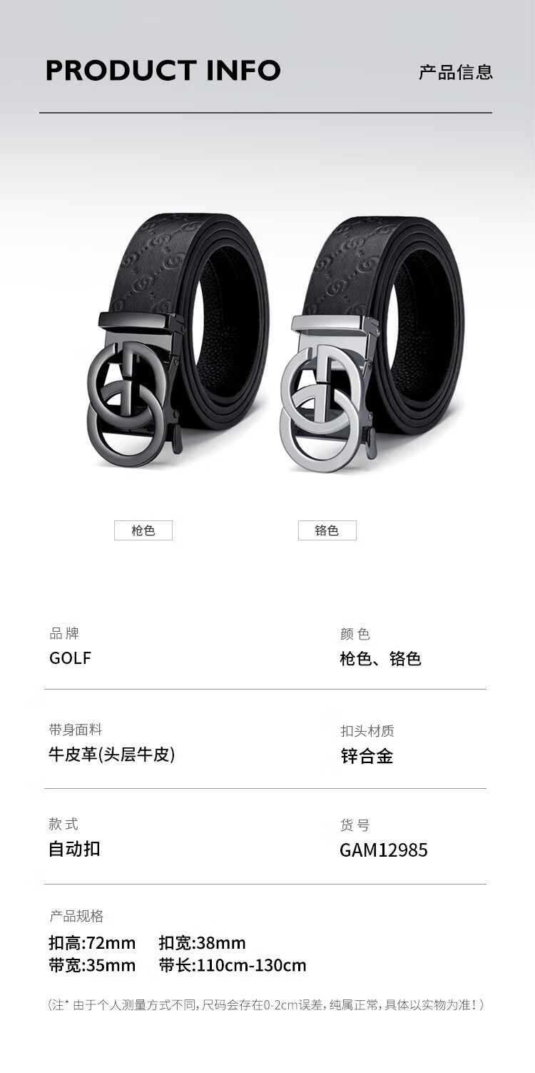高尔夫(GOLF)男士皮带双面头层牛皮腰带男自动扣裤腰带礼盒装送男友生日礼物
