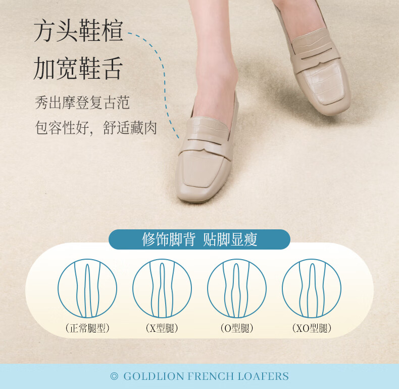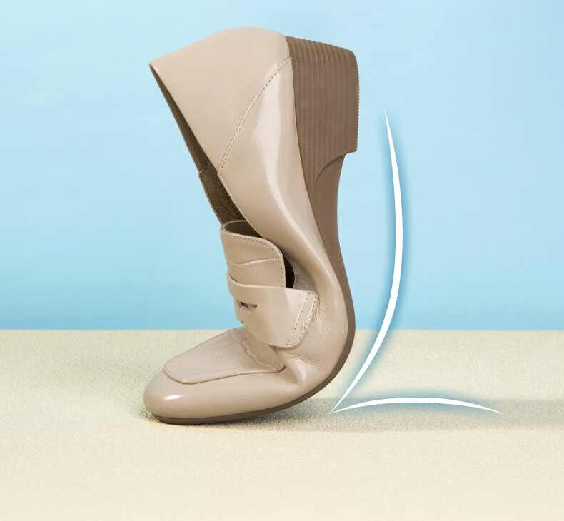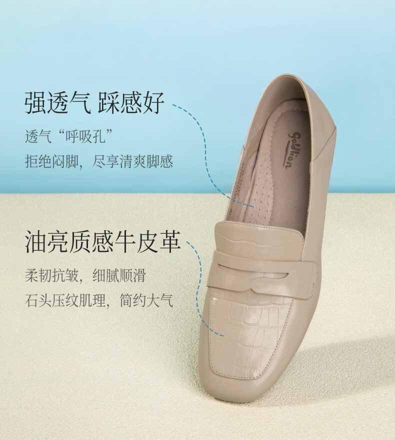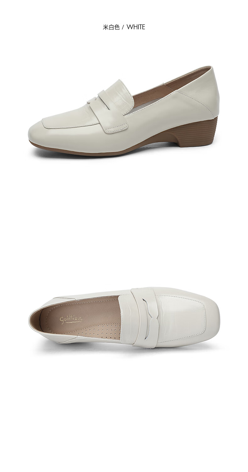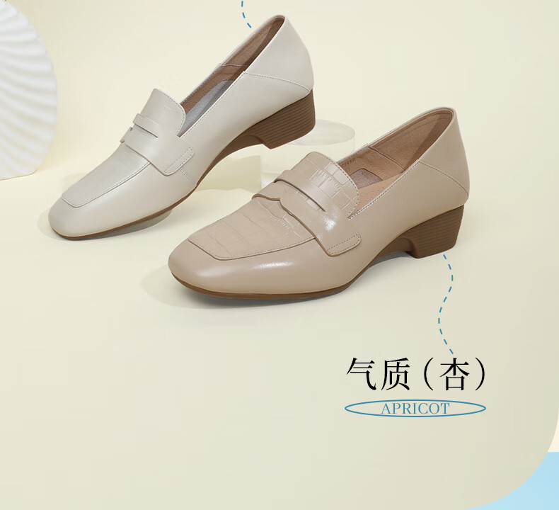 Goldlion women's wedge loafers women's fashion small leather shoes deep square toe slip-on shoes G661310122 apricot 38