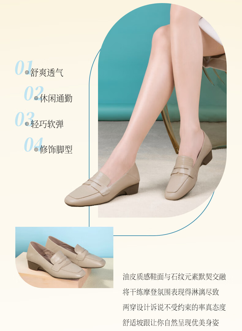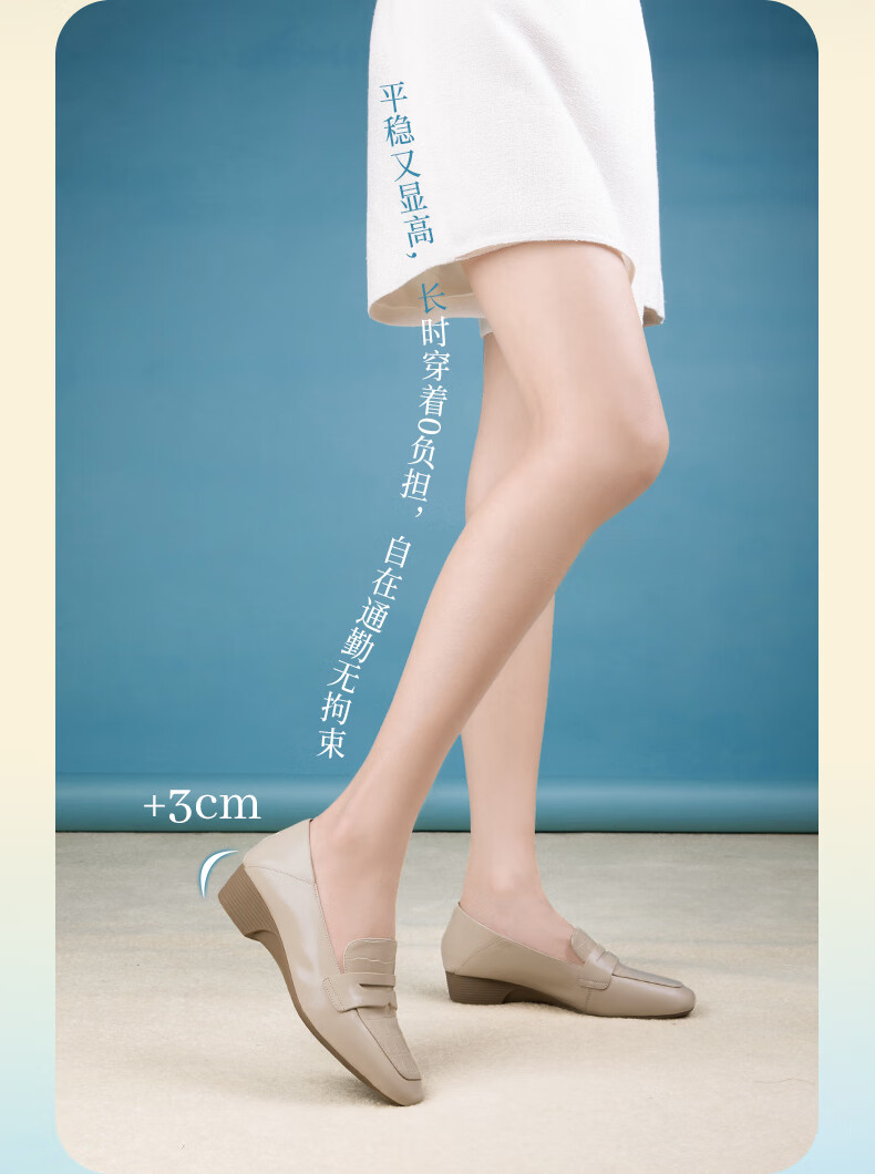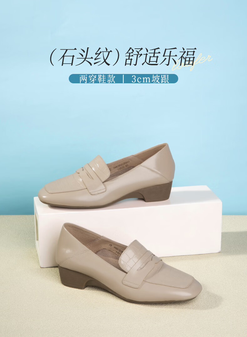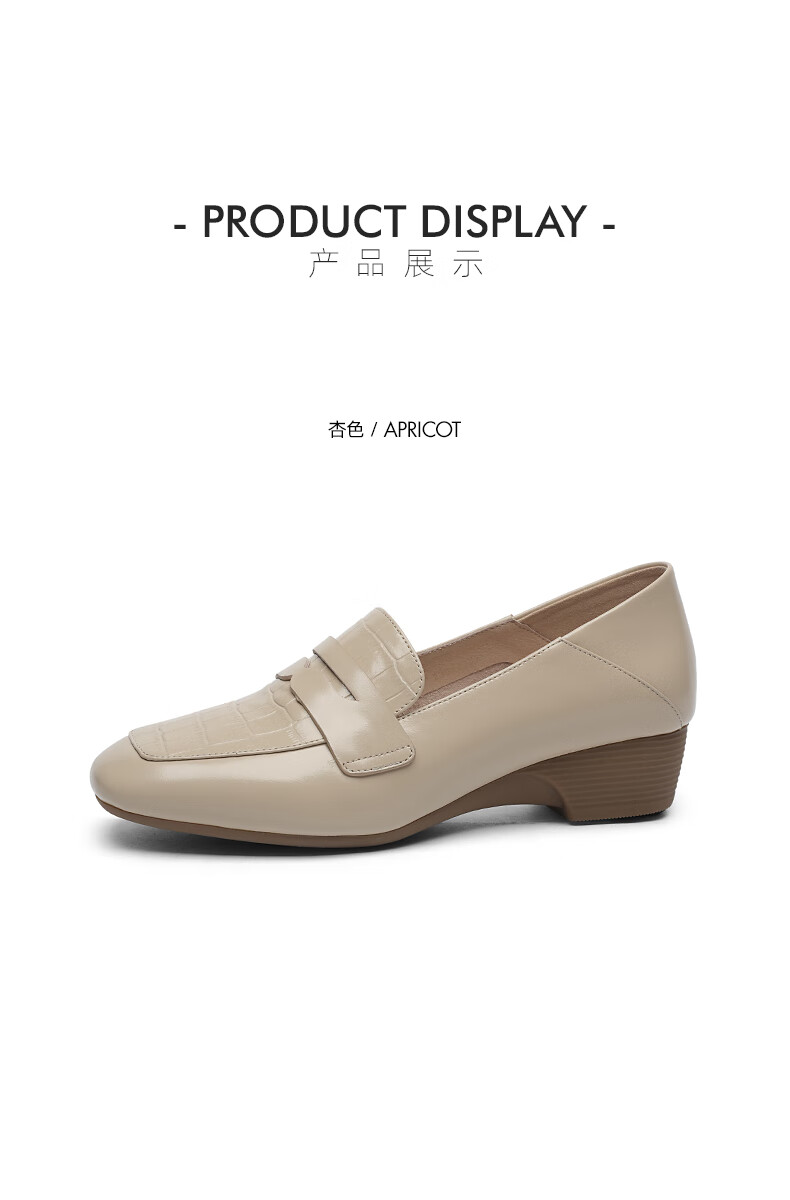Goldlion women's wedge loafers women's fashion small leather shoes deep square toe slip-on shoes G661310122 apricot 38