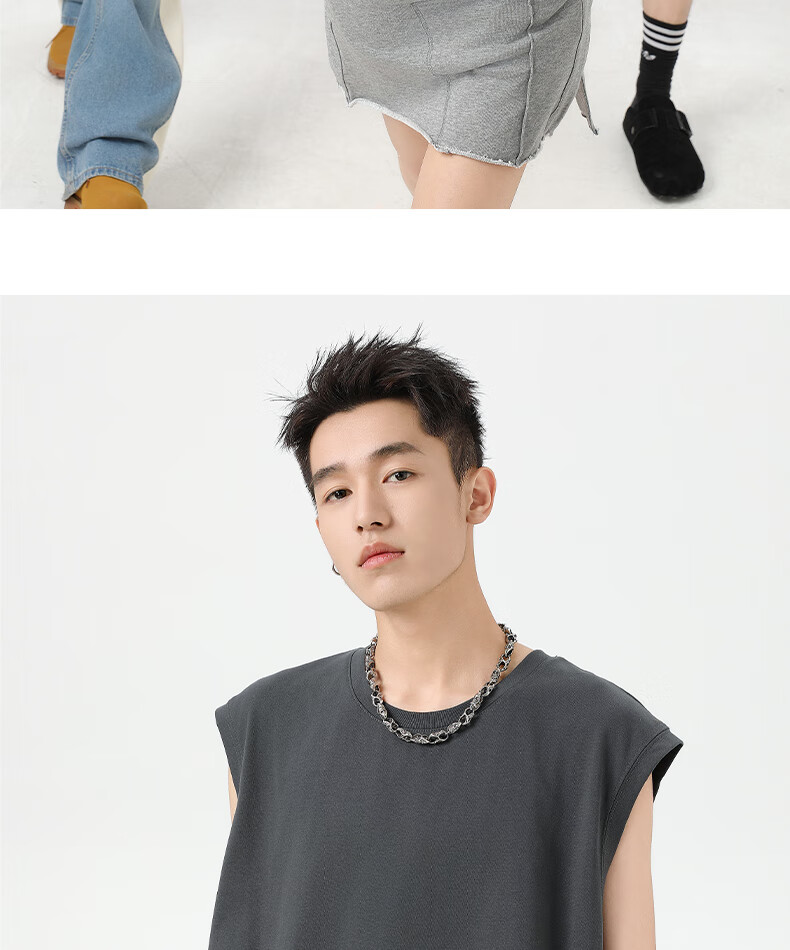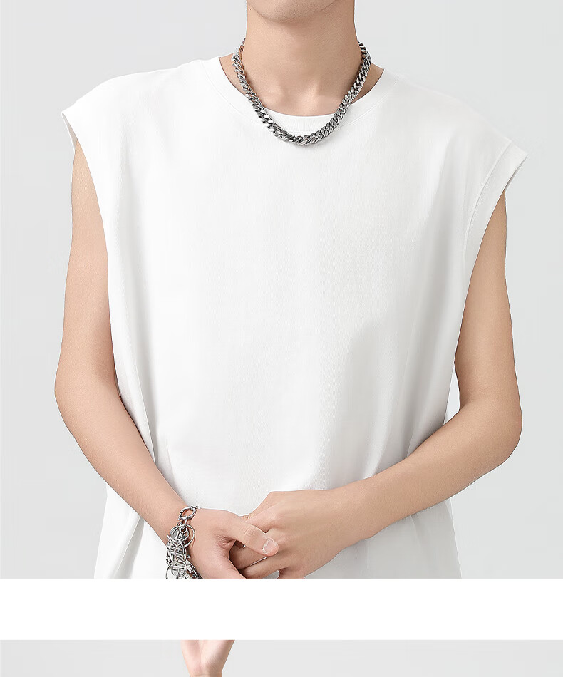 GENIOLAMODE Chaleco Hombre Verano Algodón Puro Transpirable Fondo Informal Versátil Camiseta Sin Mangas Estampada Ropa de Hombre Moda Blanco L