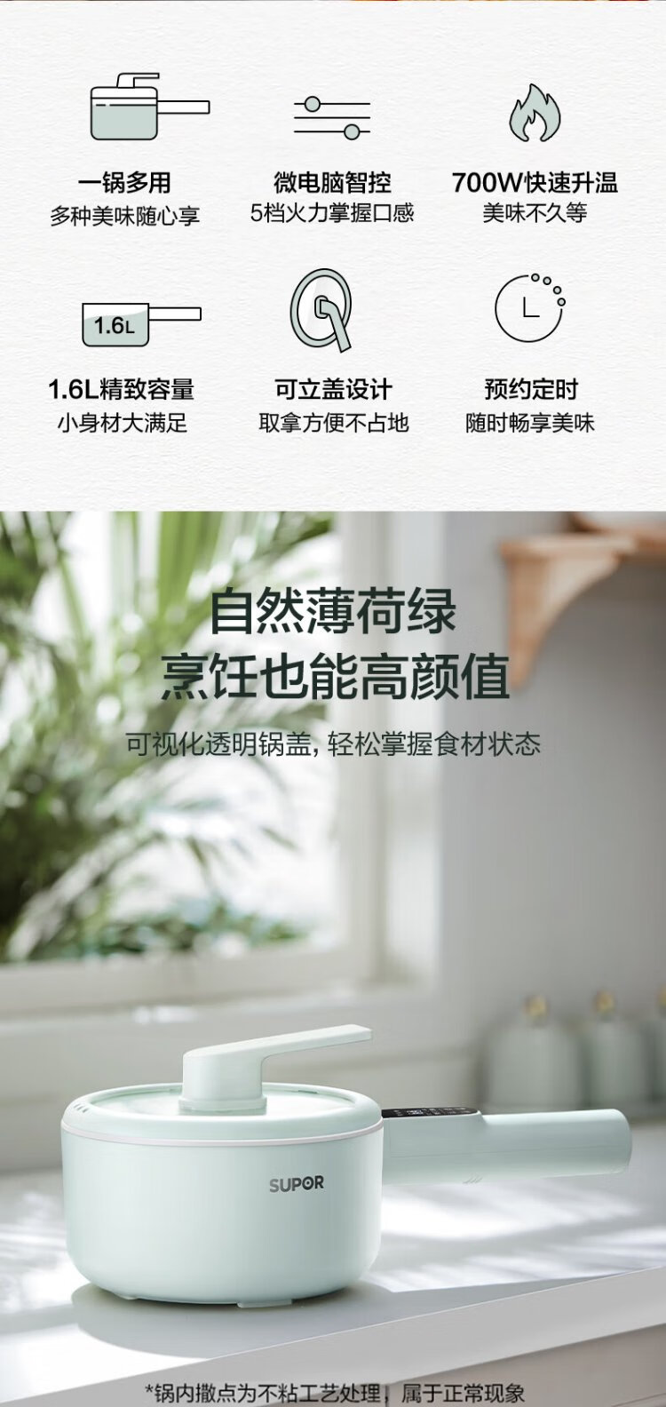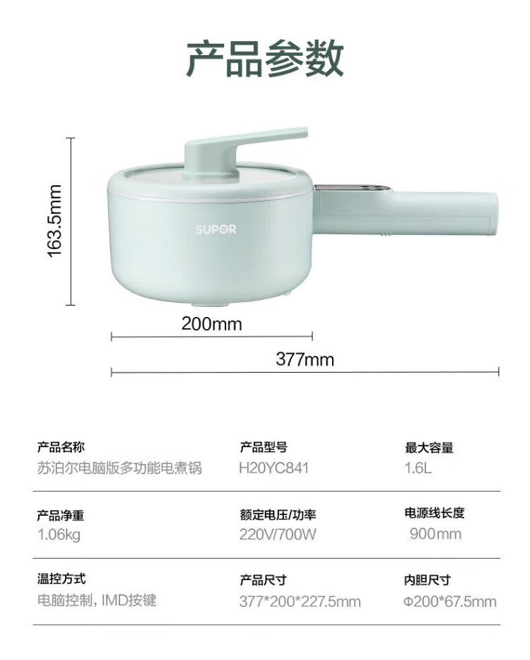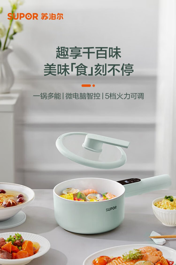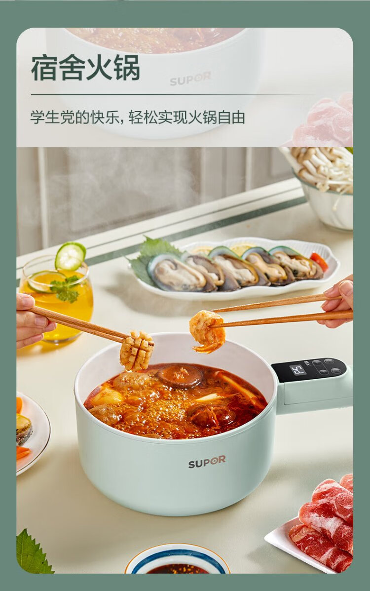 SUPOR electric cooking pot, electric hot pot, electric wok, small electric pot, dormitory pot, instant noodle pot, electric hot pot, multi-function electric pot 1.6L multi-purpose pot H20YC841