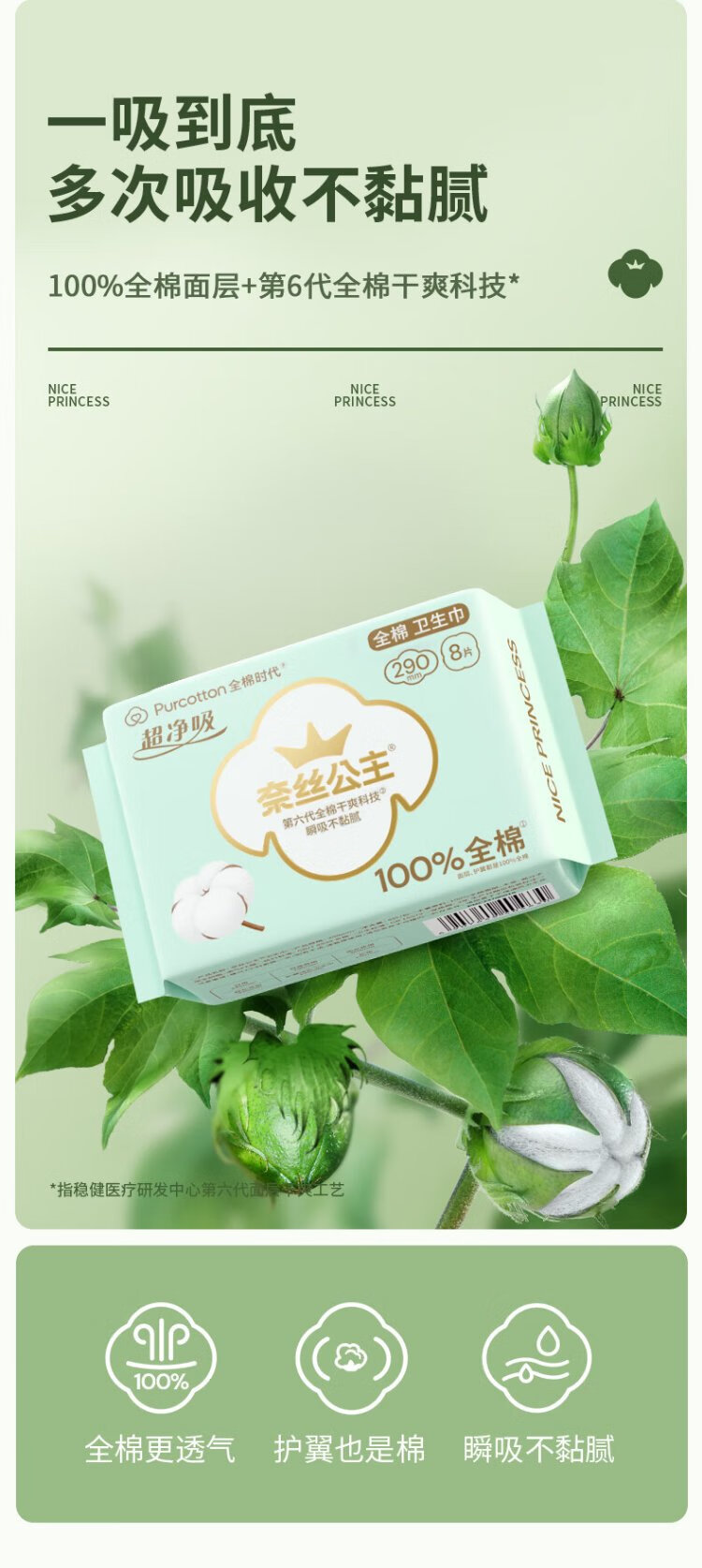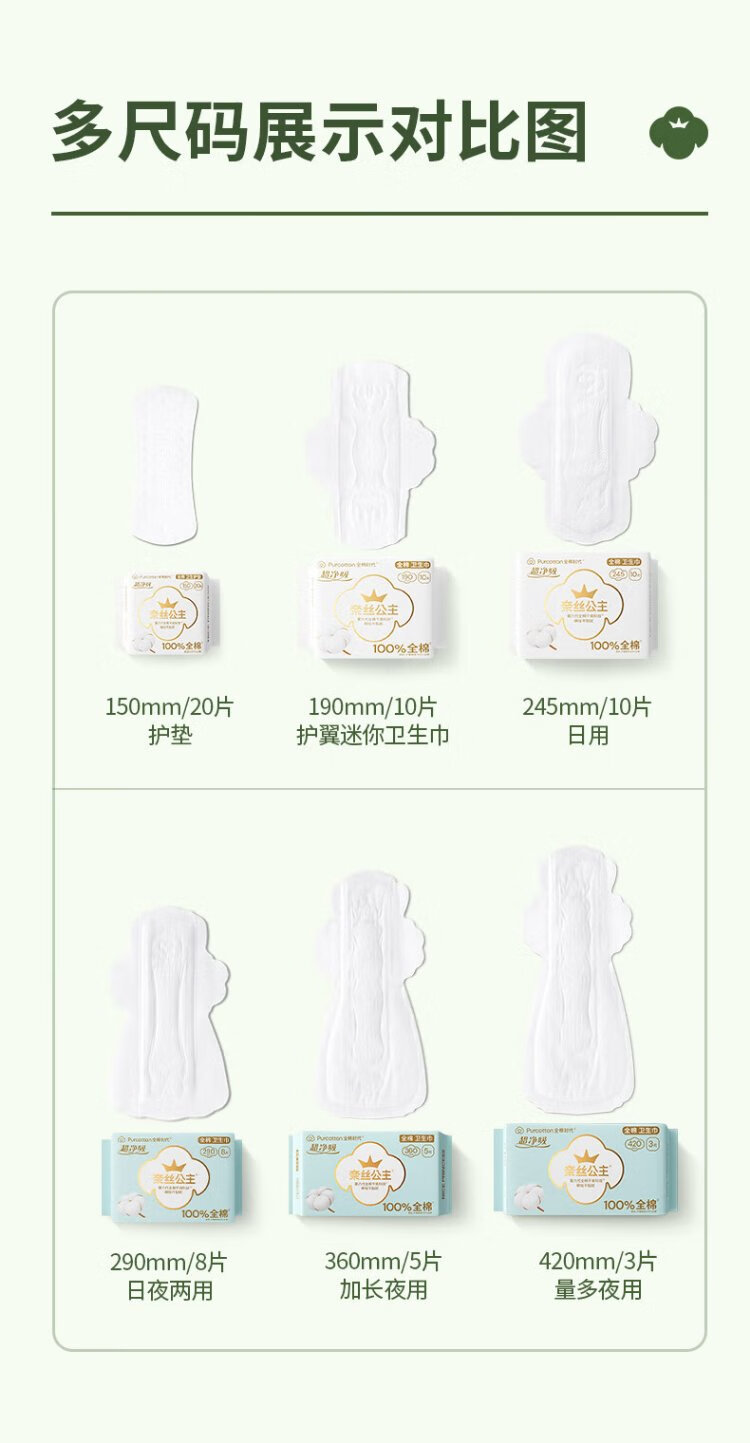 Pure Cotton Era Princess Ness Medical Grade Super Clean Suction Large Nighttime Sanitary Napkins 49 Pieces (290*40p+420*9p) Self-operated