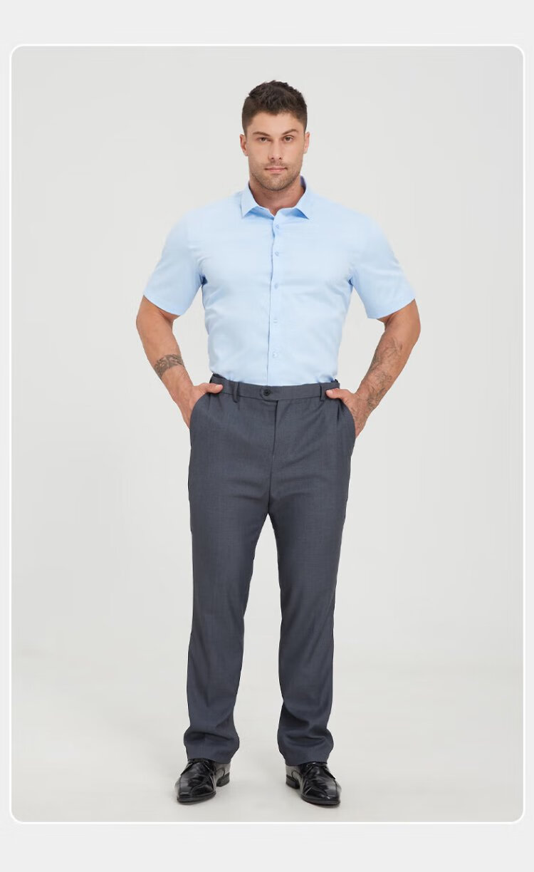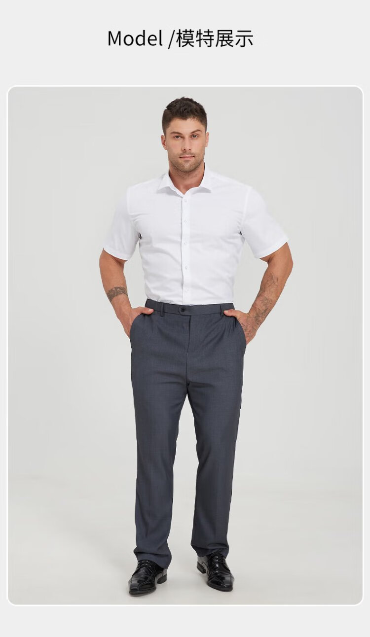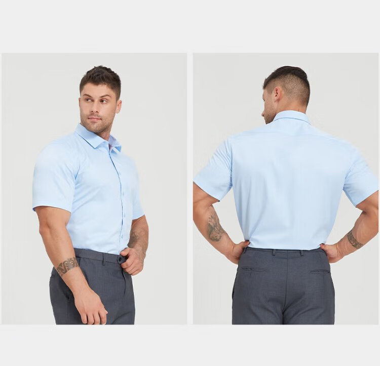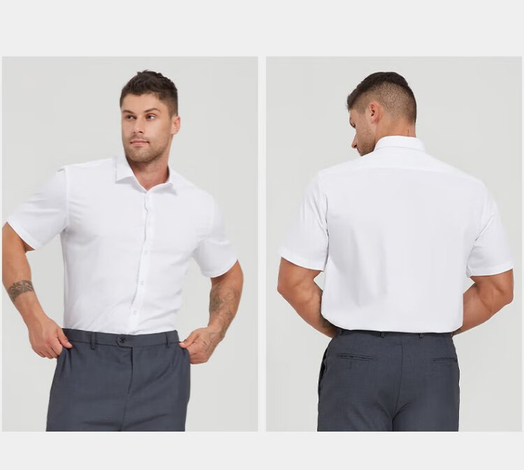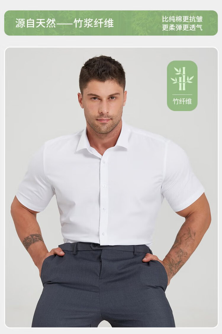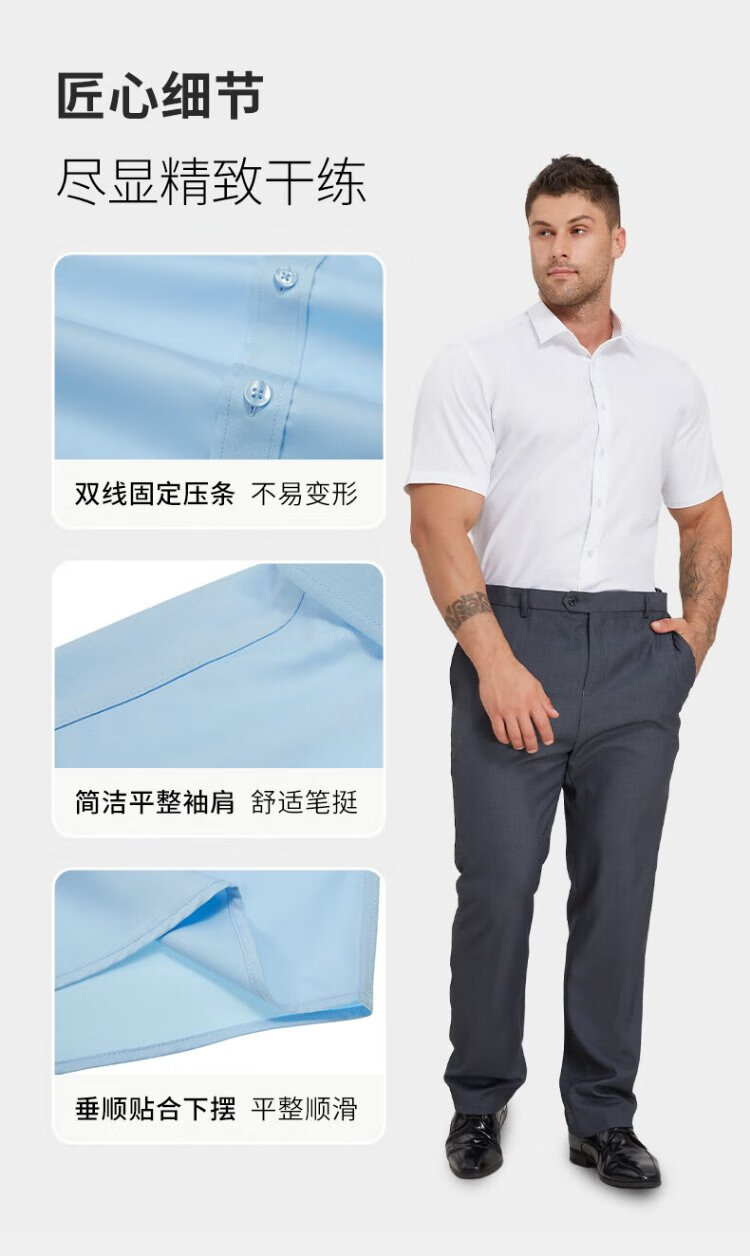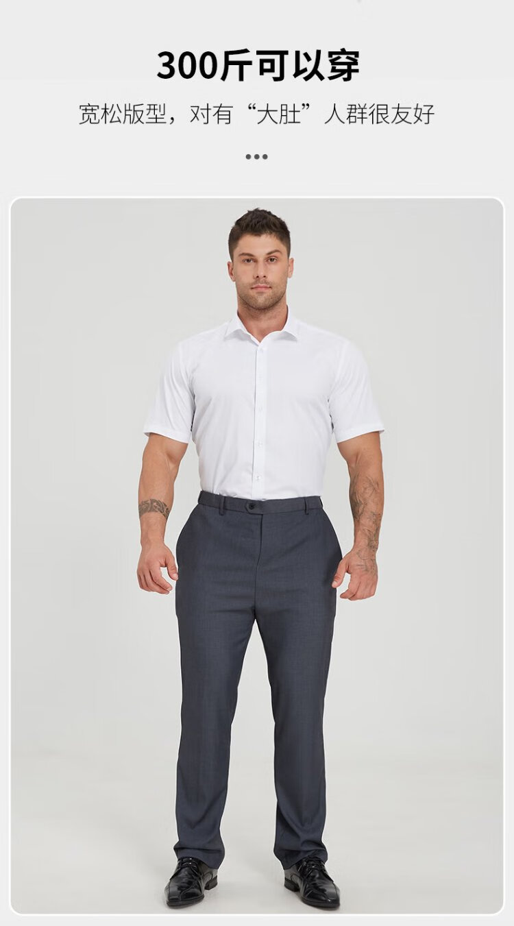 帝宾泽大码短袖衬衫男胖子加肥宽松商务休闲免烫抗皱竹纤维弹力白衬衣