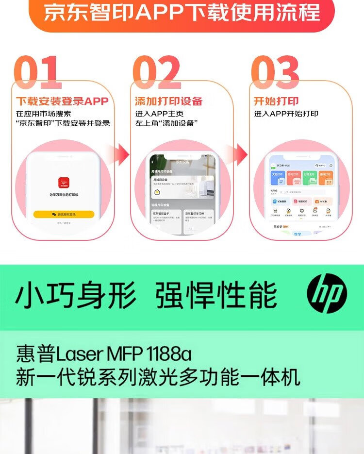 HP (HP) 1188a laser multi-function small home all-in-one machine three-in-one printing, copying and scanning commercial office printer Jingdong Zhiyin learning resources