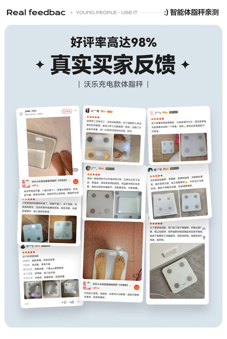 沃乐智能体重秤【APP充电款】电子秤体脂称家用减肥专用高精准测脂人体健康体重管理送女友生日礼物