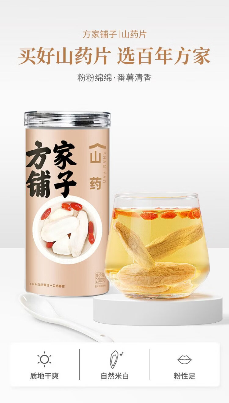 Fangjiapuzi Iron Bar Yam 200g/bottle Sulfur-free Raw Sun-dried Iron Bar Yam Dried Slices Red Dates, Wolfberry, Codonopsis and Yuzhu Soup