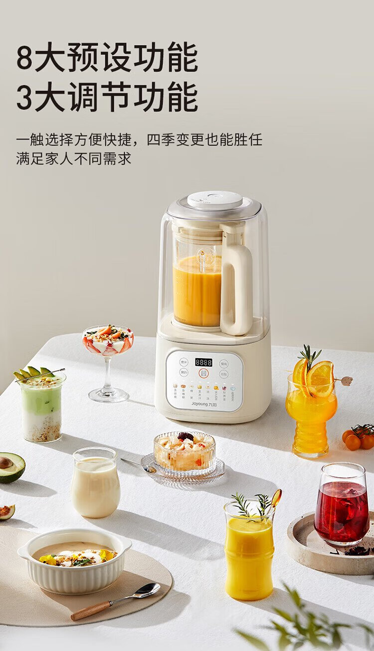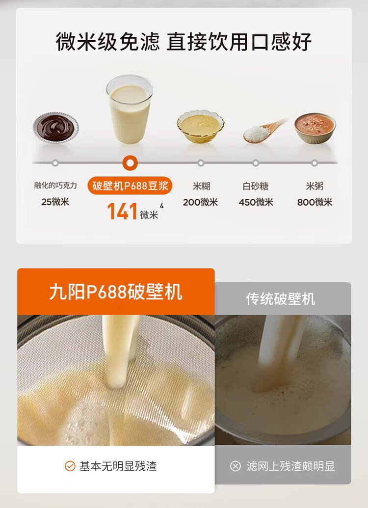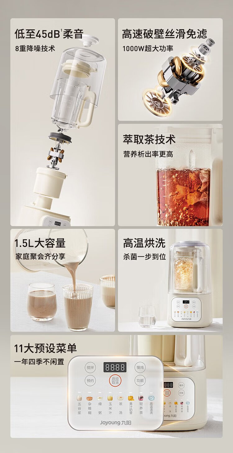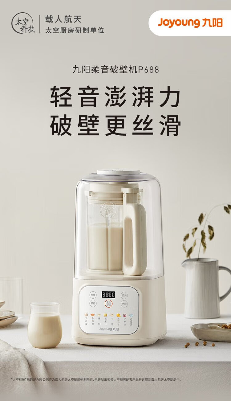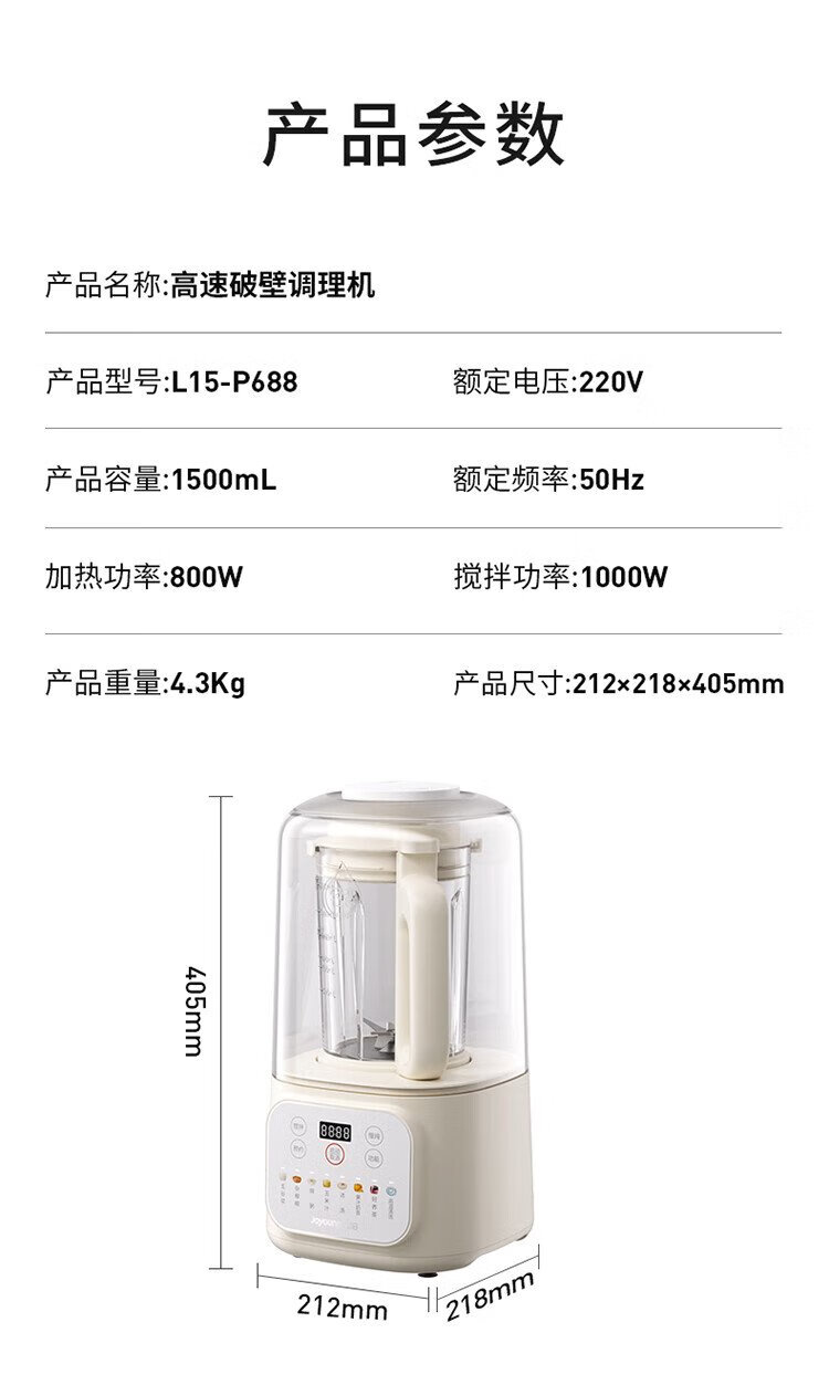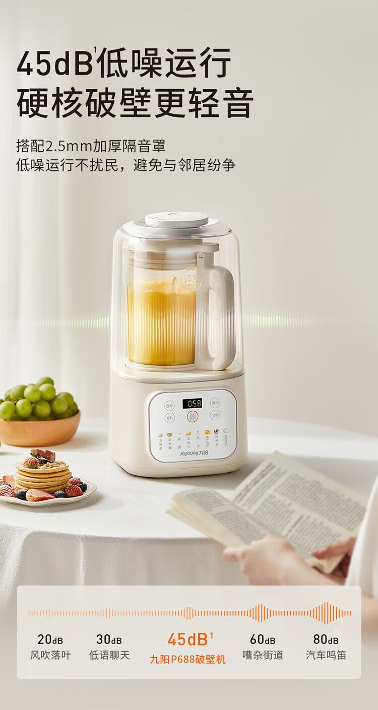 九阳1.5L低音破壁机家用全自动豆浆机轻音45分贝2-4人降噪榨汁料理机五谷杂粮破壁机P688 政府补贴