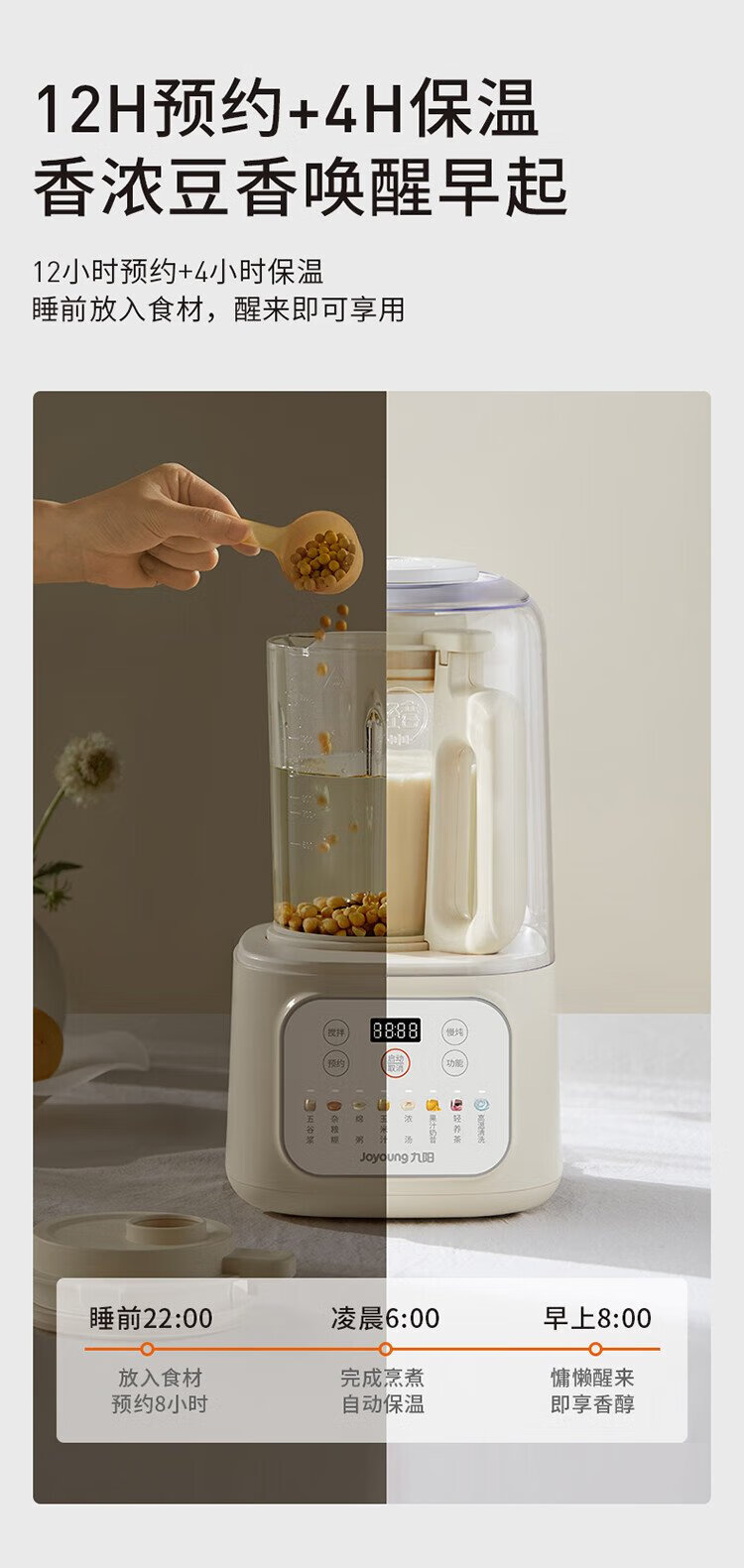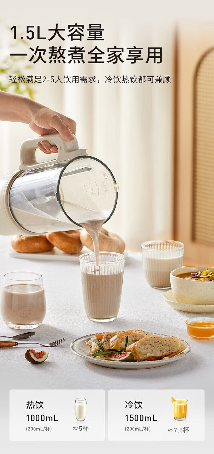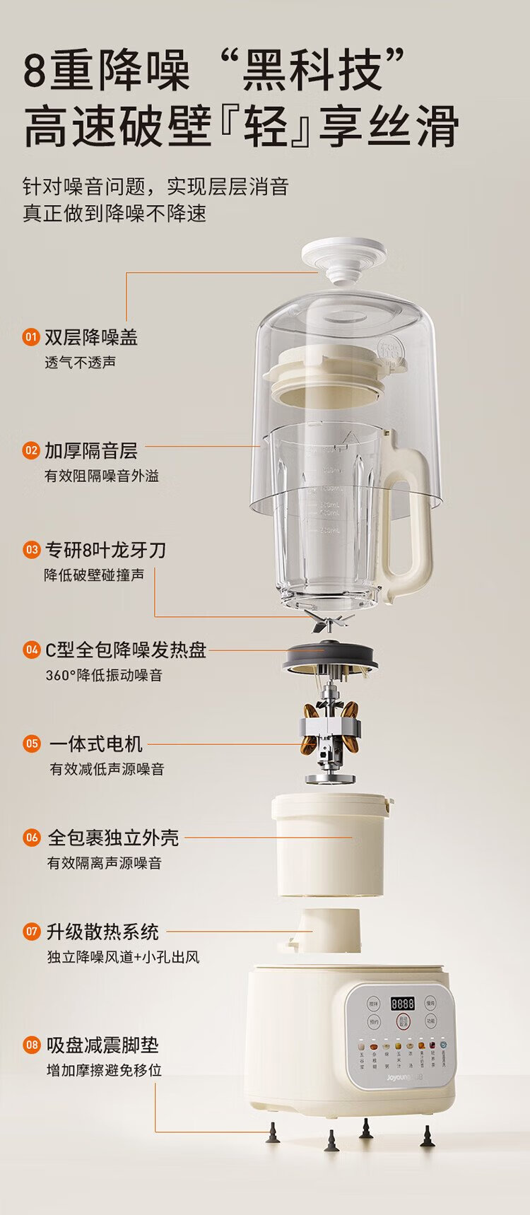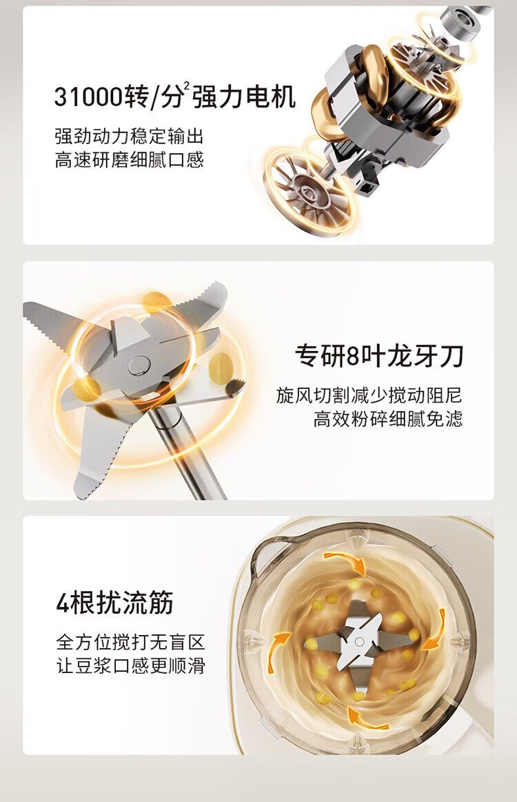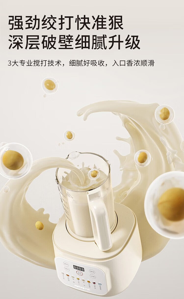 九阳1.5L低音破壁机家用全自动豆浆机轻音45分贝2-4人降噪榨汁料理机五谷杂粮破壁机P688 政府补贴