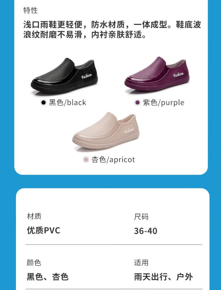 FOOTOPPO Botas de Lluvia Botas de Lluvia para Mujer Zapatos de Agua Antideslizantes de Tubo Corto para Mujer Zapatos de Goma Botas Impermeables de Verano de Corte Bajo para Adultos Cubrezapatos de Moda para Mujer