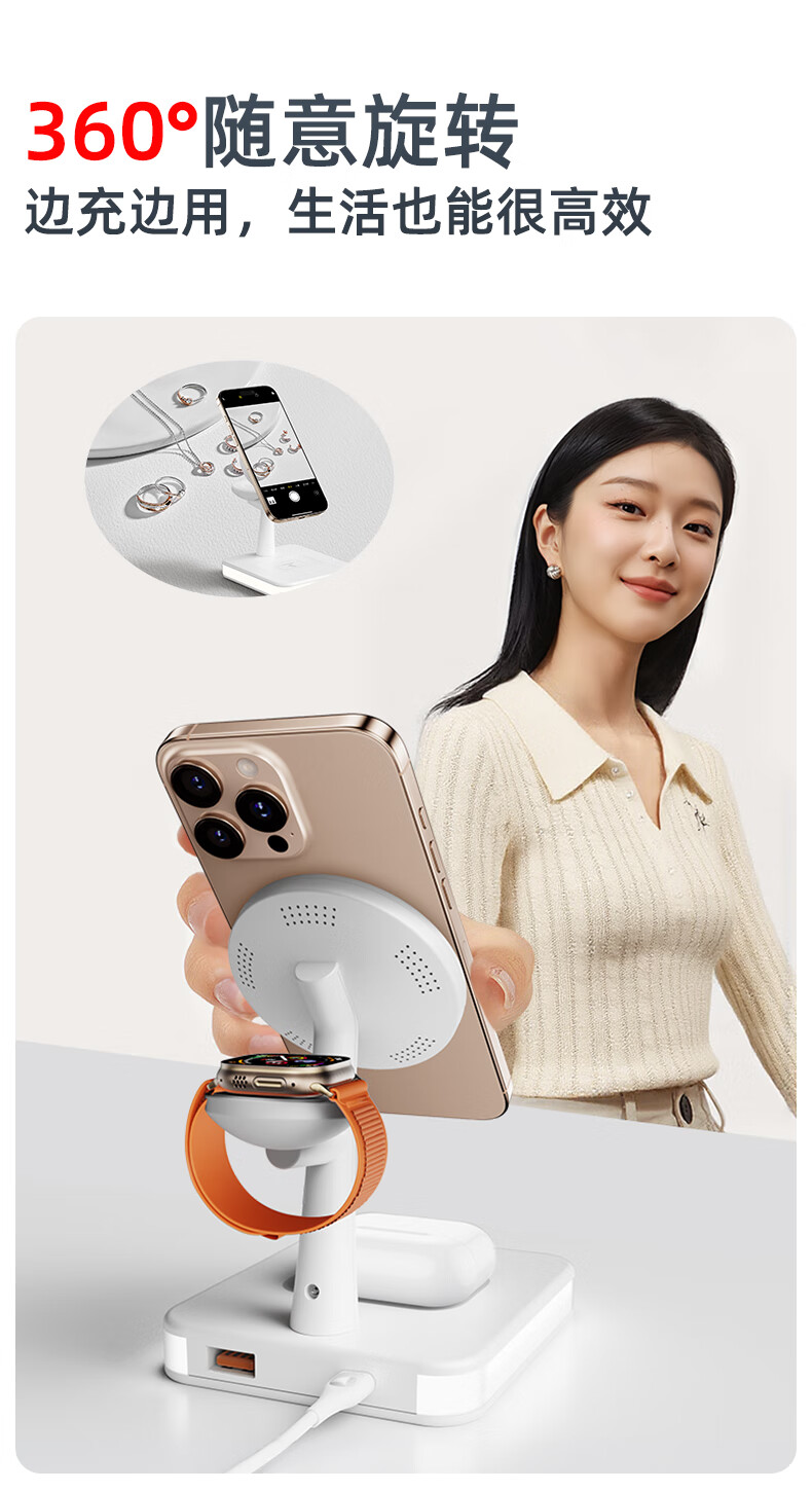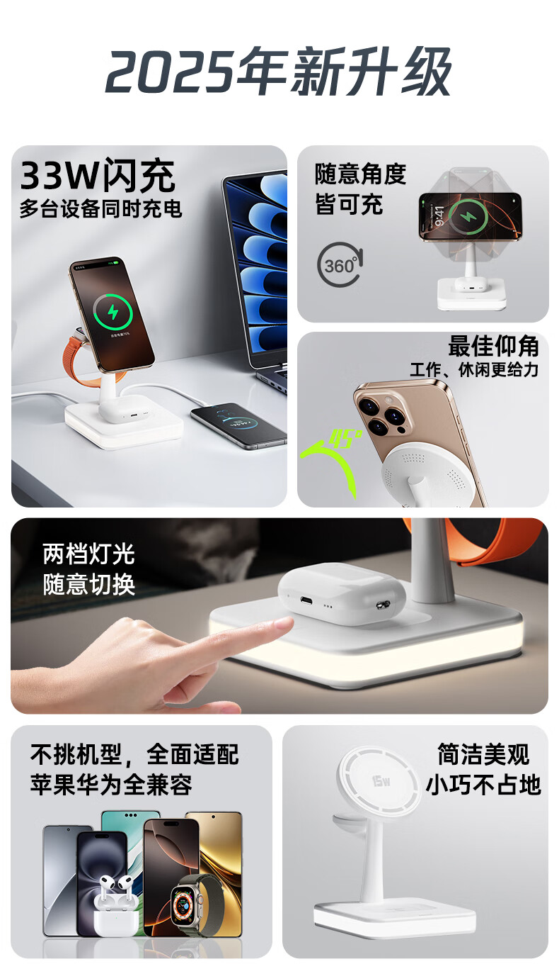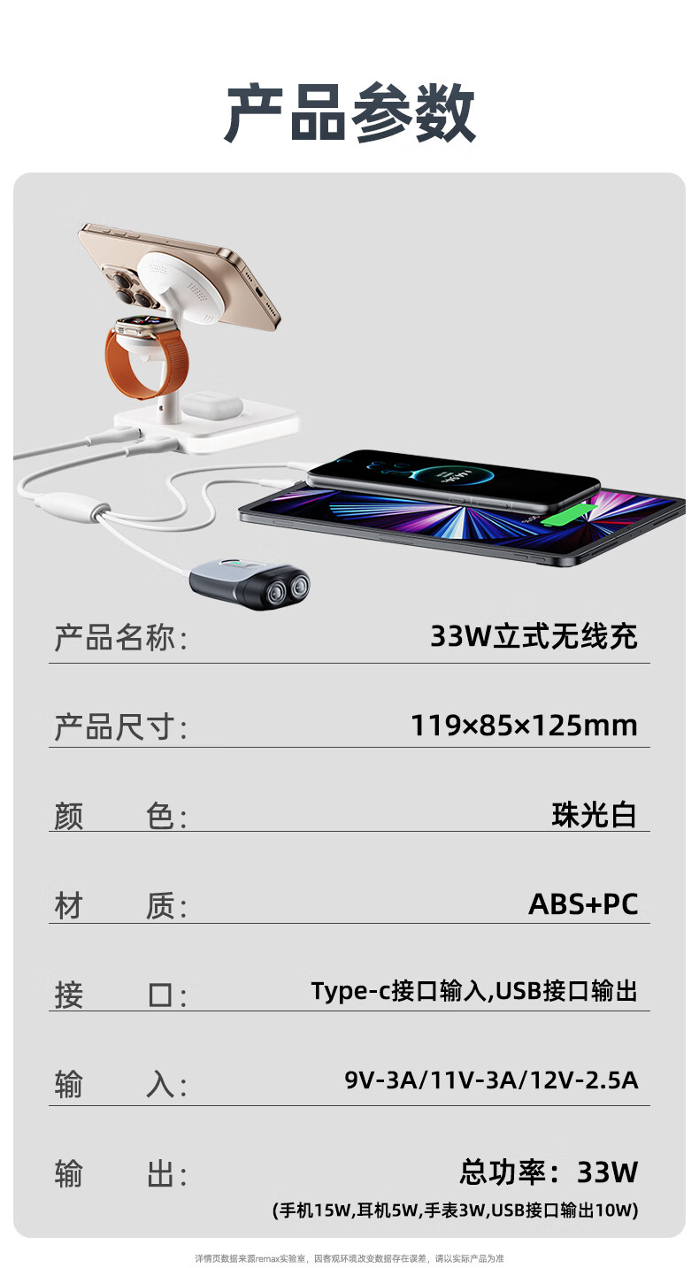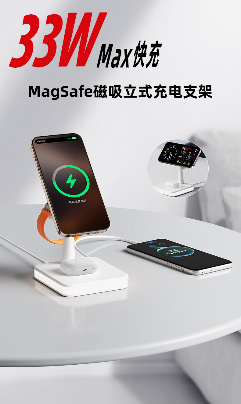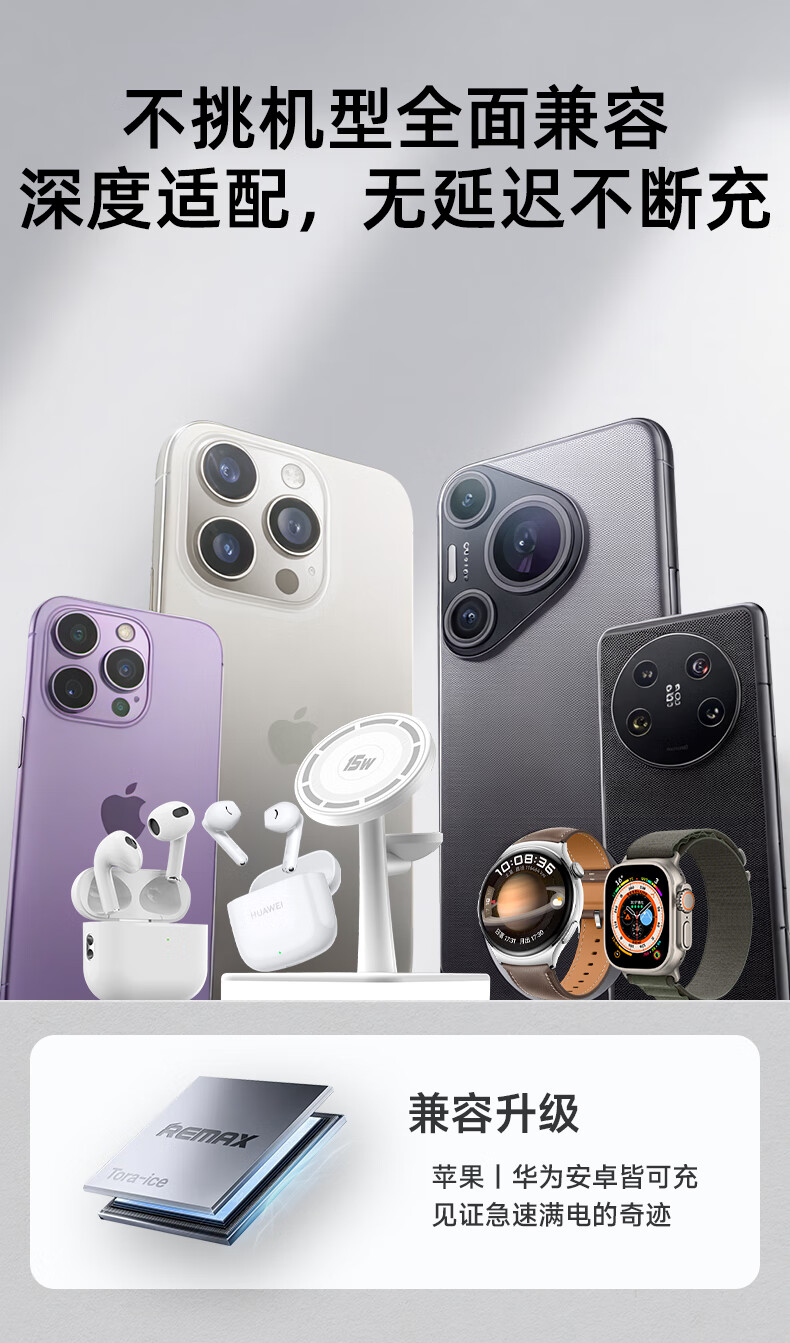 remax【三合一快充】33W苹果无线充电器MagSafe磁吸适配iPhone17/16/15/14/华为手机iWatch手表耳机底座