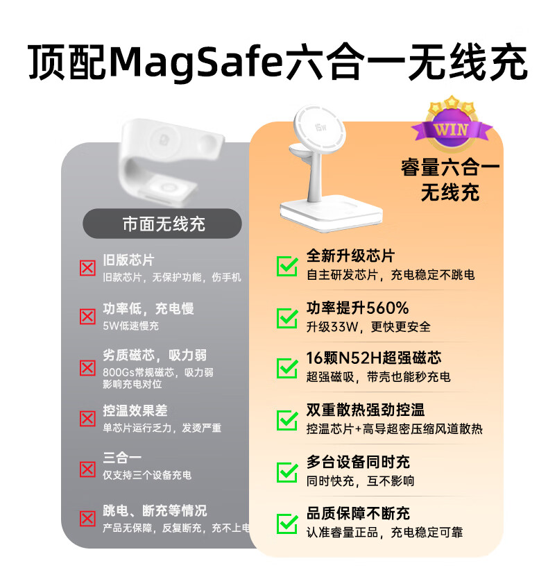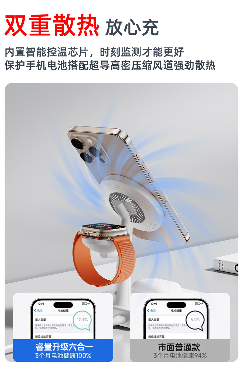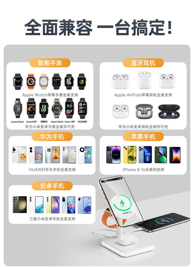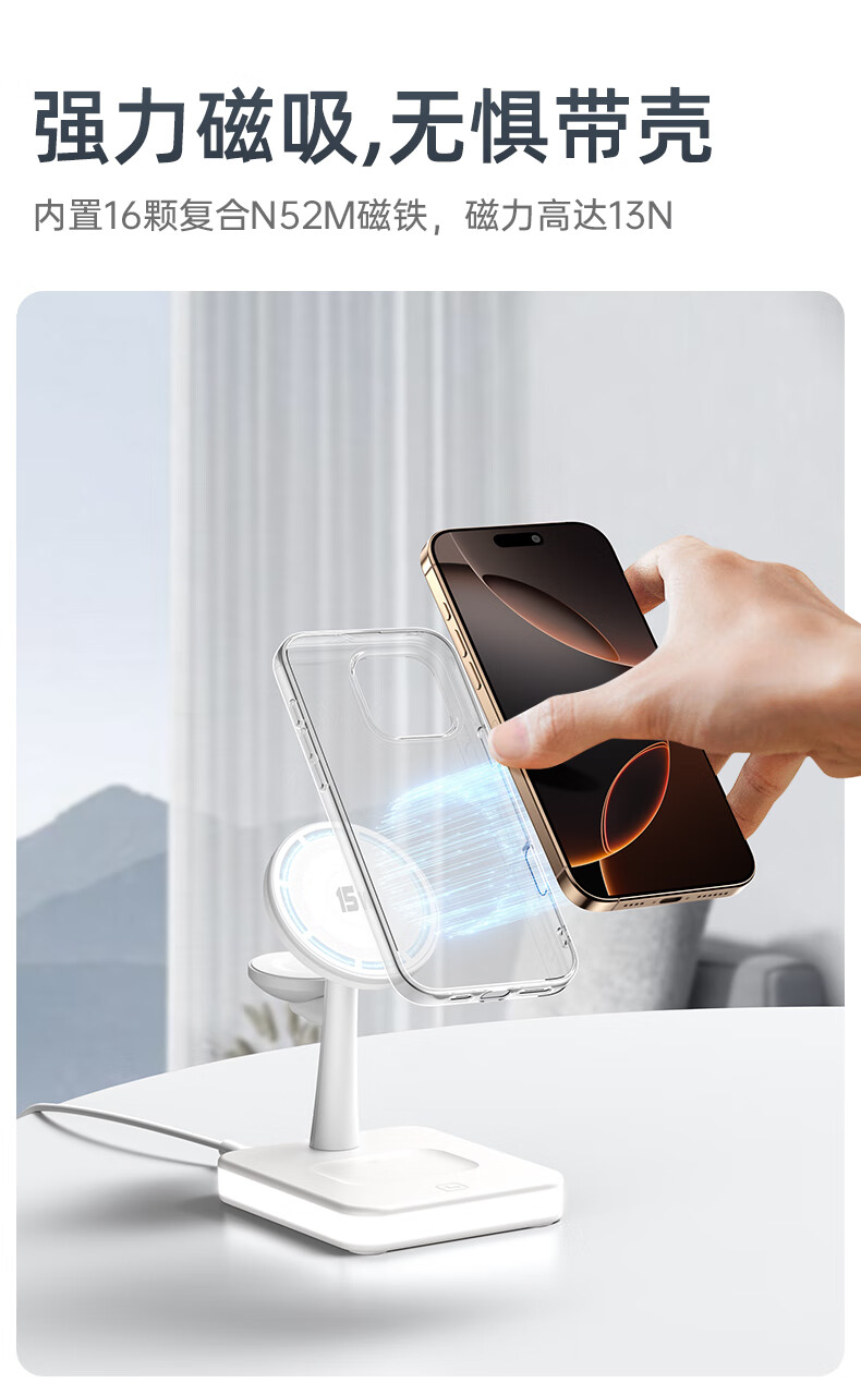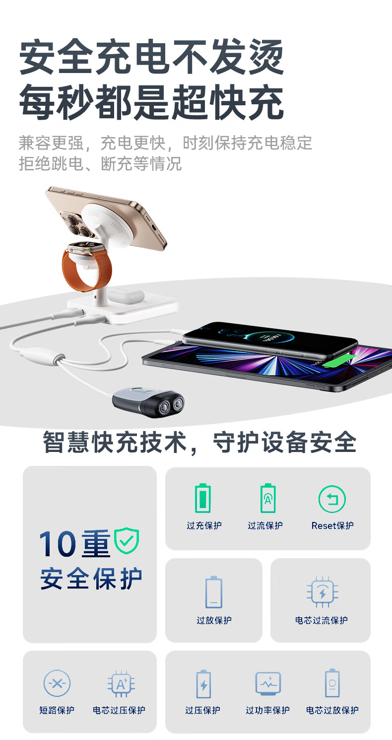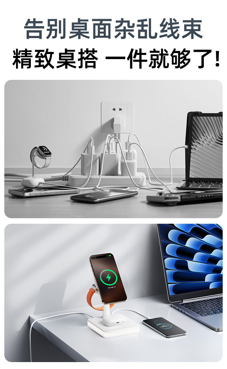 remax【三合一快充】33W苹果无线充电器MagSafe磁吸适配iPhone17/16/15/14/华为手机iWatch手表耳机底座