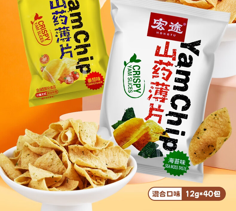 宏途山药薄片12g*40包脆片混合口味薯片年货节膨化休闲零食独立小包装