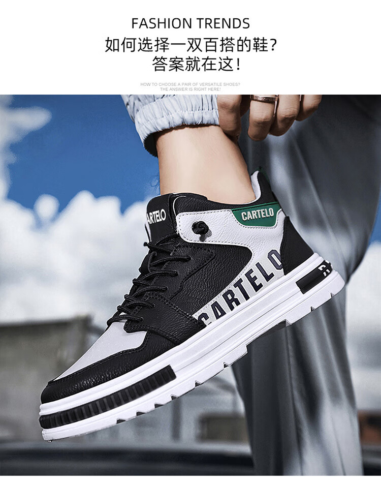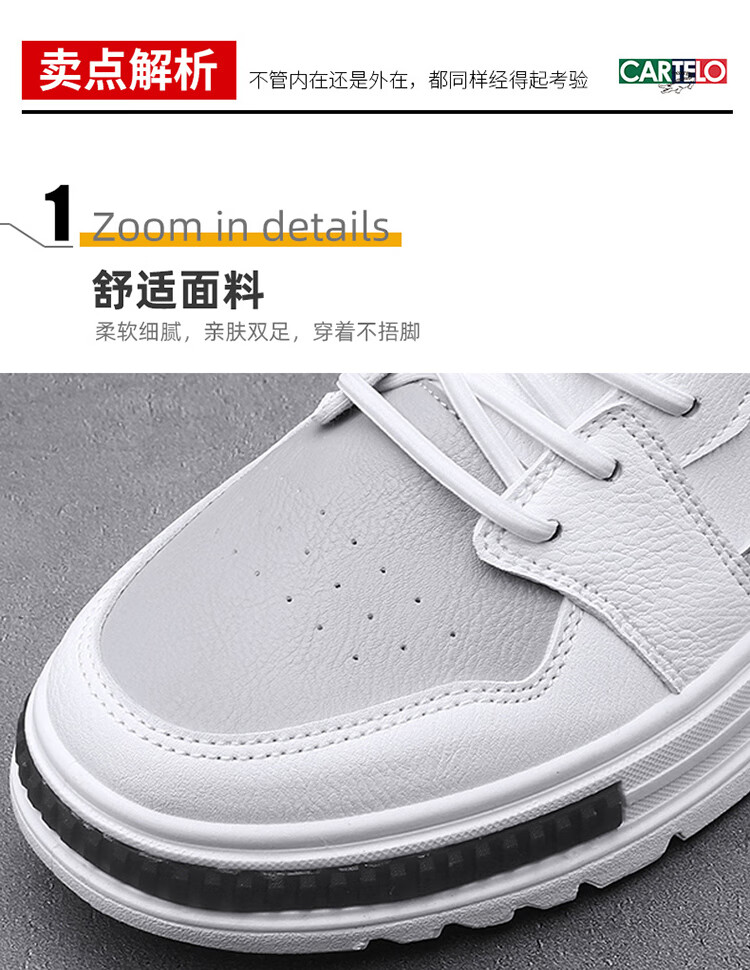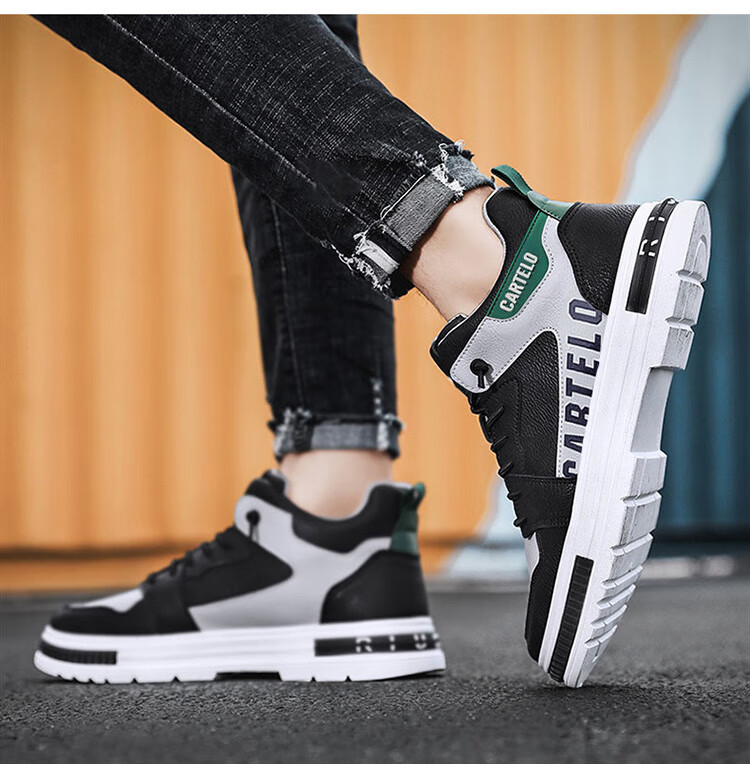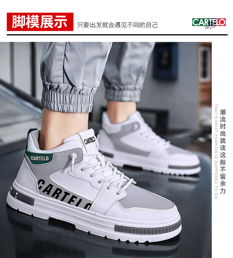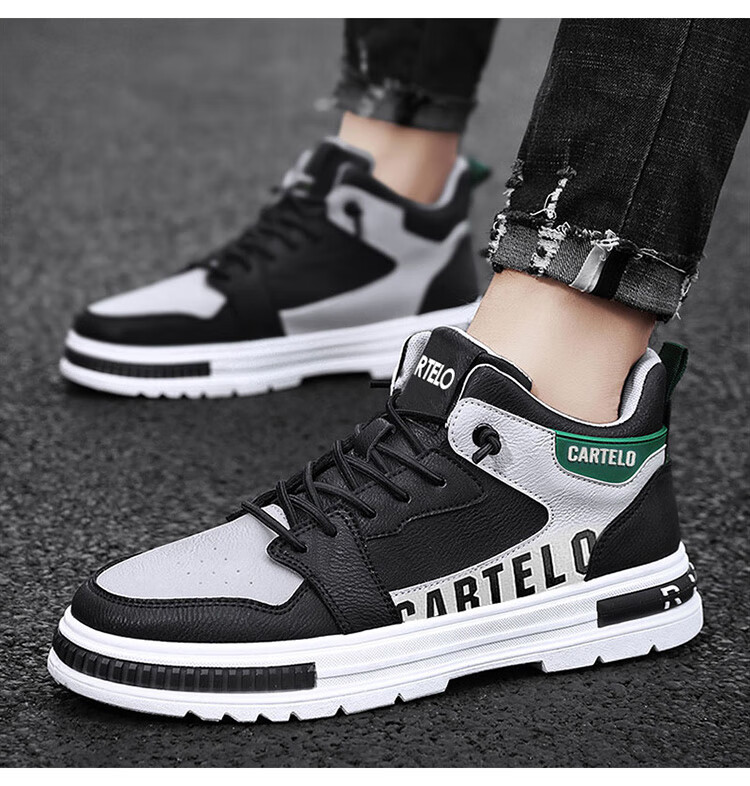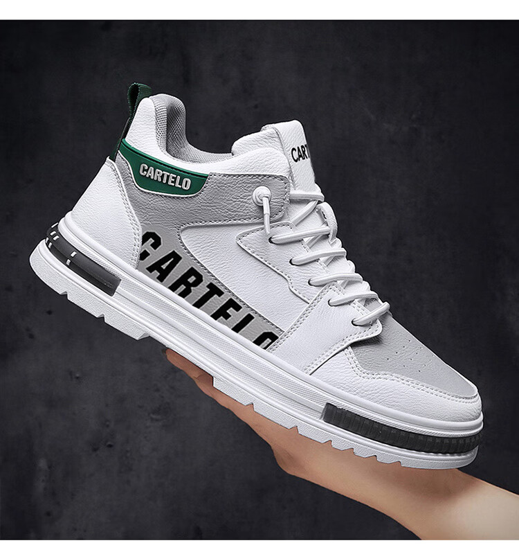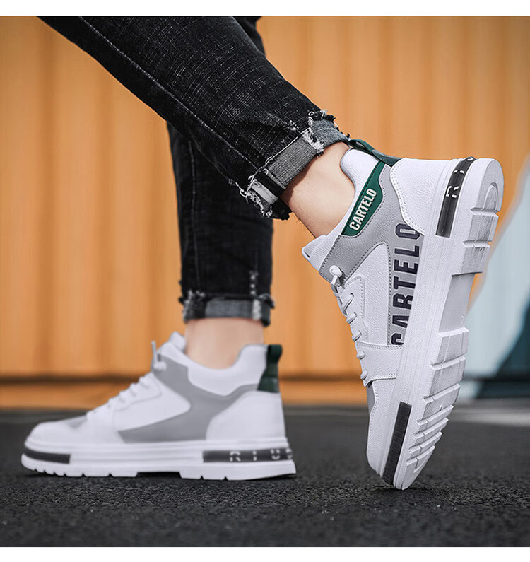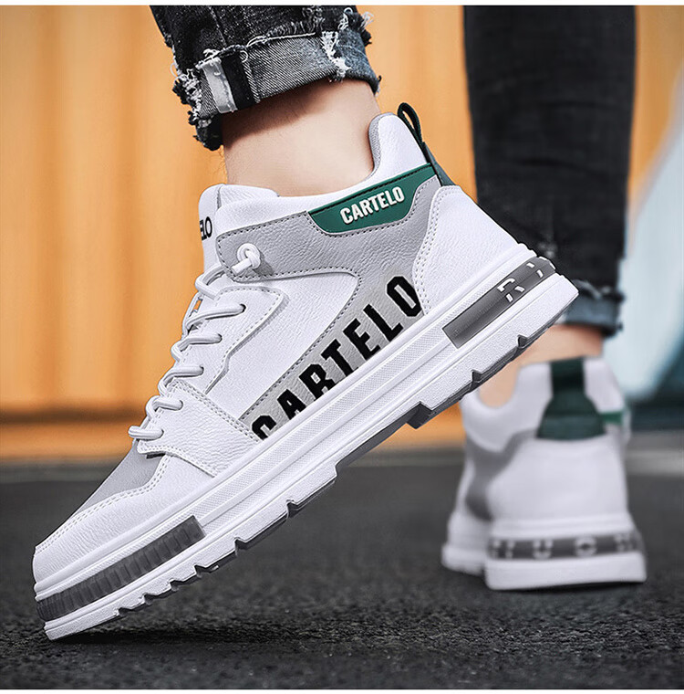 卡帝乐鳄鱼(CARTELO)鞋子男鞋2025秋冬季时尚增高休闲鞋男士运动鞋厚底板鞋 白灰 42码